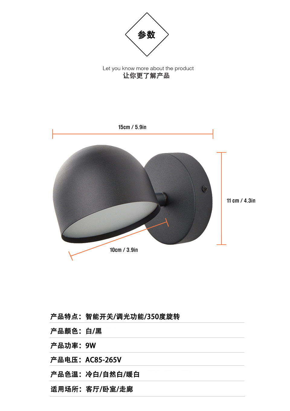 국경 전용 led 벽 램프 현대 미니멀 한 침실 침대 옆 램프 터치 스타일 회전 거실 복도 벽 램프