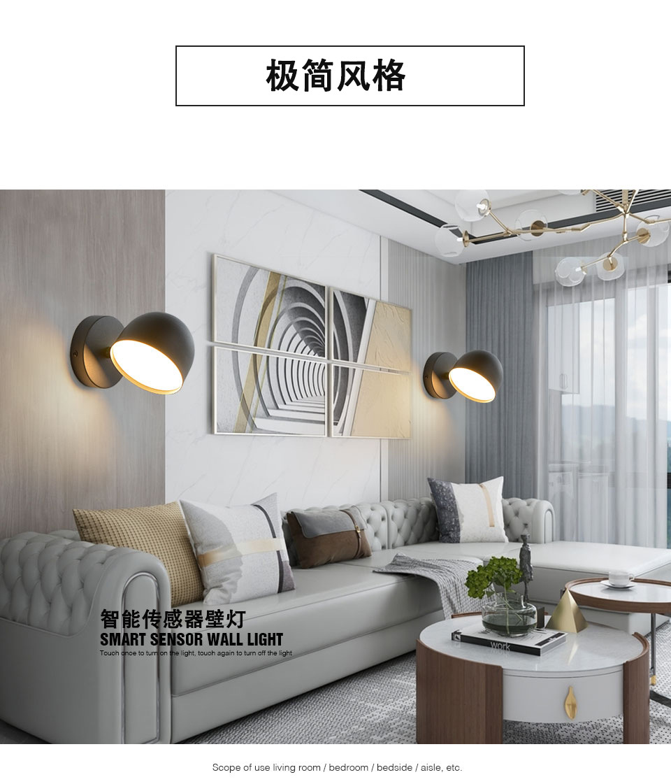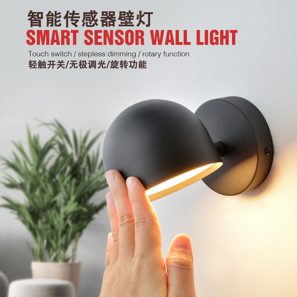국경 전용 led 벽 램프 현대 미니멀 한 침실 침대 옆 램프 터치 스타일 회전 거실 복도 벽 램프스토어 가기