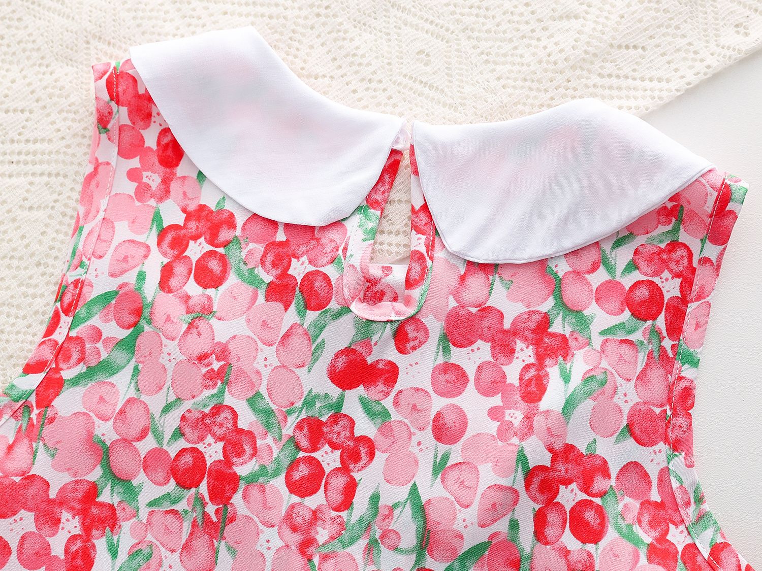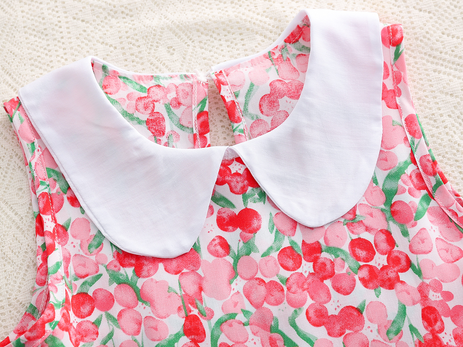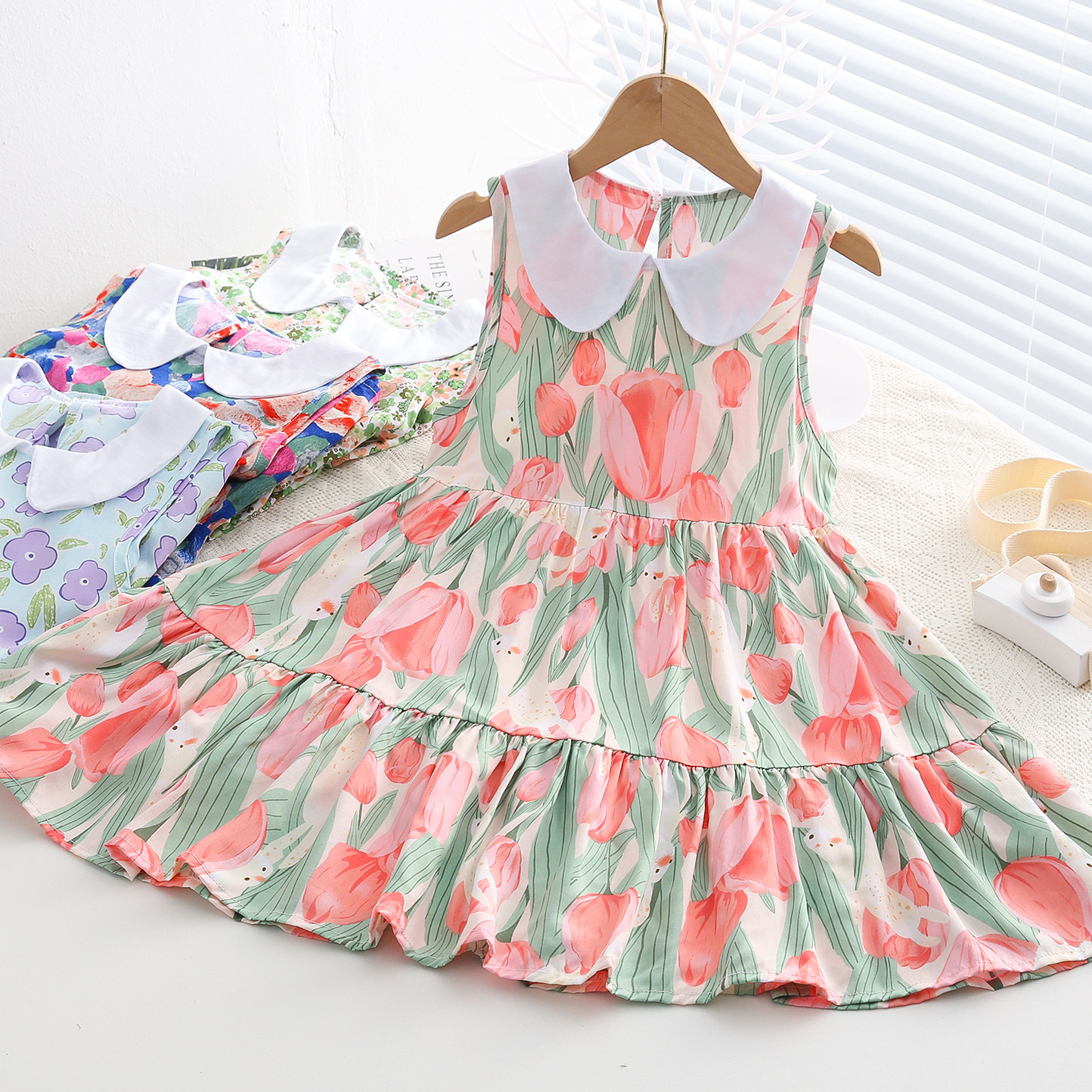 상쾌한 부드러운 찹스러운 소녀 옷깃면 실크 원피스 여름 얇은 미디어와 큰 어린이 꽃 무늬 큰 치마 인공 면화 비치 스커트스토어 가기