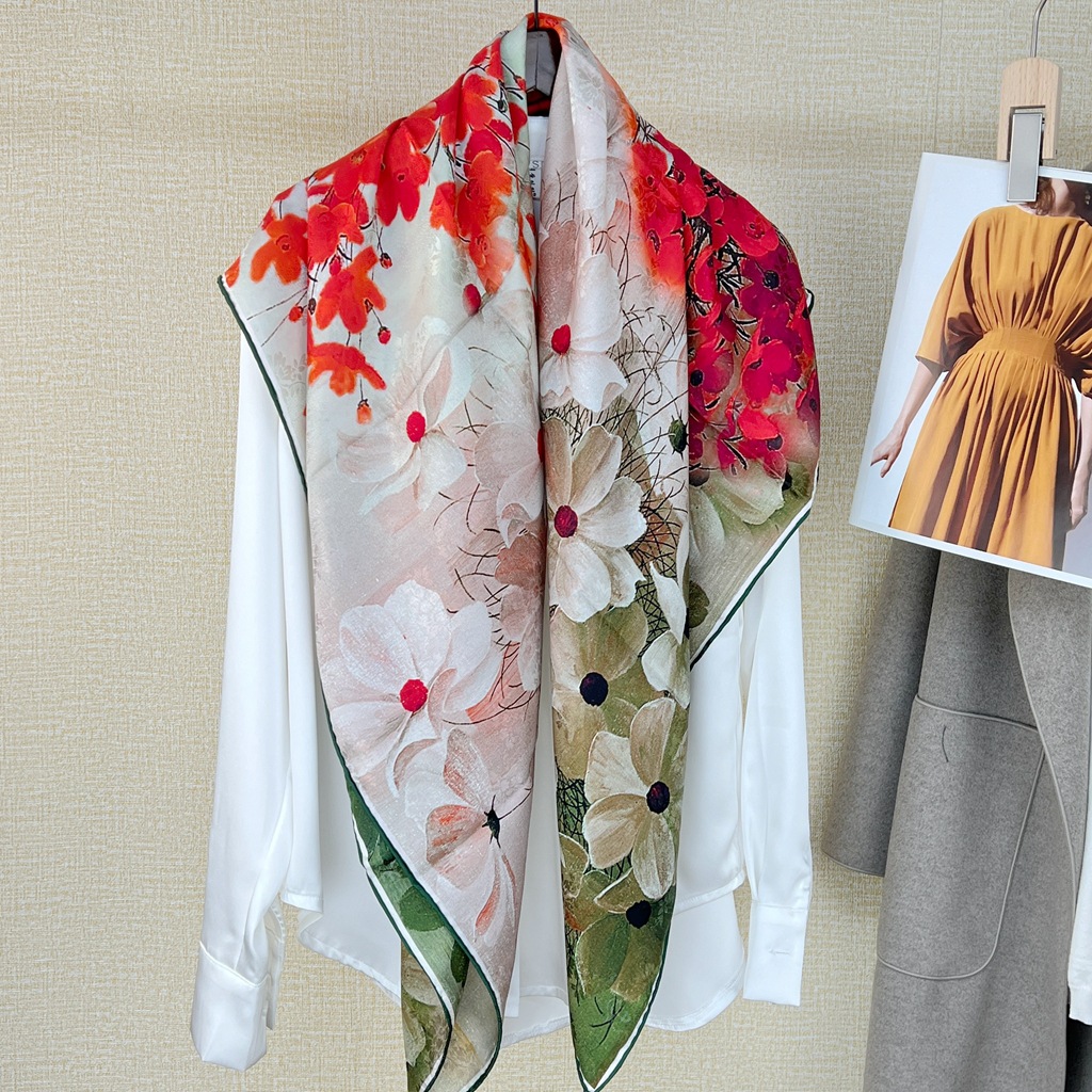 고품질 실크 스카프 여성용 실크 대형 스퀘어 스카프 hualuo 양면 숄 겉옷 하이 엔드 선물 2023 새로운 실크 스카프