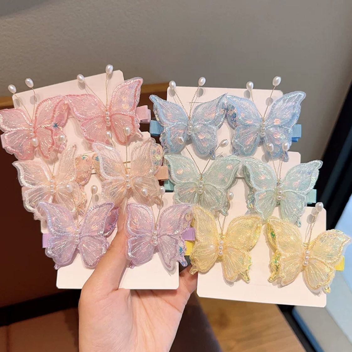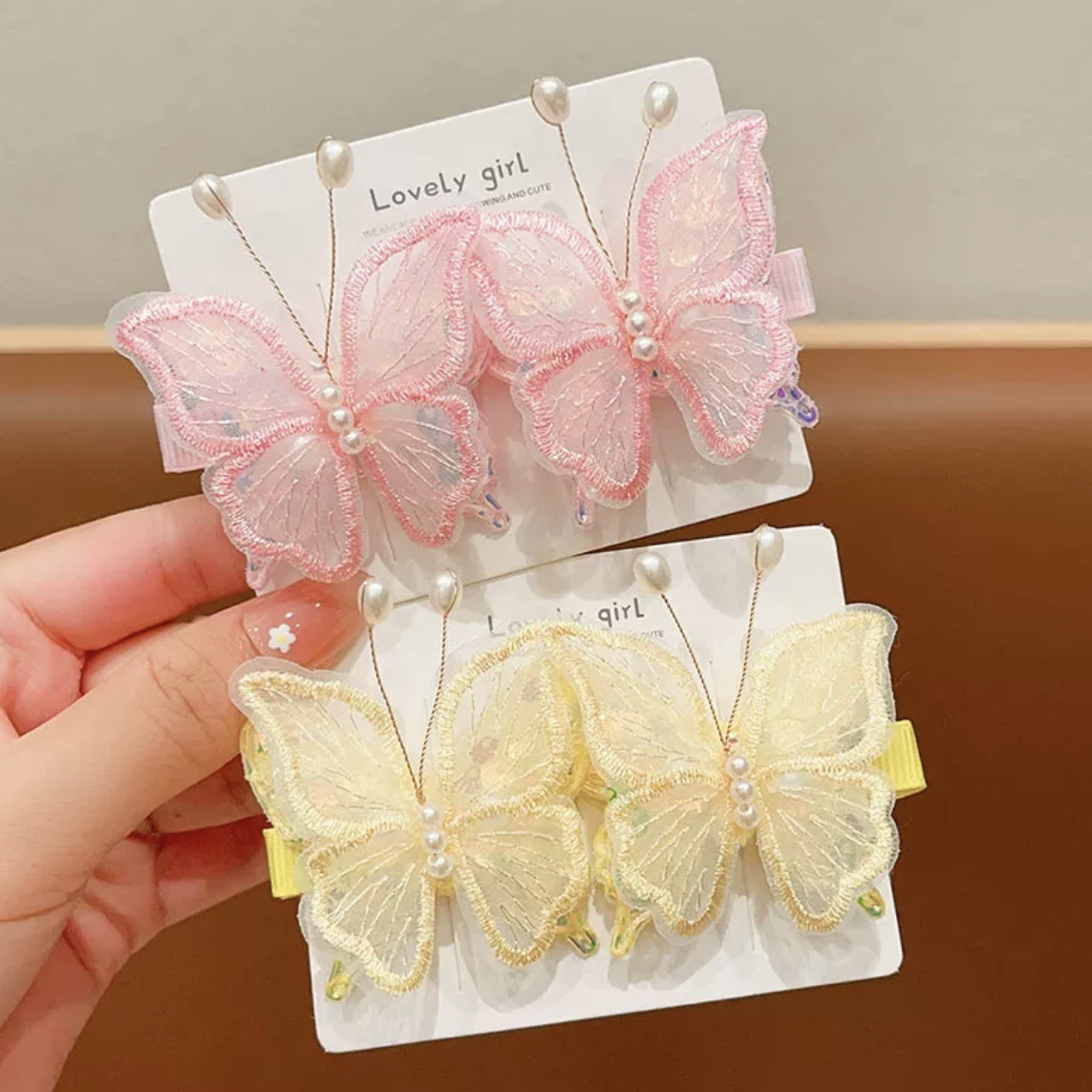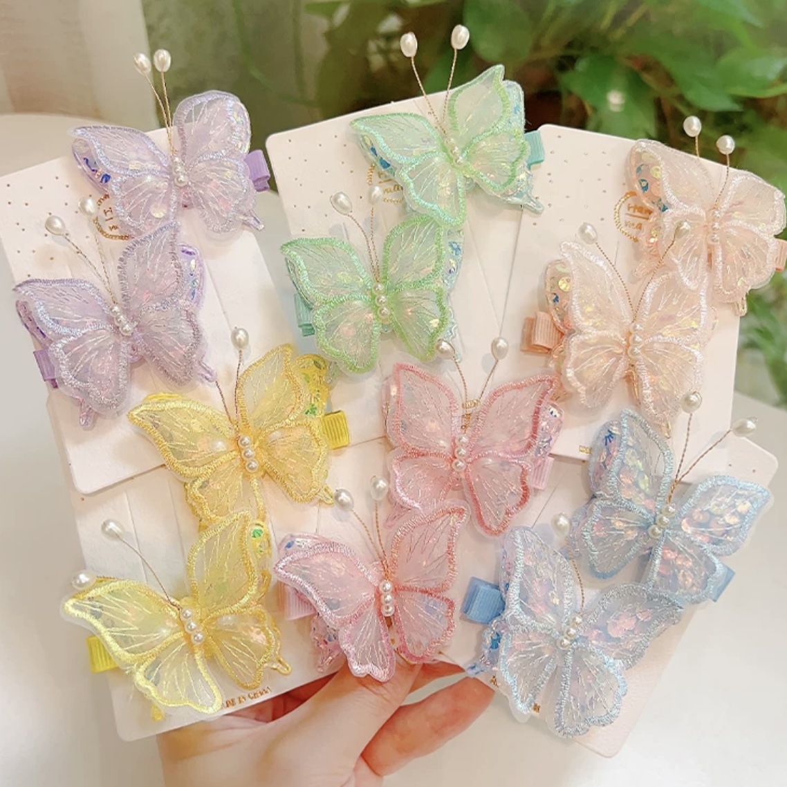 자수 나비 머리핀 어린이 슈퍼 요정 헤어 액세서리 고대 스타일 메쉬 머리 장식 달콤한 귀여운 공주 앞머리 클립 헤어 액세서리