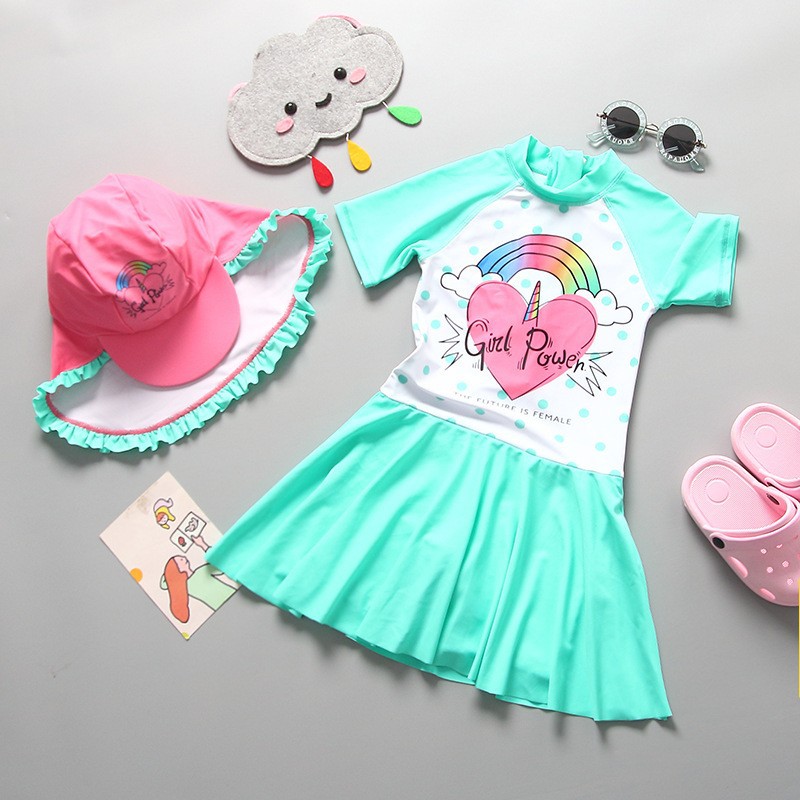 통관 인기있는 태양 보호 어린이 수영복 소녀 중간 및 작은 어린이 아기 아기 따뜻한 해변 서핑 세트 공주 수영복