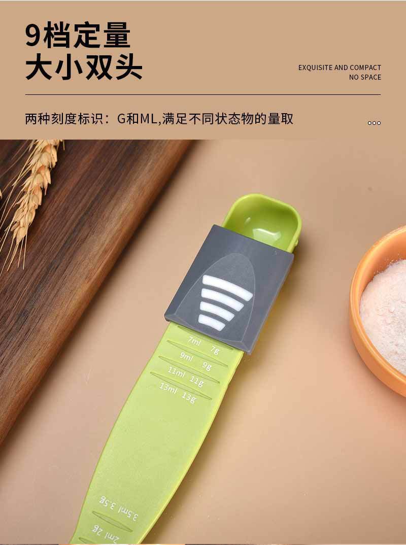 창의적인 가정용 9단계 다기능 계량 스푼, 조절 가능한 눈금이 있는 커피 가루 스푼, 베이킹 주방 정량 스푼