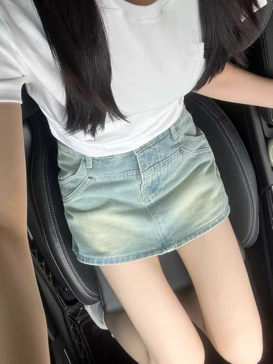 여성을위한 데님 라인 스커트 2024 이른 봄 새로운 디자인 감각 틈새 안티 노출 퀼로트 하이 허리 엉덩이 스커트스토어 가기