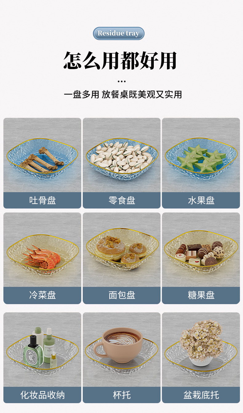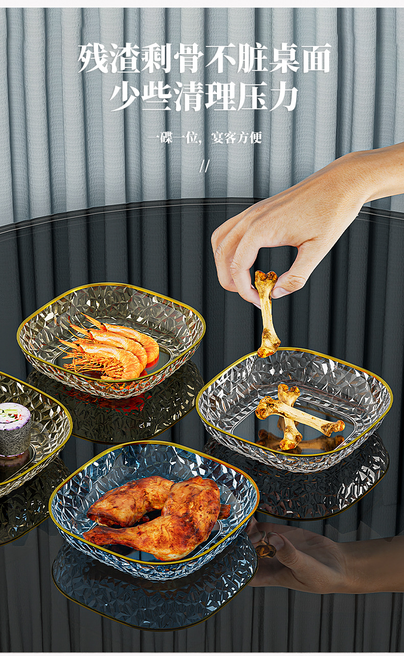 가벼운 고급 뼈 접시 가정용 투명 과일 플레이트 고급 식탁 뼈 접시 식품 등급 스낵 요리 사탕 너트 요리