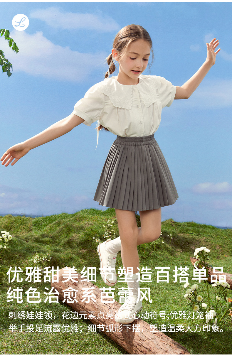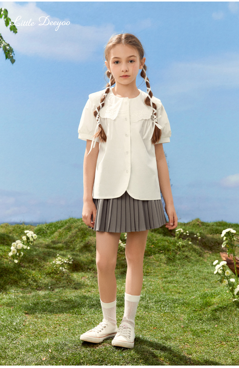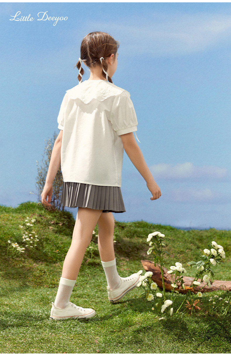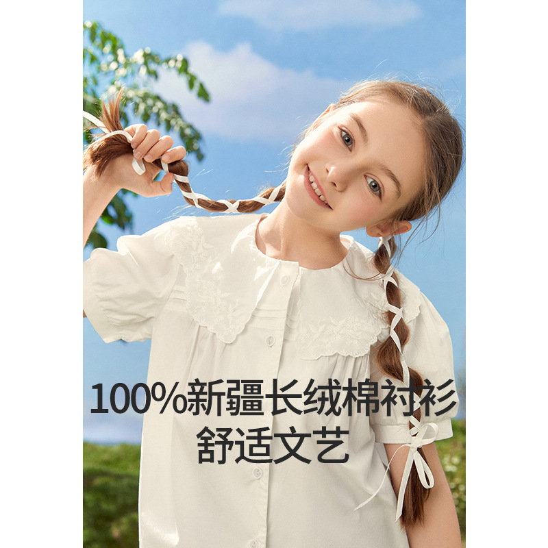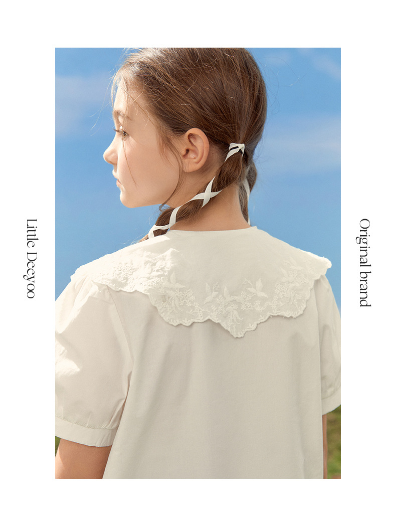 여자 레이스 옷깃 순수 코튼 셔츠 2025 봄과 여름 새로운 스타일 문학 달콤한 어린이 반팔 셔츠 달콤한 스타일스토어 가기