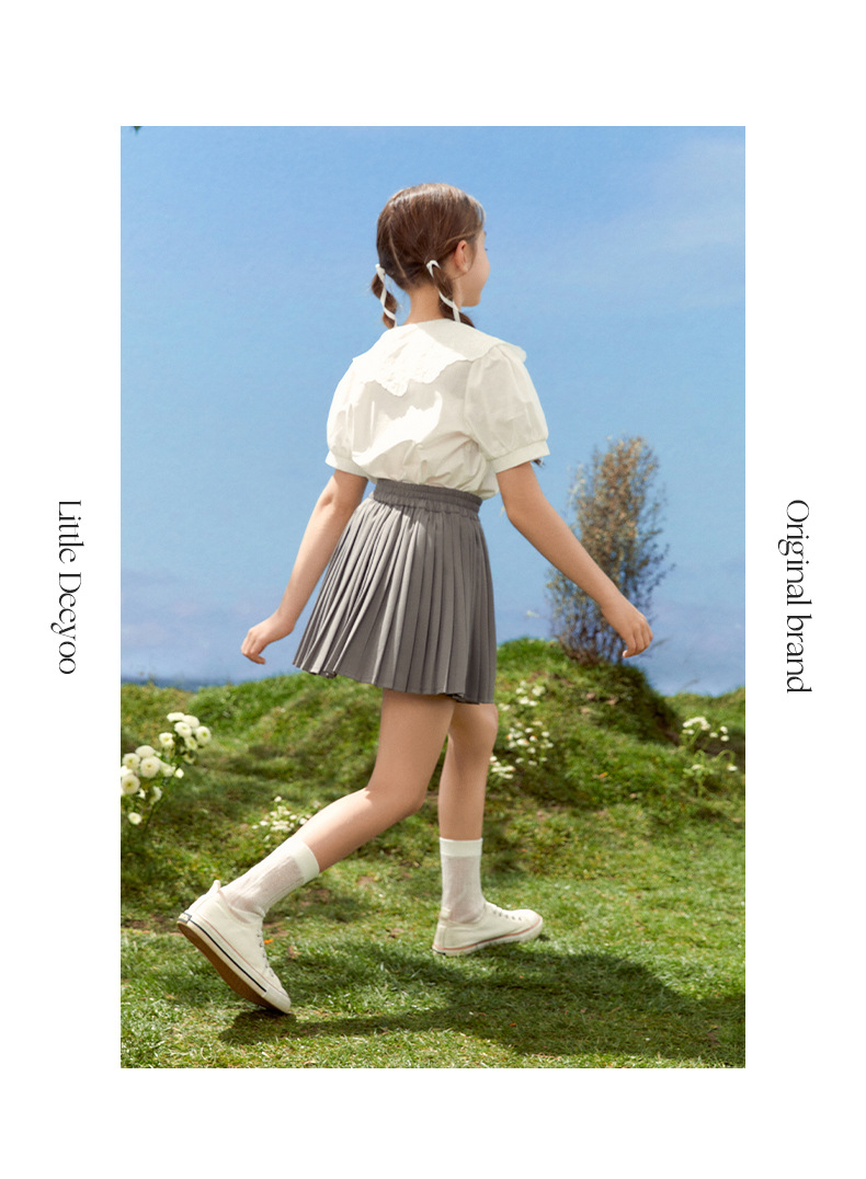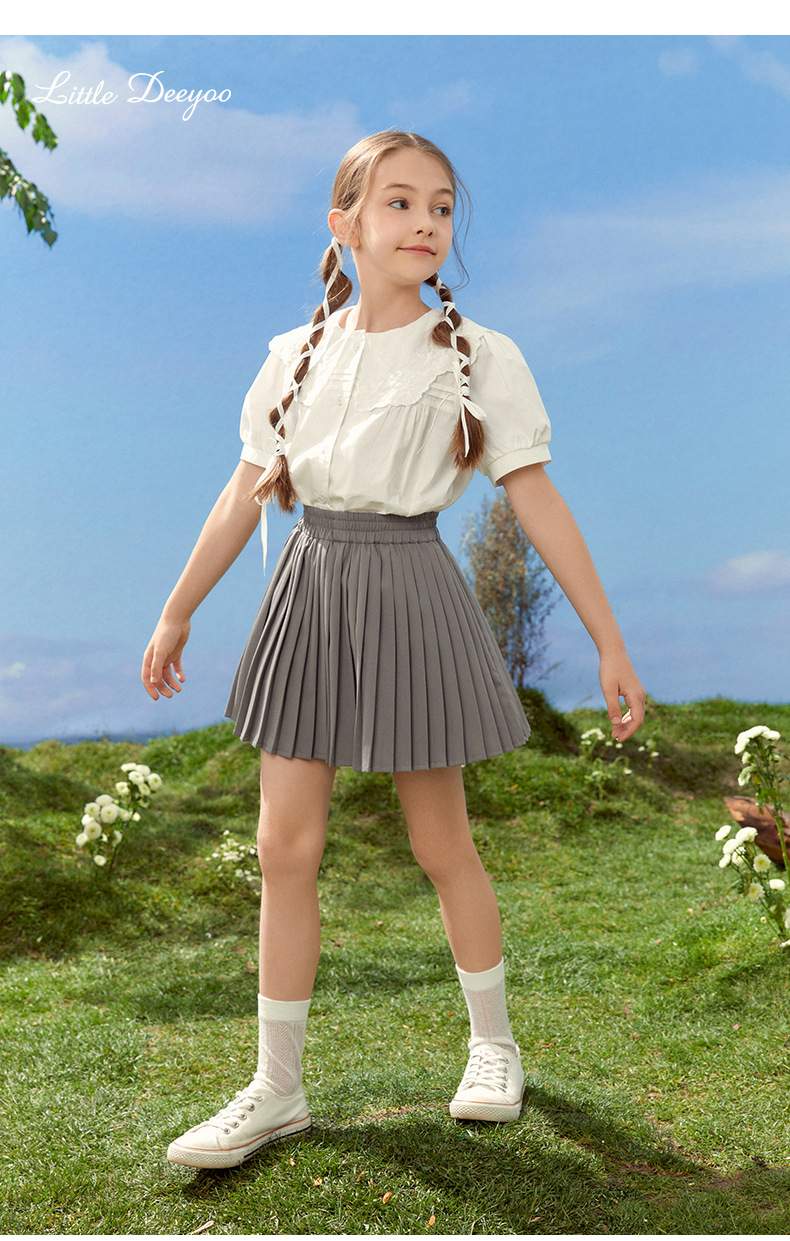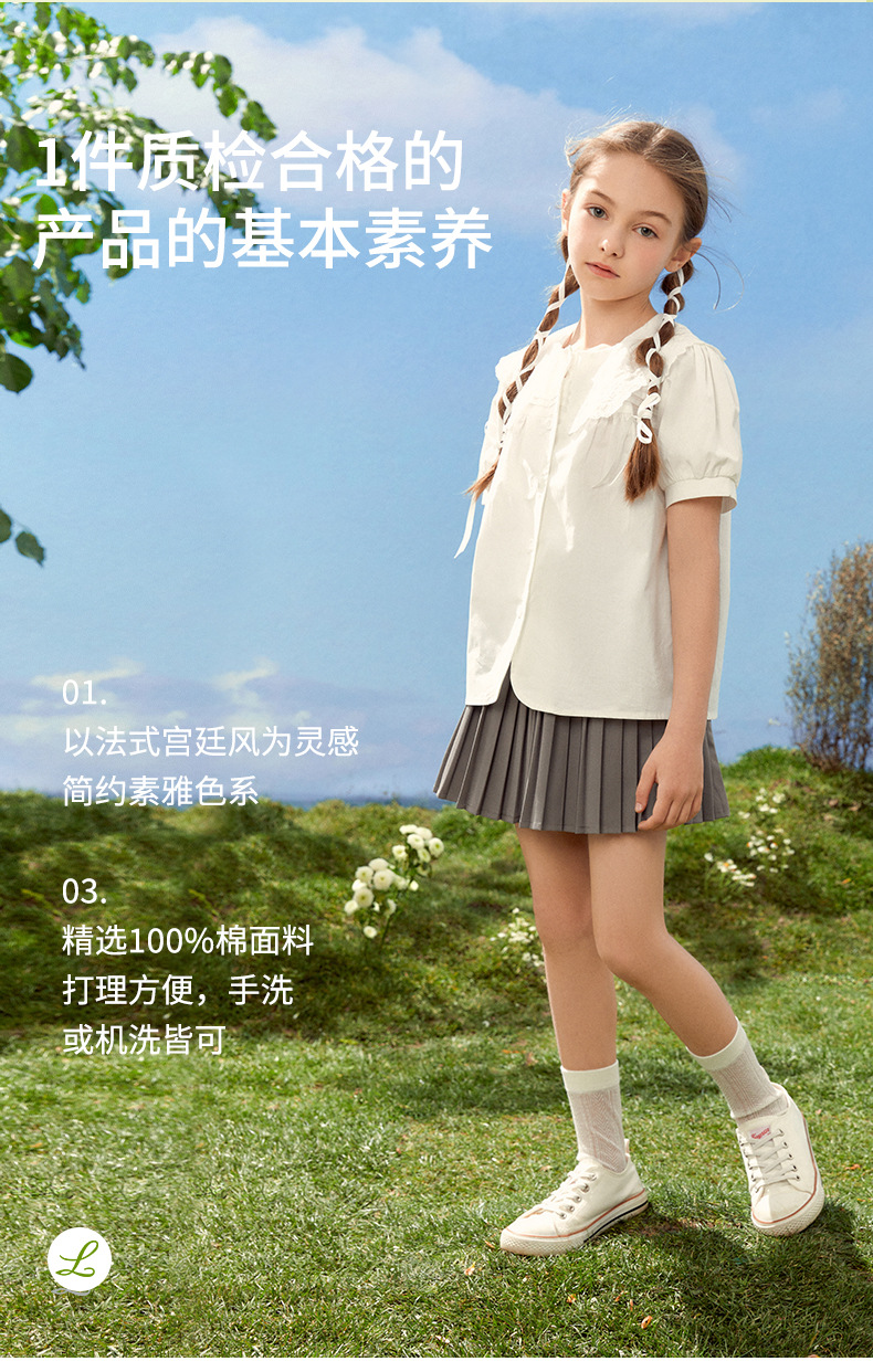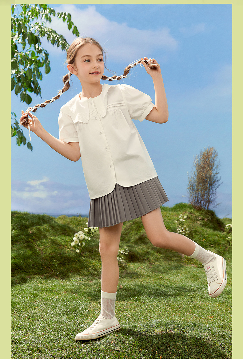 여자 레이스 옷깃 순수 코튼 셔츠 2025 봄과 여름 새로운 스타일 문학 달콤한 어린이 반팔 셔츠 달콤한 스타일스토어 가기