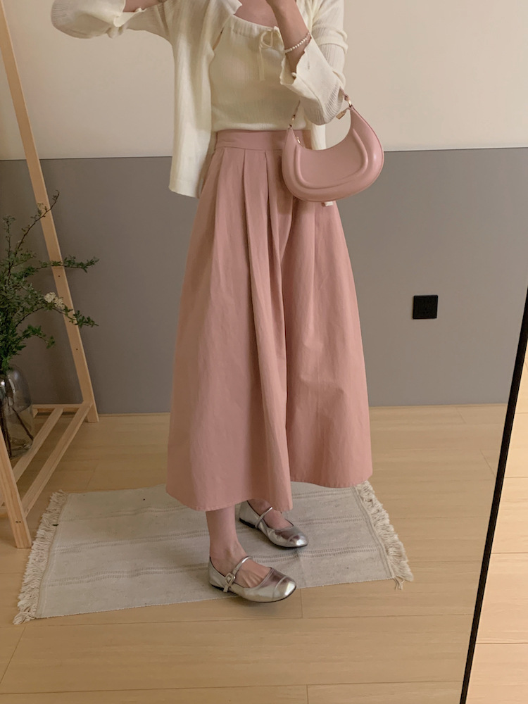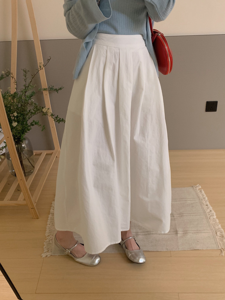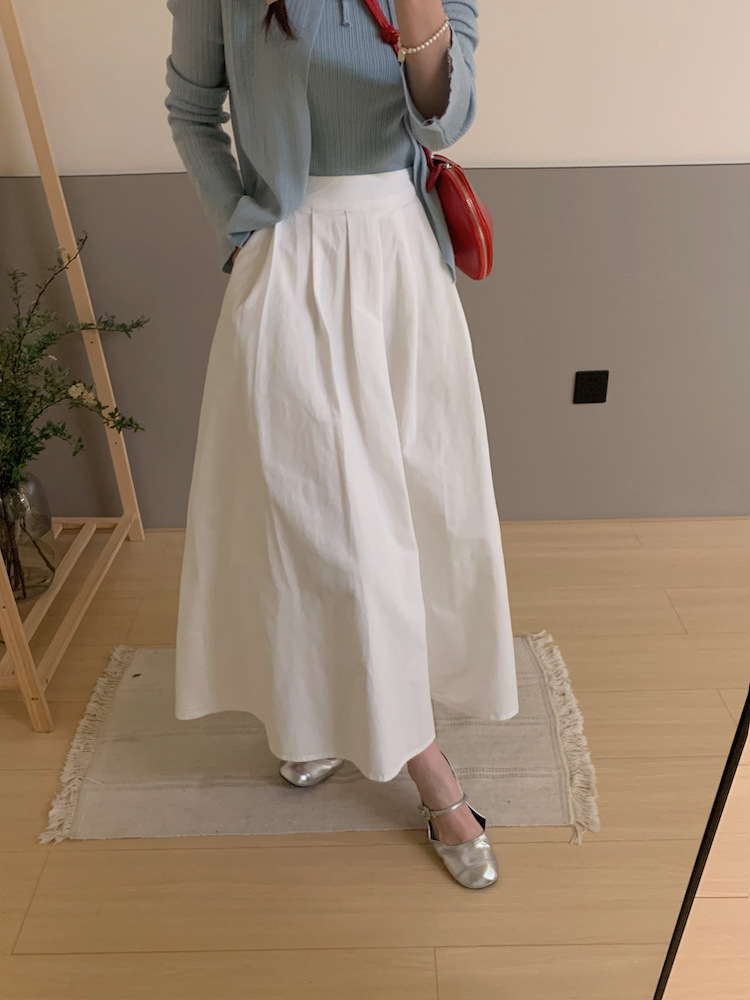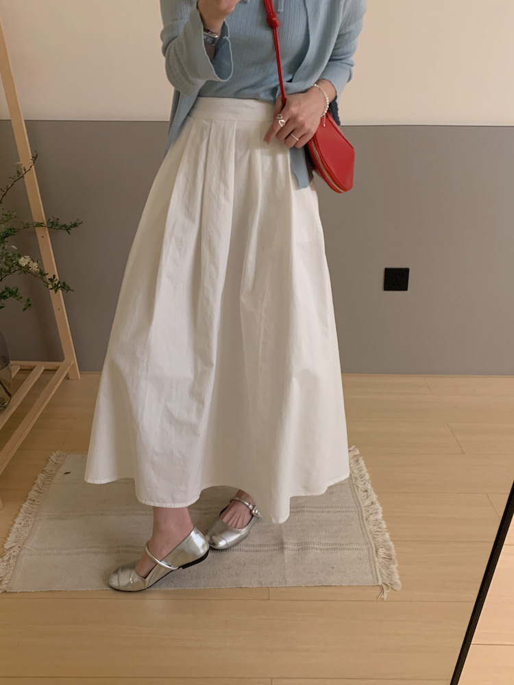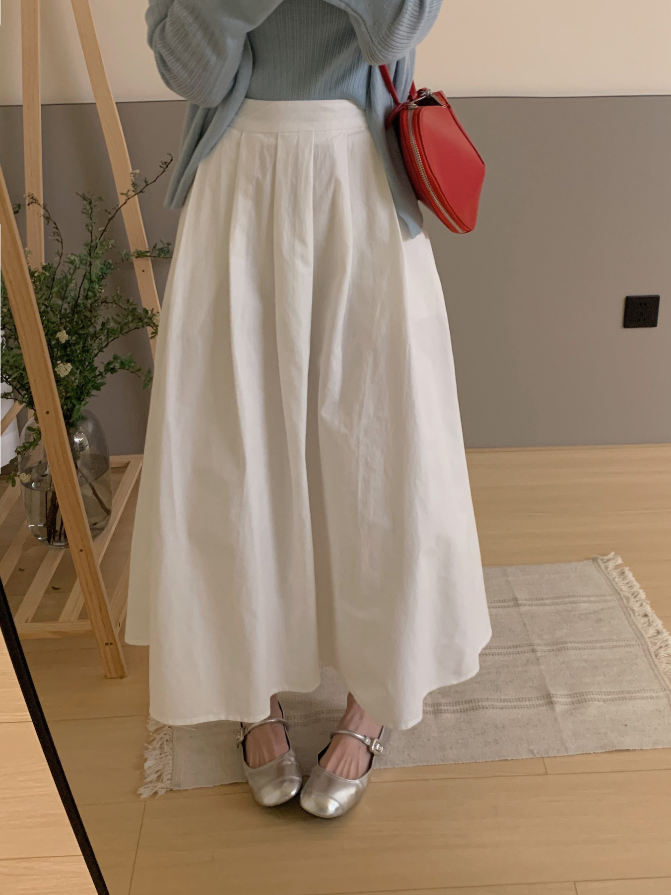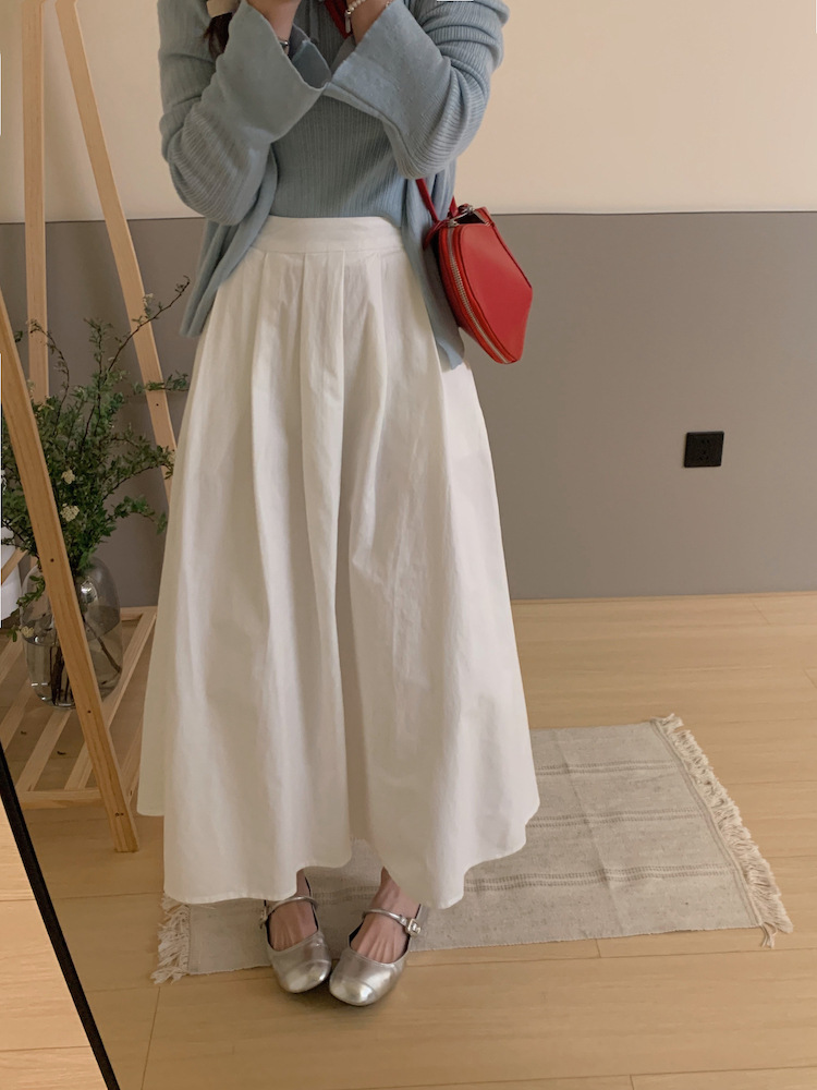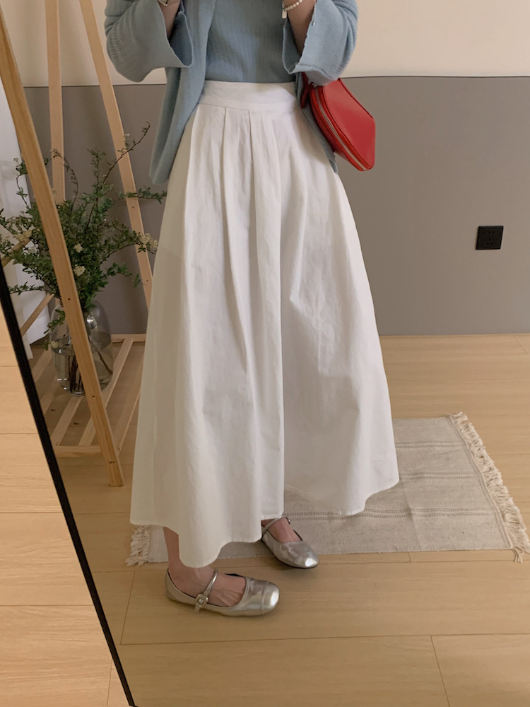 실제 촬영된 한국 스타일 ins2025 봄 다용도 화이트 스커트, 추천 단색 우산 스커트 여성용 하이웨이스트