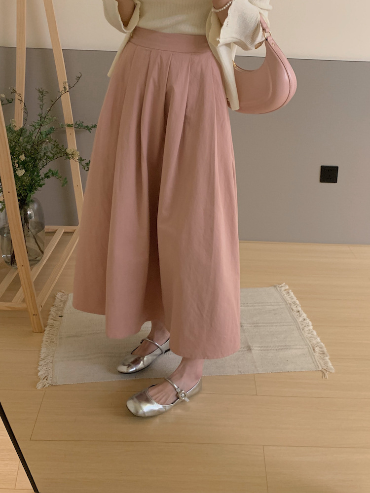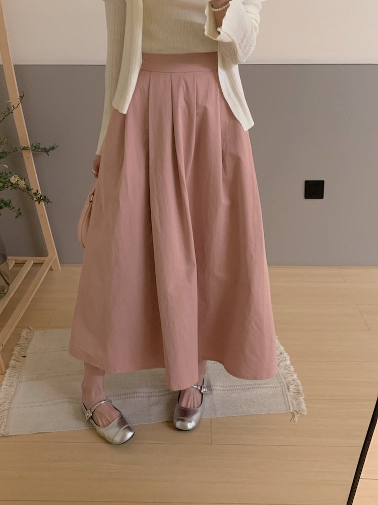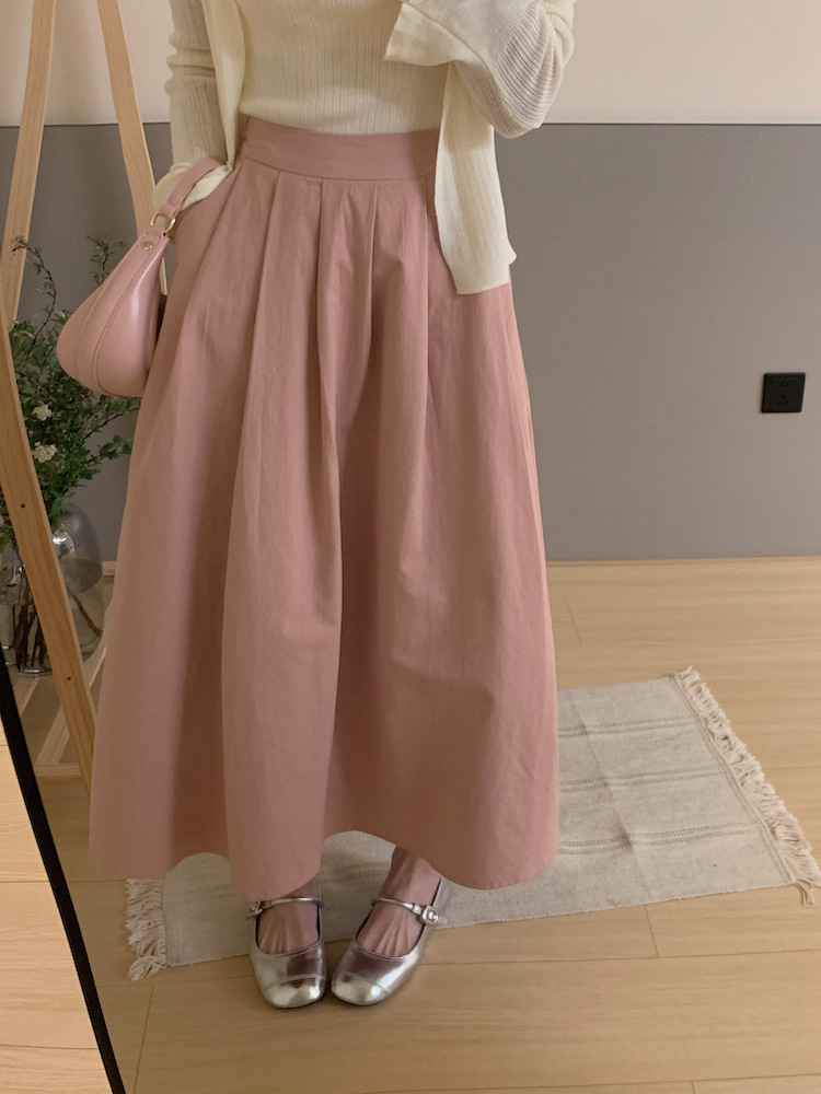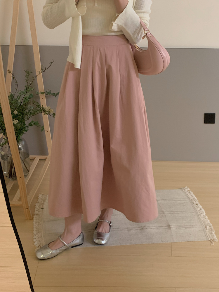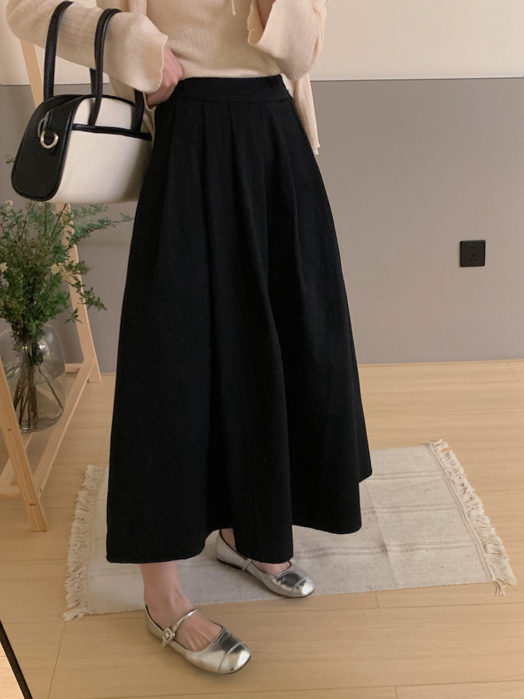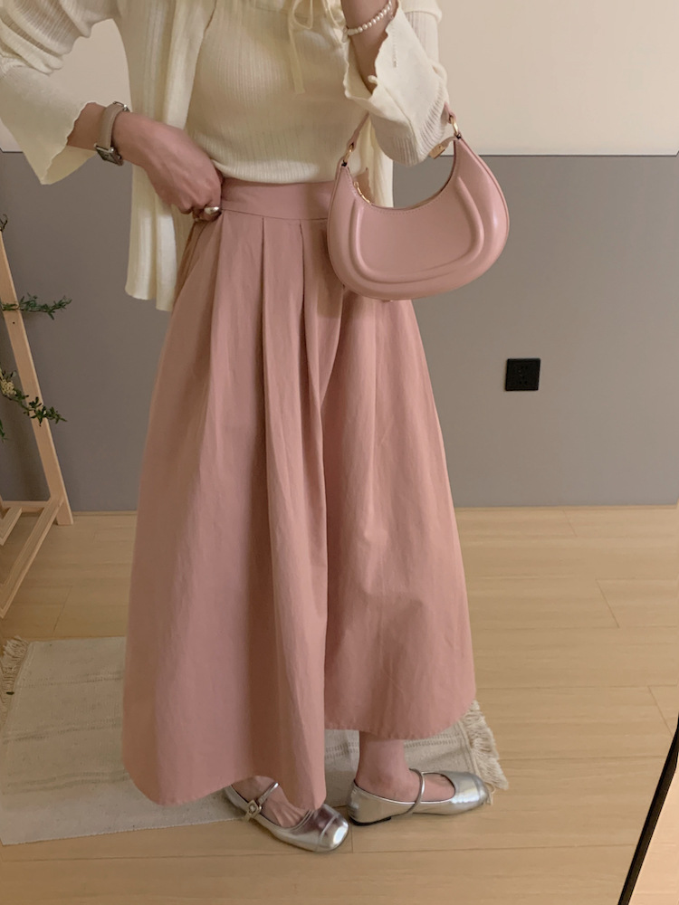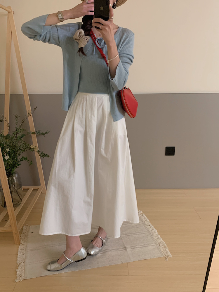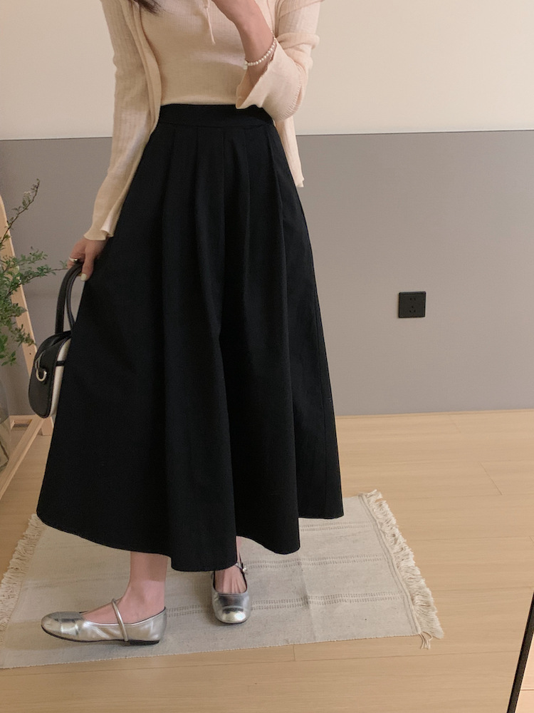실제 촬영된 한국 스타일 ins2025 봄 다용도 화이트 스커트, 추천 단색 우산 스커트 여성용 하이웨이스트