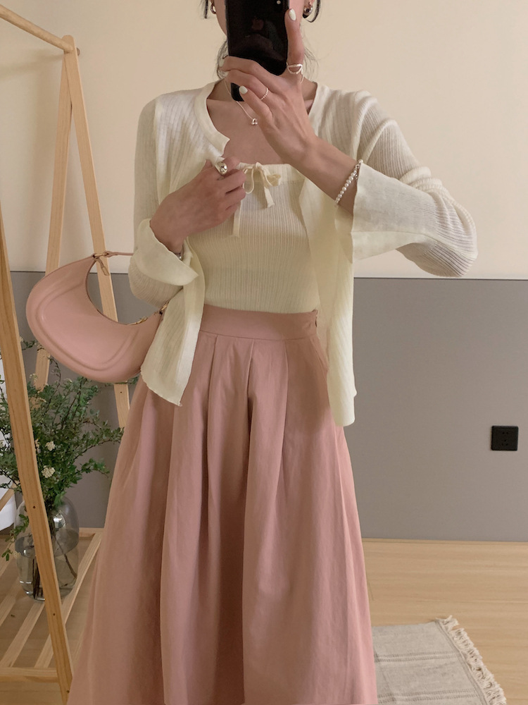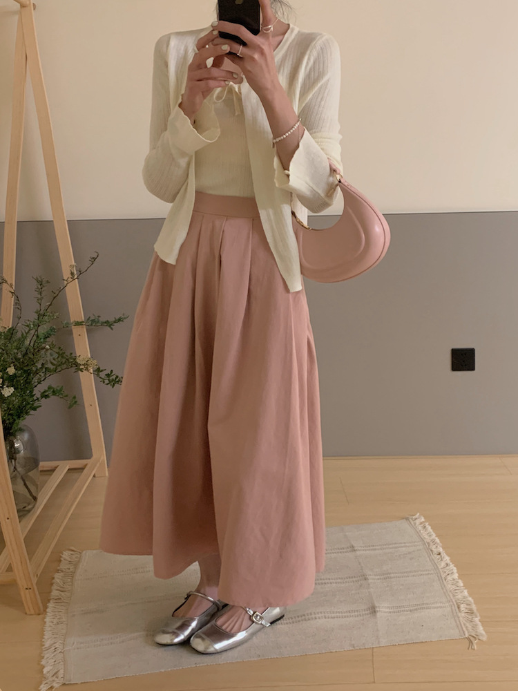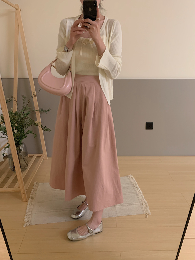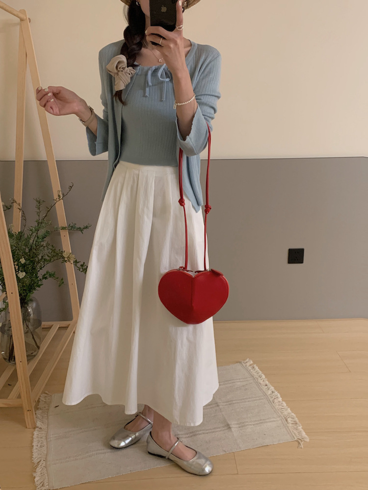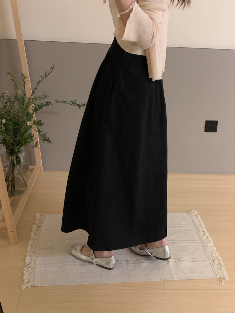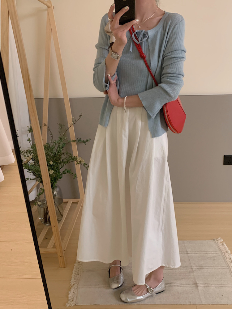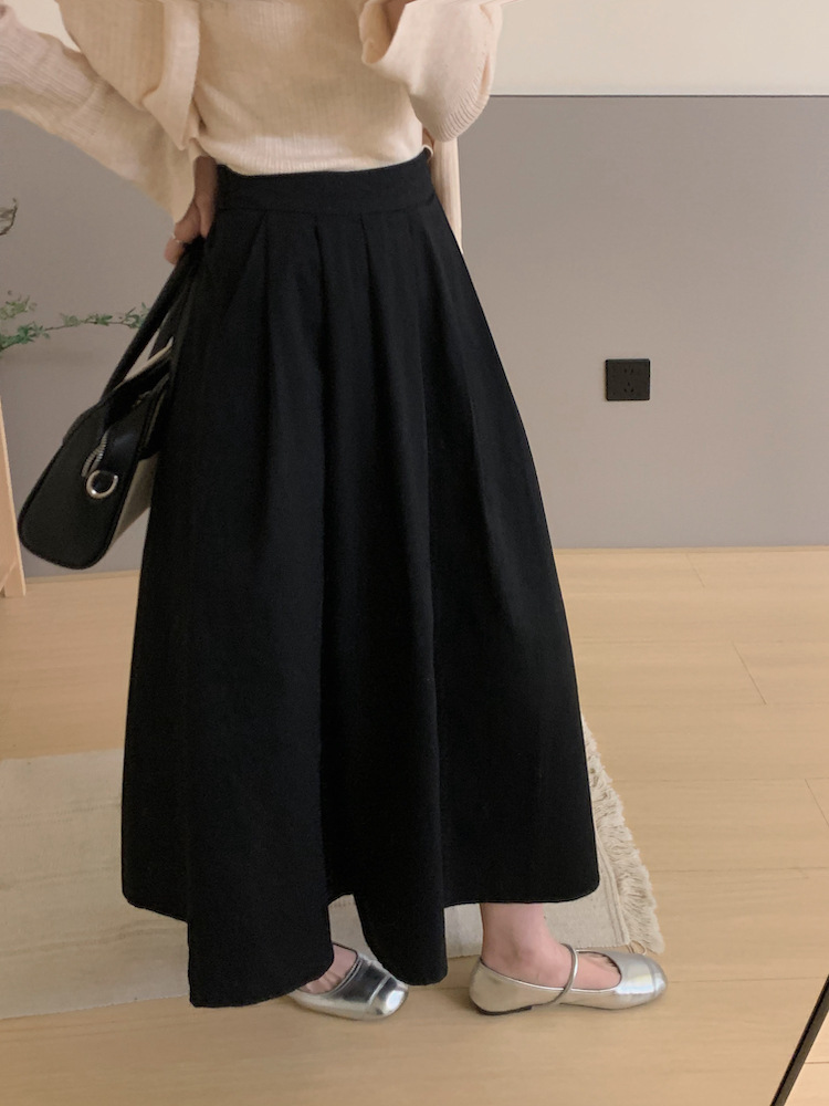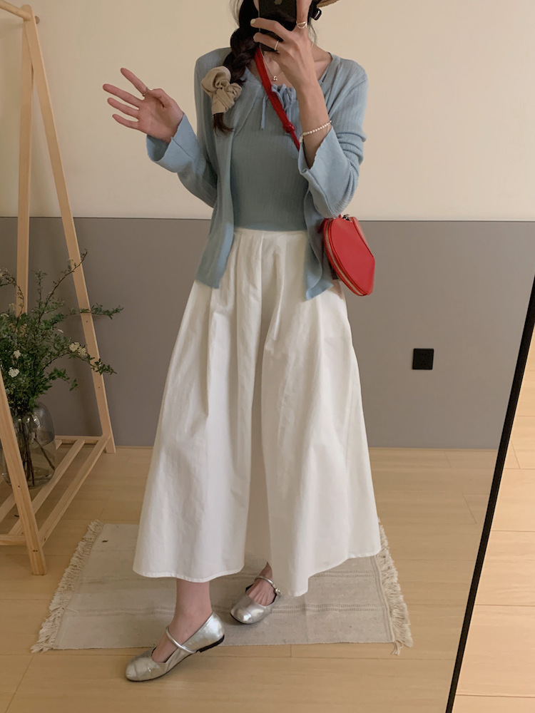 실제 촬영된 한국 스타일 ins2025 봄 다용도 화이트 스커트, 추천 단색 우산 스커트 여성용 하이웨이스트