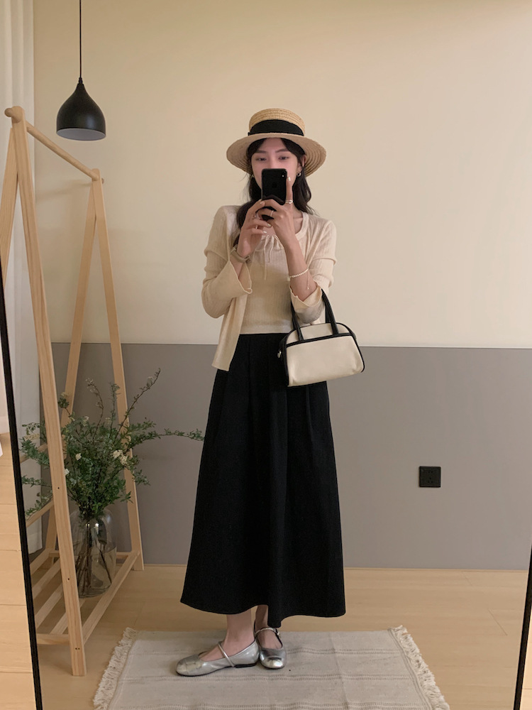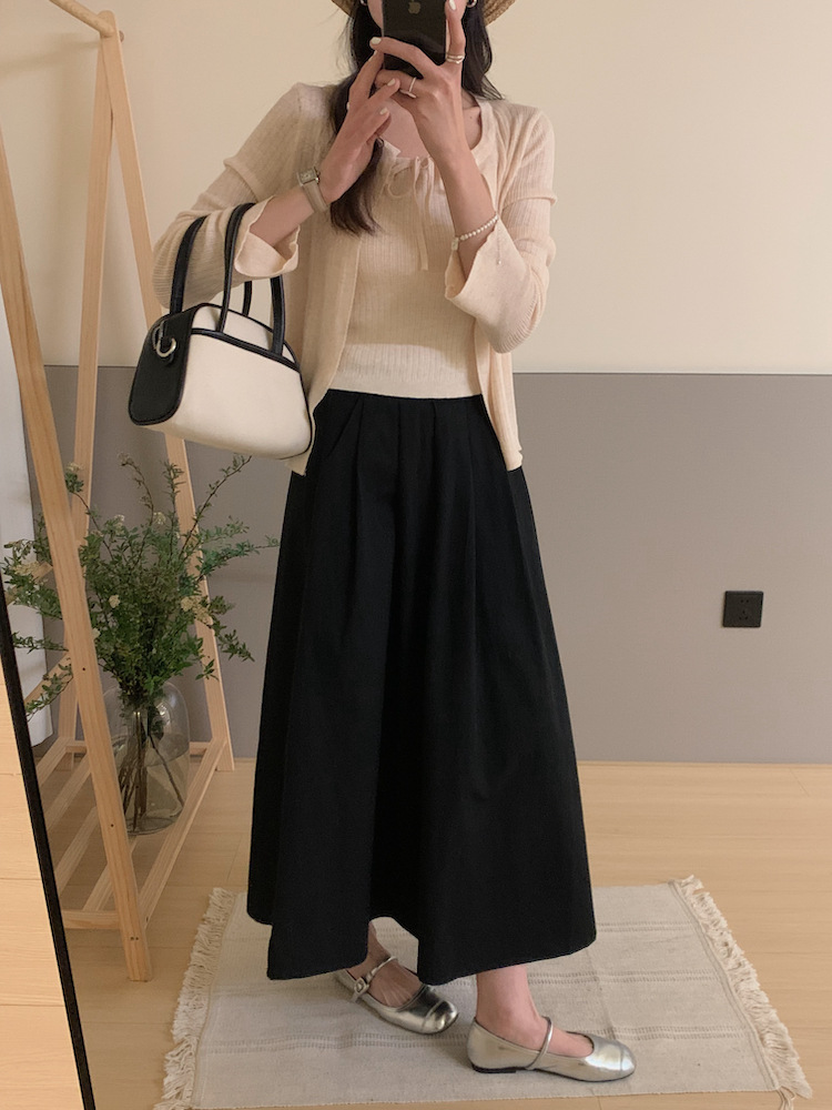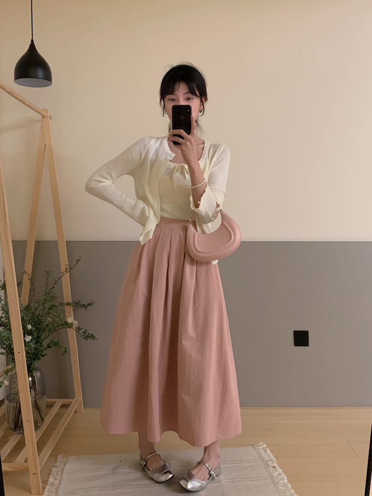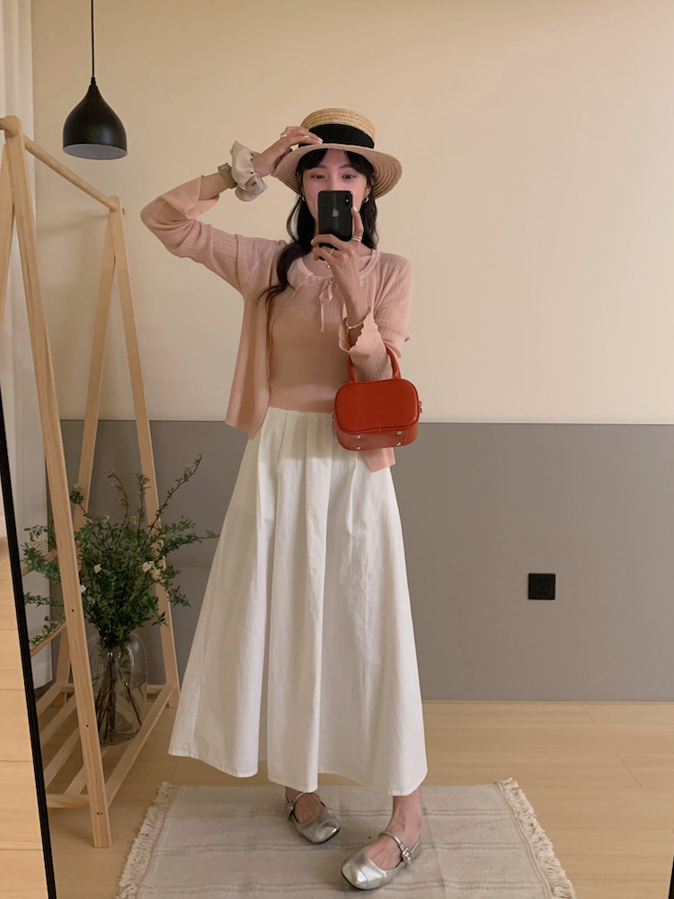 실제 촬영된 한국 스타일 ins2025 봄 다용도 화이트 스커트, 추천 단색 우산 스커트 여성용 하이웨이스트스토어 가기