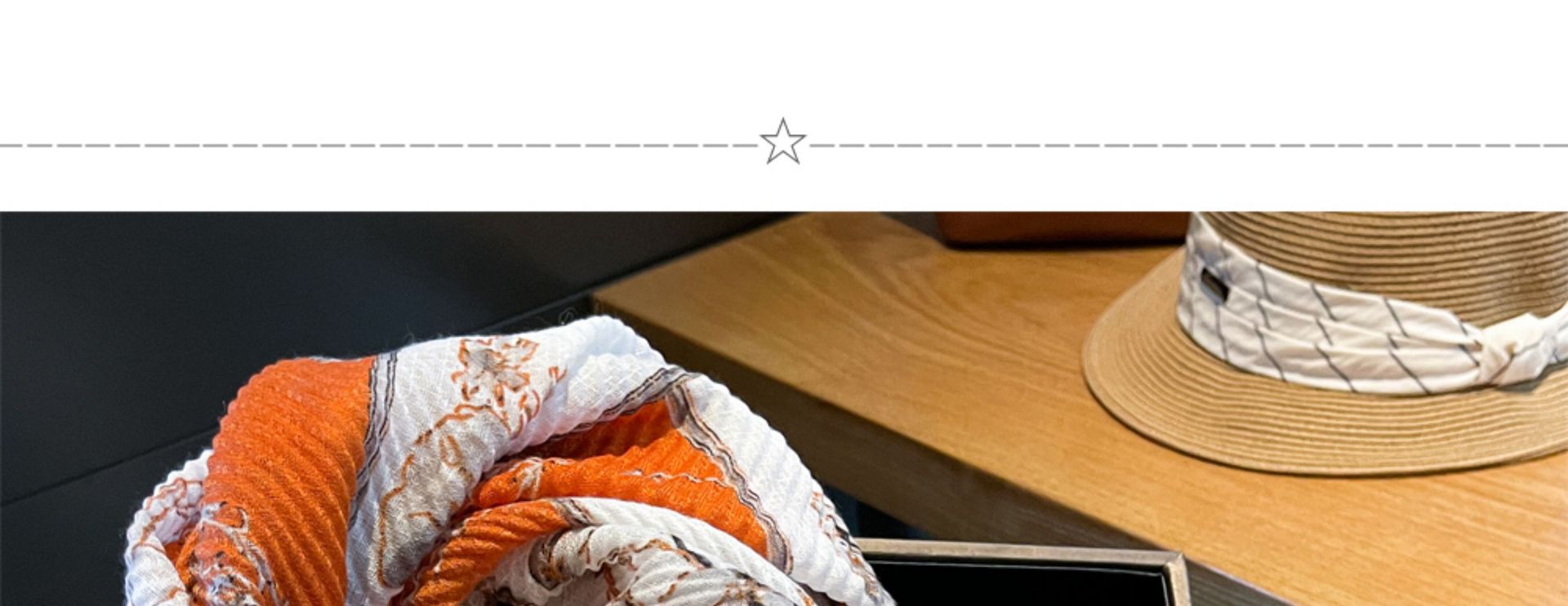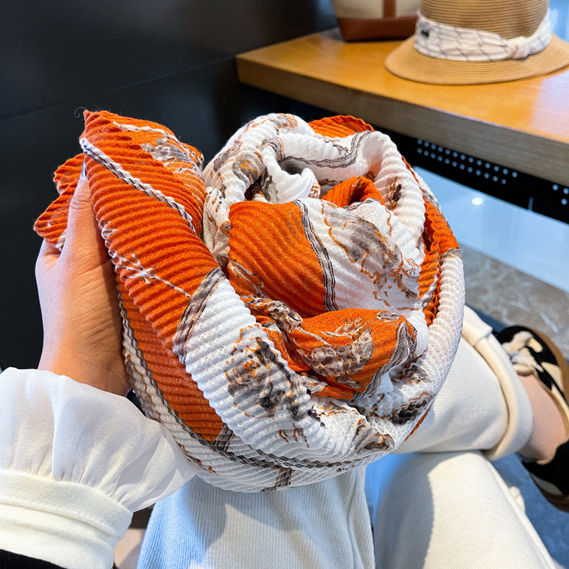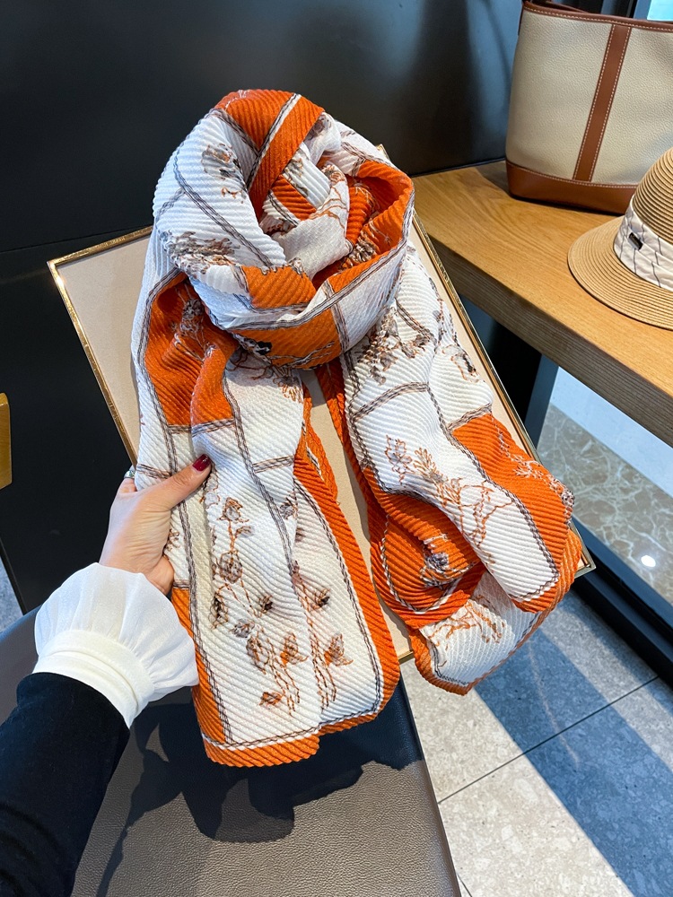 春夏围巾女简约高雅橙白玫瑰复古文艺棉麻压褶皱知性装饰空调披肩