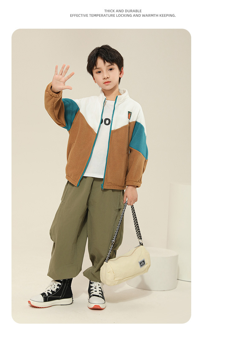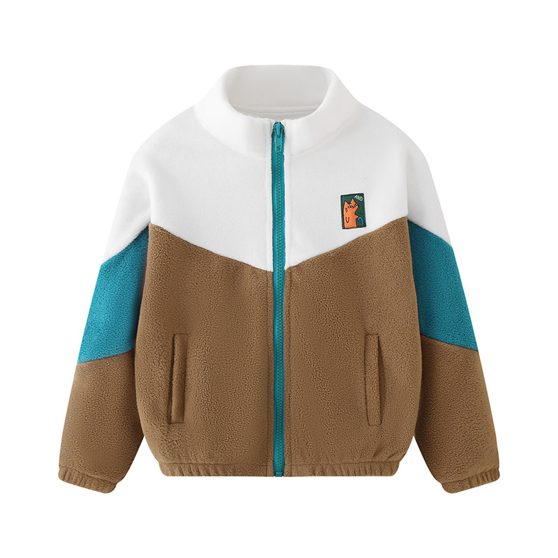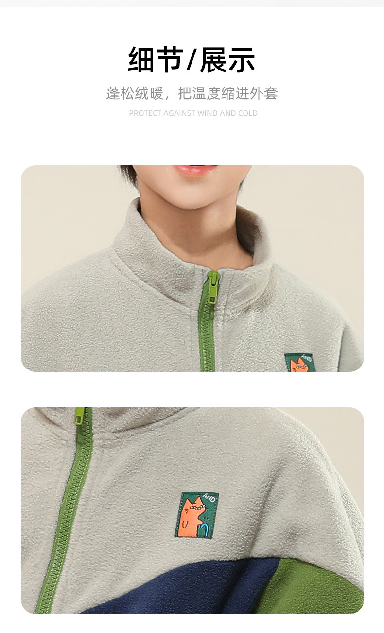 봄과 가을 어린이 캐주얼 스웨터 소년과 소녀 폴라 플리스 양털 스탠드 칼라 탑 중간 및 큰 어린이 아기 만화 코트스토어 가기