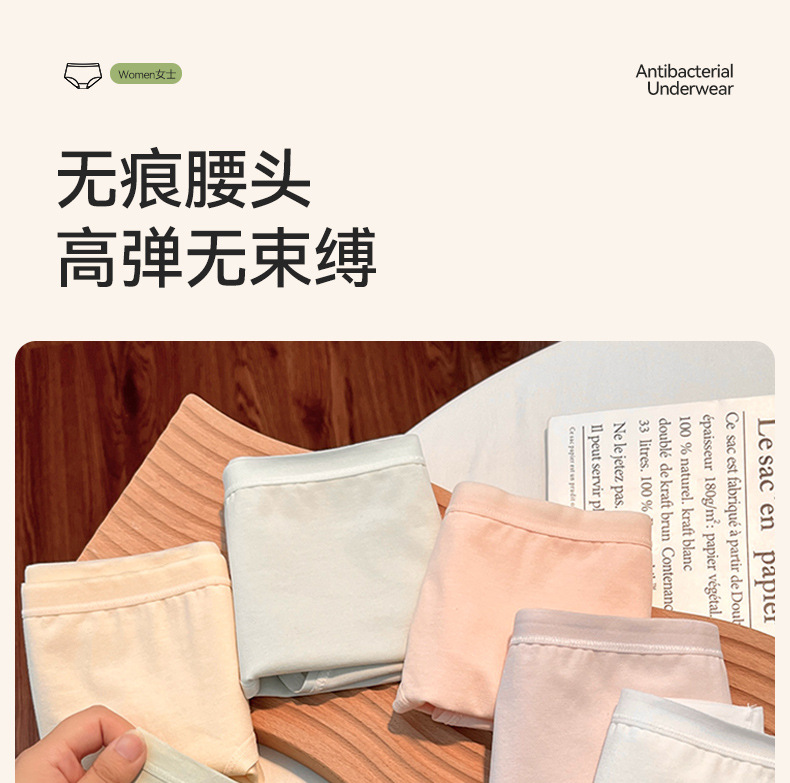 여성용 순면 항균 편안한 속옷, 여성용 순면 가랑이, 소녀용 무봉제 순면 누드감 중간 허리 속옷스토어 가기