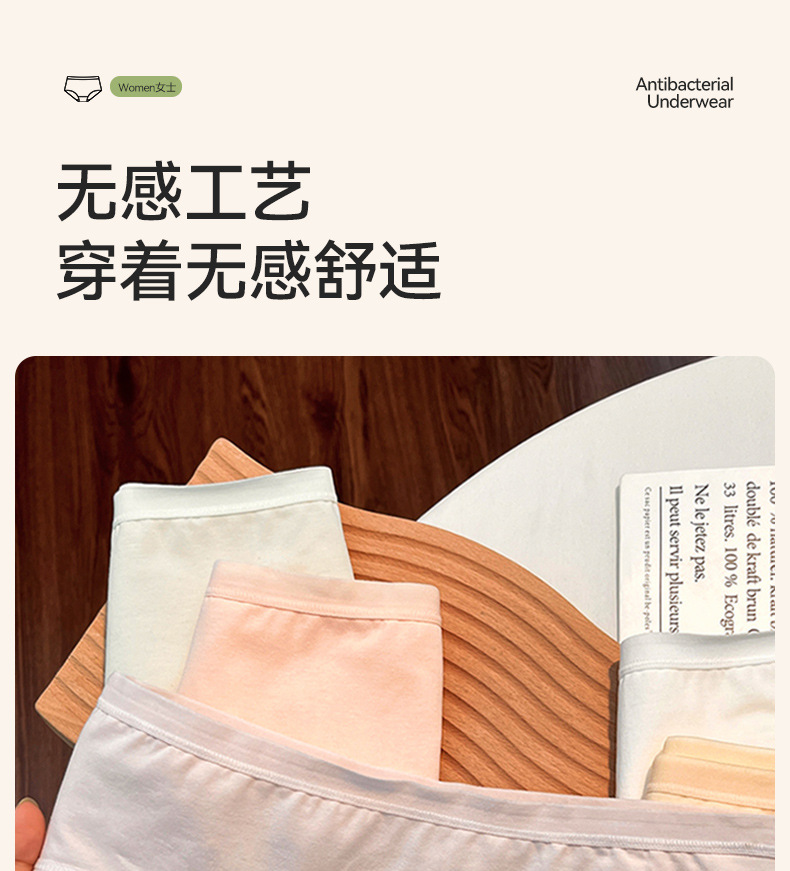 여성용 순면 항균 편안한 속옷, 여성용 순면 가랑이, 소녀용 무봉제 순면 누드감 중간 허리 속옷
