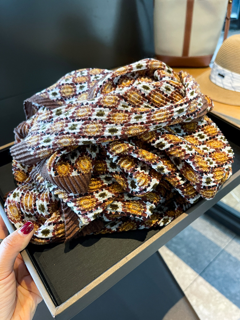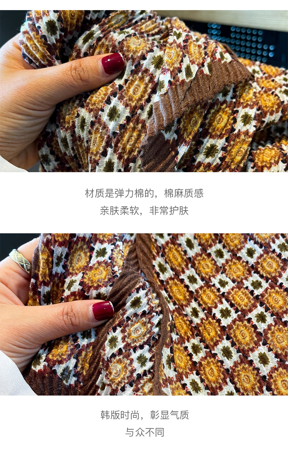 优雅咖黄腰果花褶皱棉麻春夏围巾女旅游防晒护颈两用披肩薄款纱巾