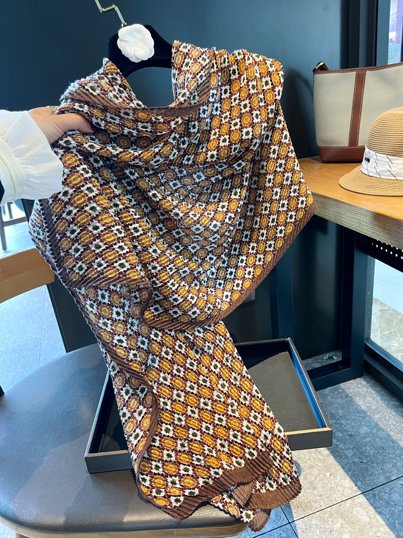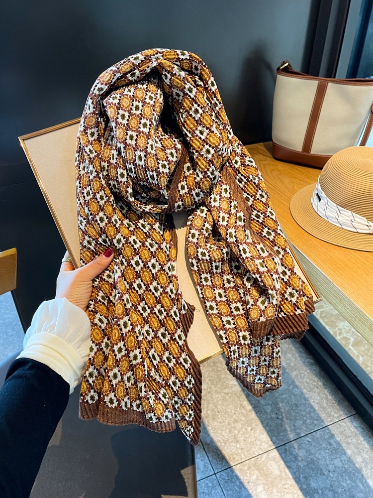 우아한 커피 노란색 캐슈 꽃 주름 된면과 린넨 봄과 여름 스카프 여성 여행 태양 보호 목 보호 이중 사용 목도리 얇은 스카프스토어 가기