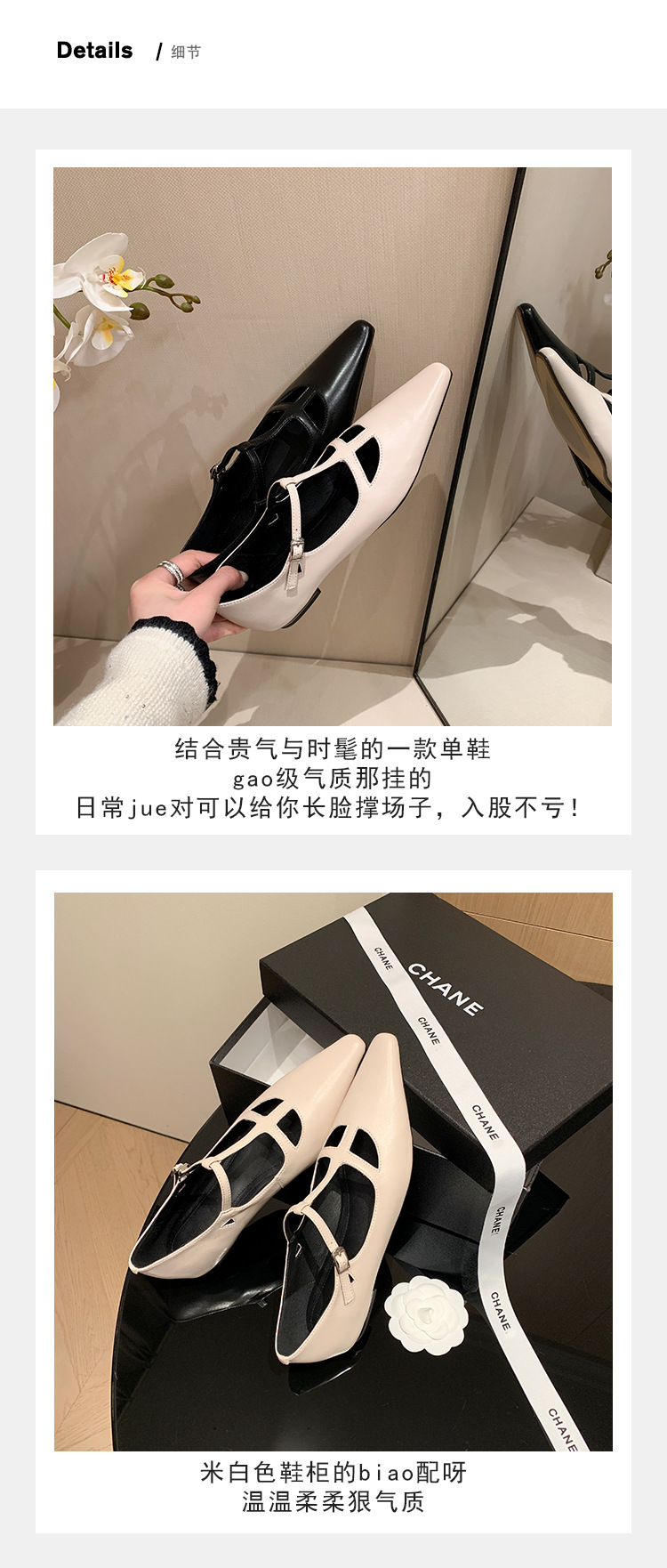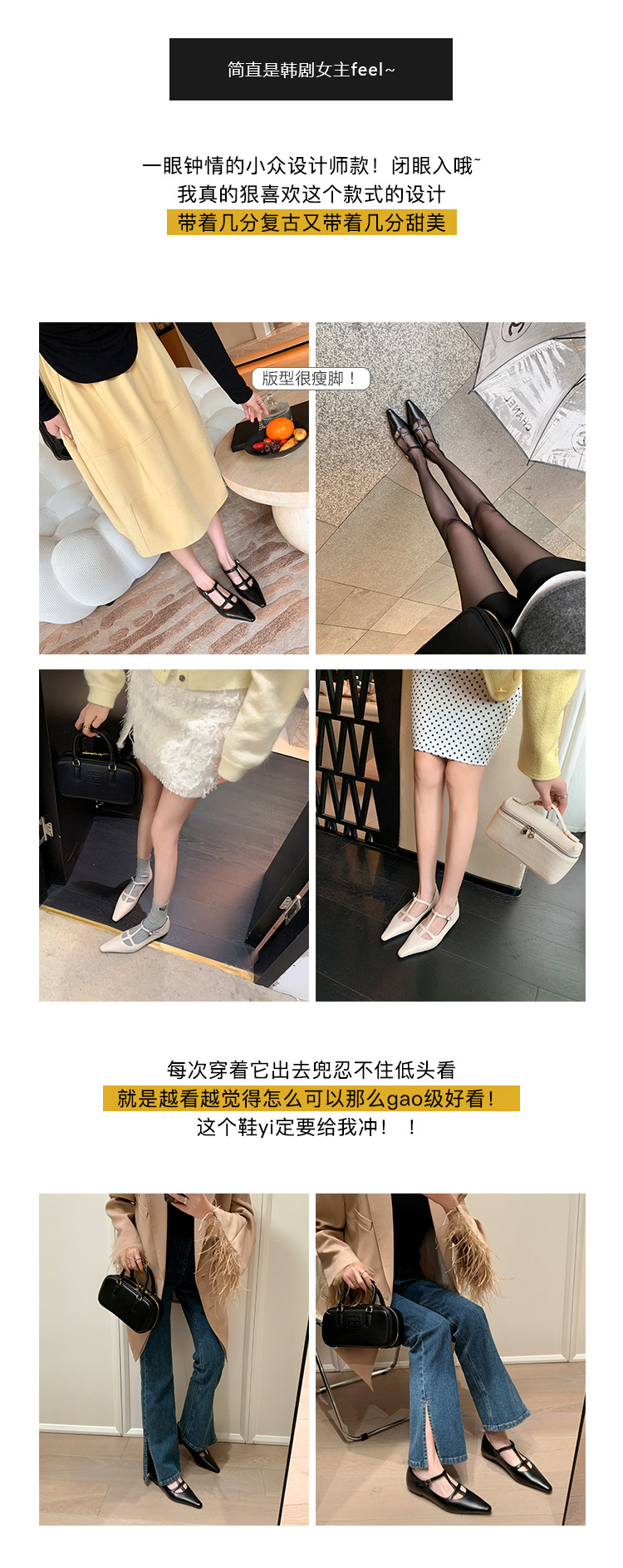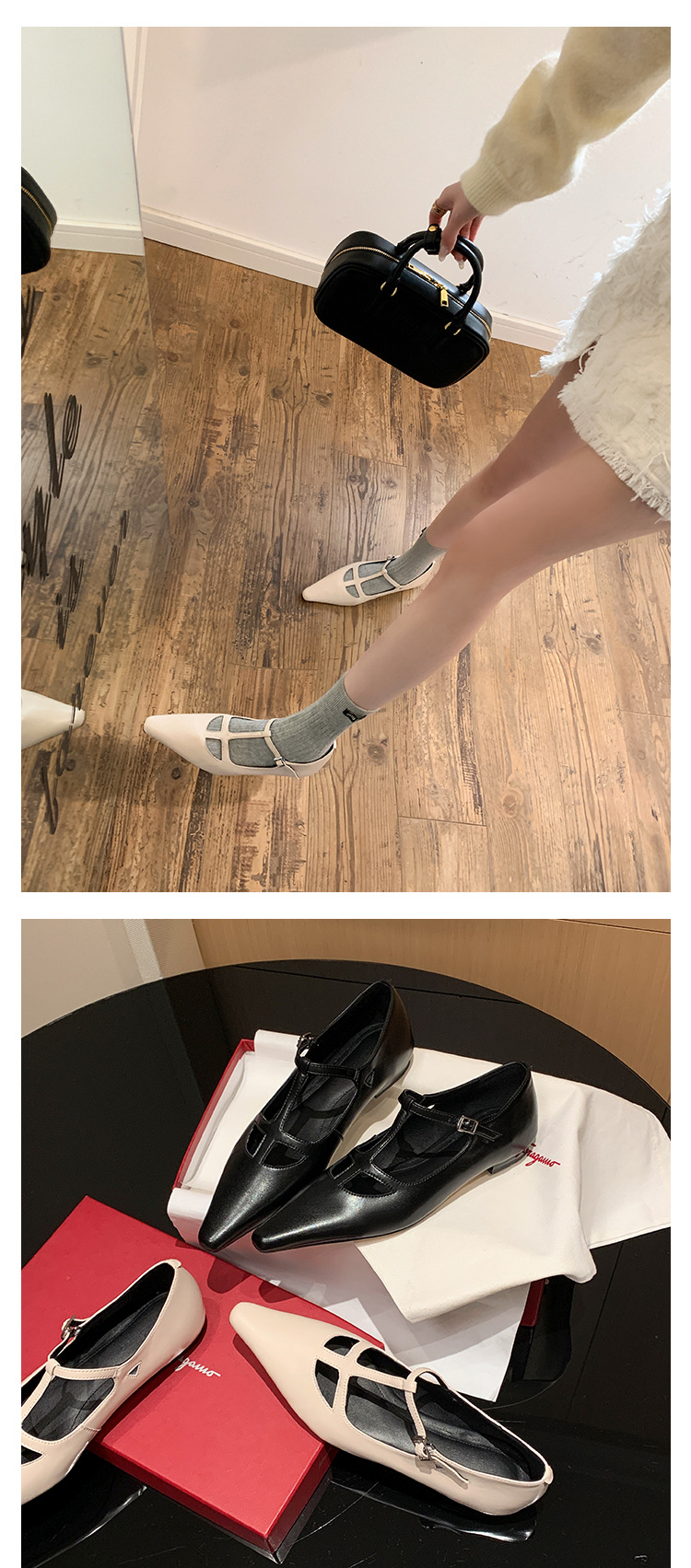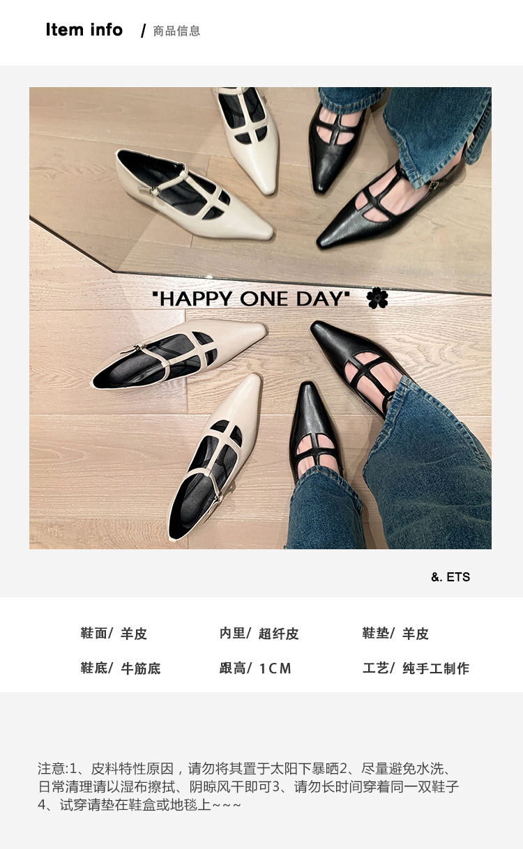 프랑스 우아한 사교계 스타일 T-스트랩 로우 힐 뾰족한 싱글 레이어 신발 2024 봄 새로운 양가죽 올매치 편안한 여성 신발스토어 가기