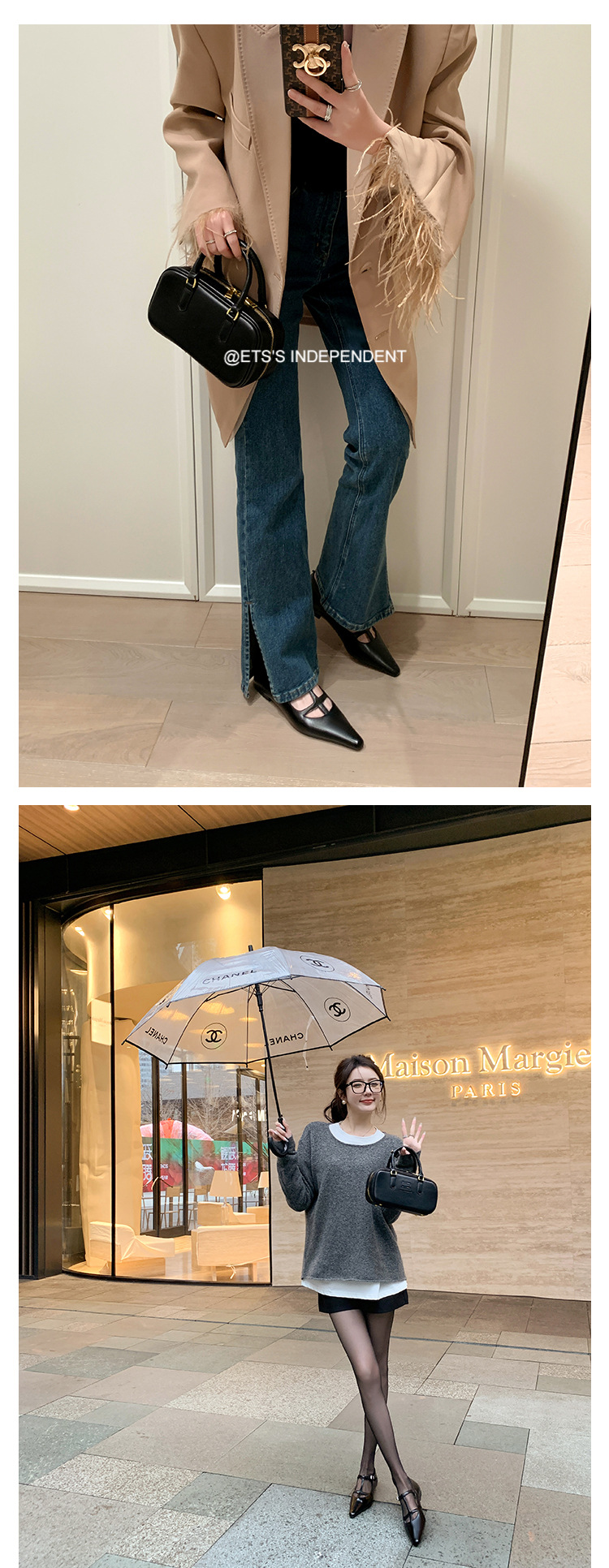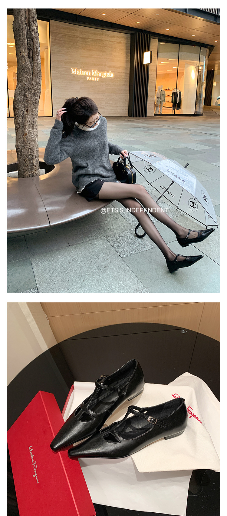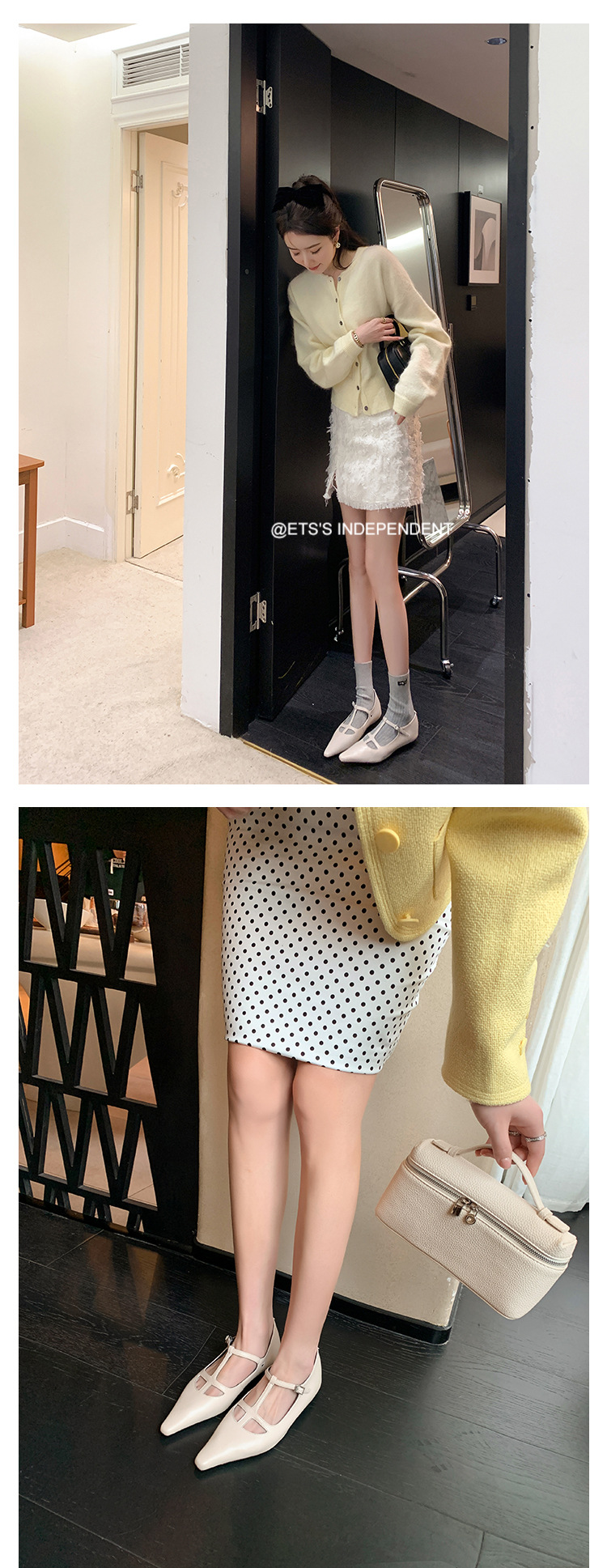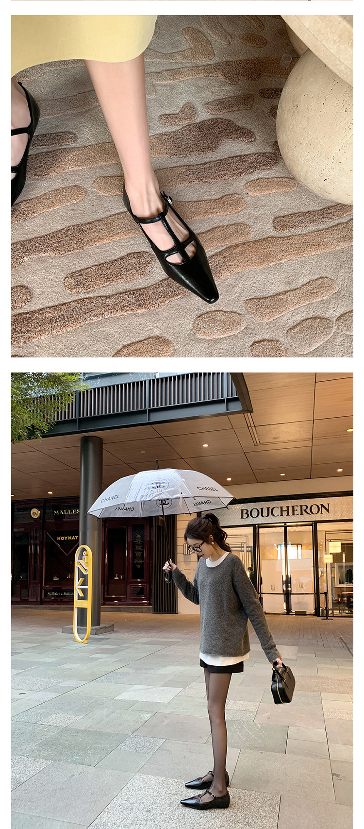 프랑스 우아한 사교계 스타일 T-스트랩 로우 힐 뾰족한 싱글 레이어 신발 2024 봄 새로운 양가죽 올매치 편안한 여성 신발스토어 가기