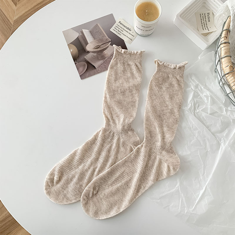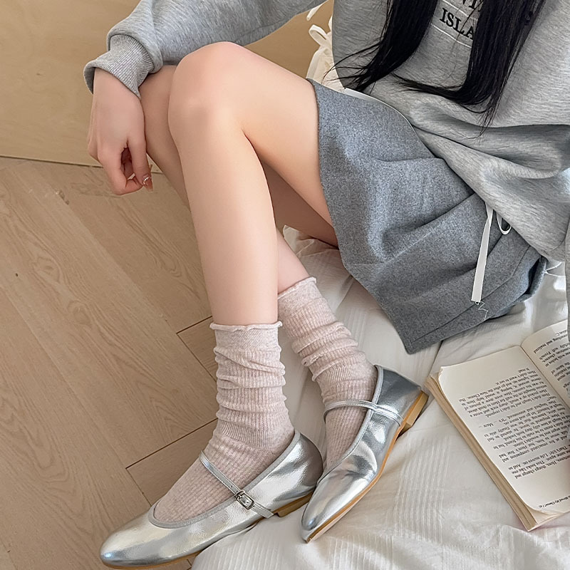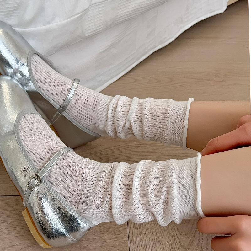 솔리드 컬링 중간 종아리 양말 여성의 일본 얇은 메쉬 통기성 봄과 여름 메리 제인 신발 소녀 스타일 더미 양말
