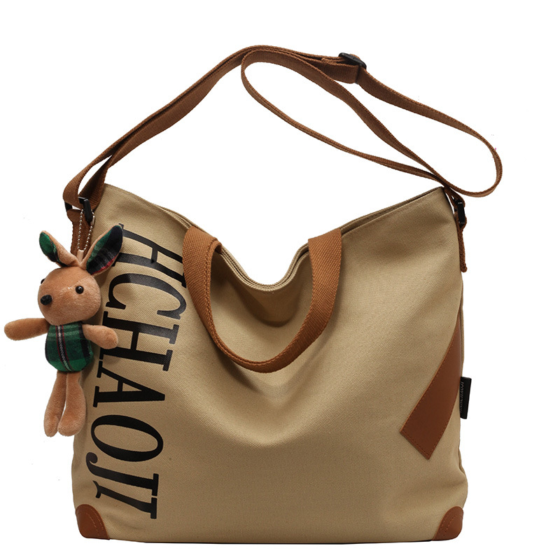 태국 인터넷 유명 인사, 여성을위한 서양식 휴대용 토트 백 새로운 국경 GW 문자 캔버스 인쇄 클래스 통근 가방스토어 가기