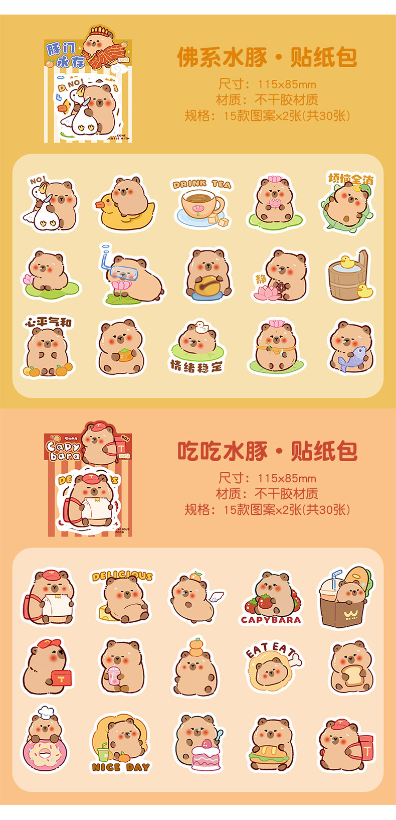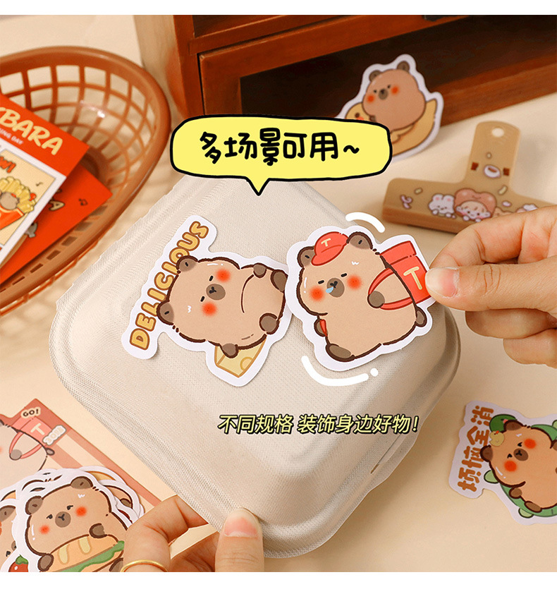 국경 Kapibala 스티커 팩 귀여운 Capybara 핸드북 스티커 DIY 자체 접착 휴대 전화 워터 컵 장식 스티커스토어 가기