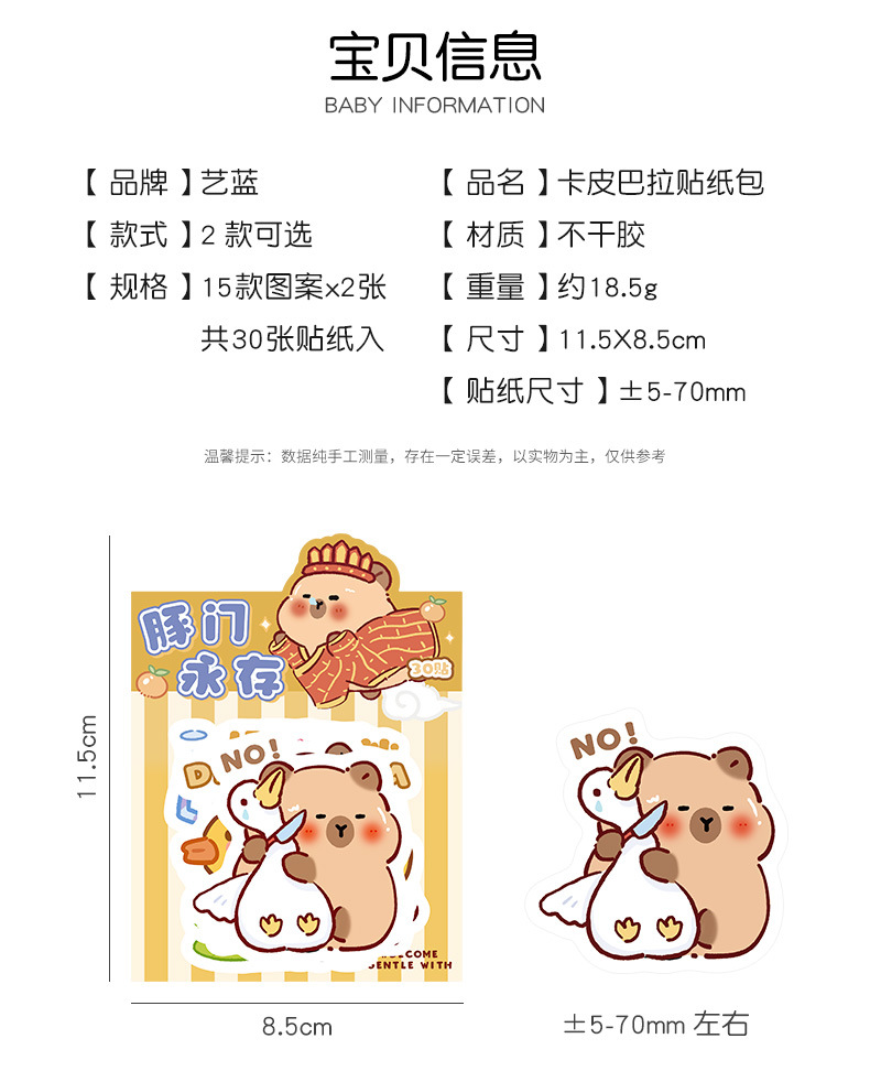국경 Kapibala 스티커 팩 귀여운 Capybara 핸드북 스티커 DIY 자체 접착 휴대 전화 워터 컵 장식 스티커
