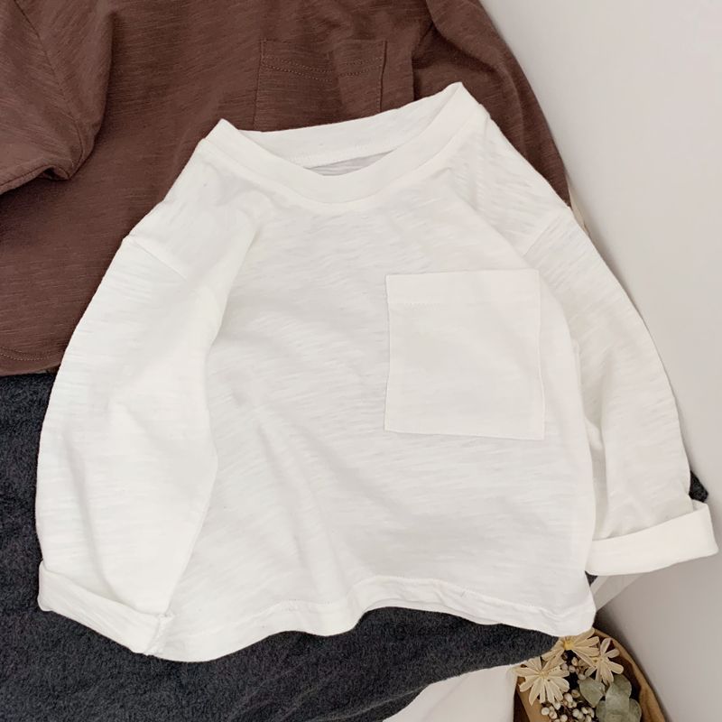 버전은 깨끗하고 착용하기 쉽습니다! 한국 소년 소녀 아기 포켓 디자인 슬럽 면 긴 소매 티셔츠 가을 23스토어 가기