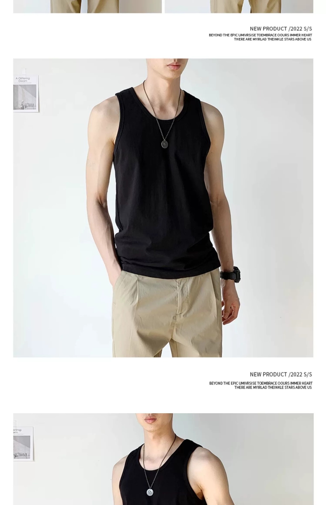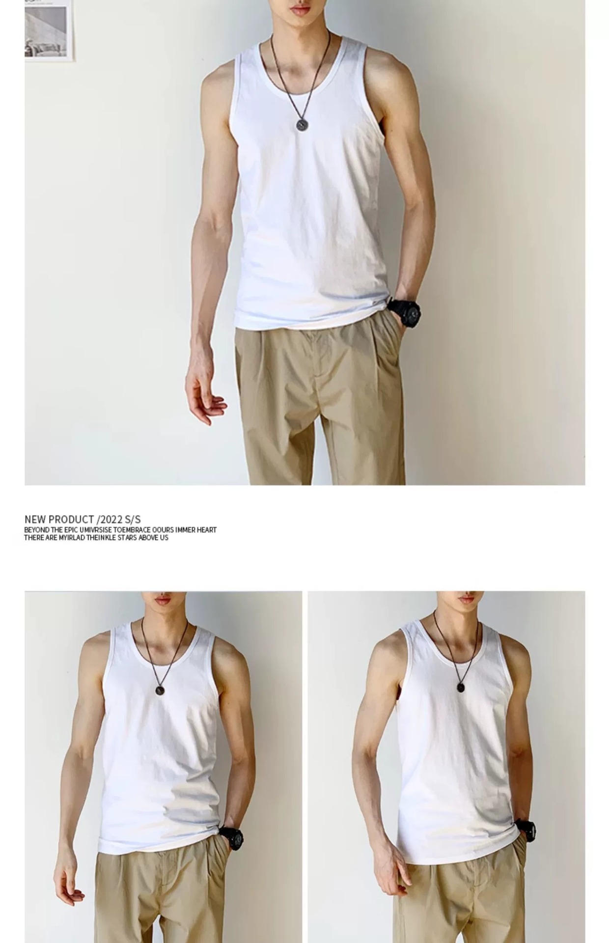 남성 여름 얇은 단색 조끼 미국 양복 조끼 바닥 언더 셔츠 느슨한 스포츠 피트니스 흰색 민소매 티셔츠스토어 가기