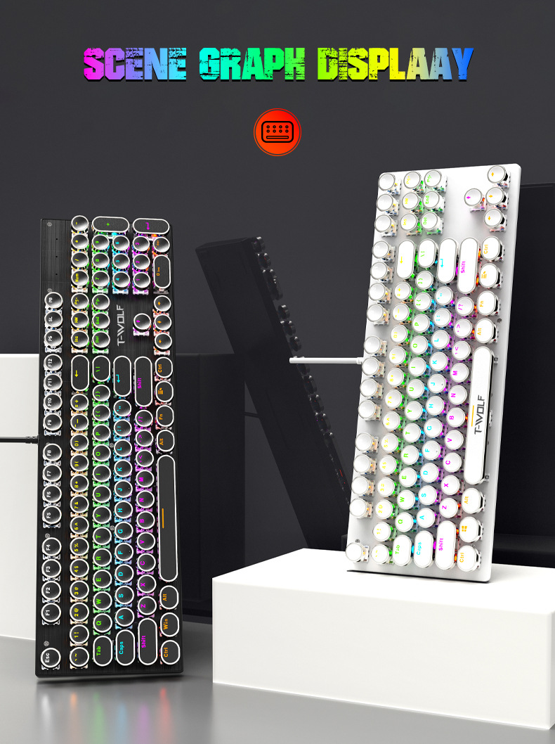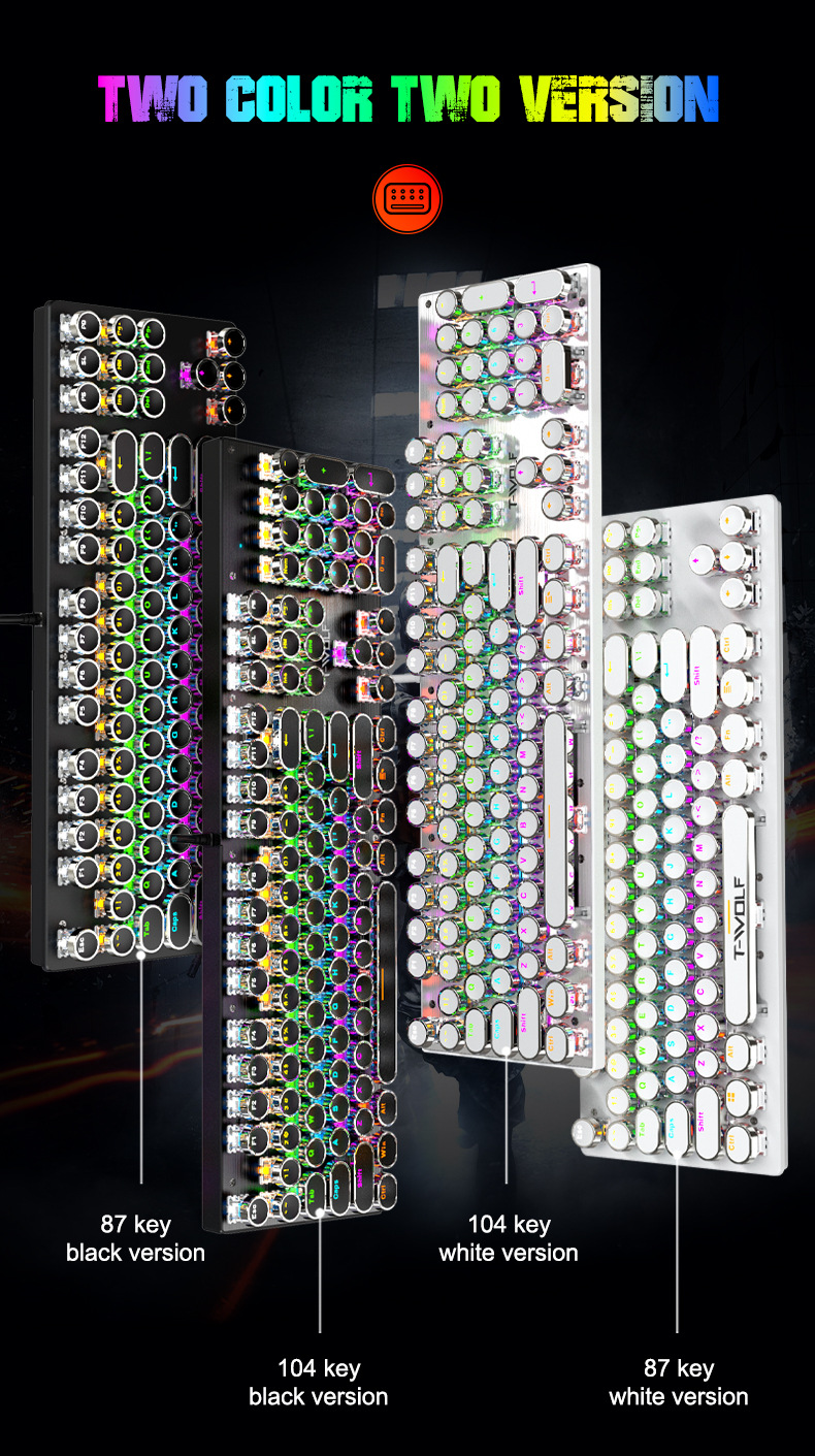 T-WOLF 천둥 울프 T75 기계 키보드 E-스포츠 게임 금속 패널 펑크 레트로 라운드 키보드 러시아어 한국어스토어 가기
