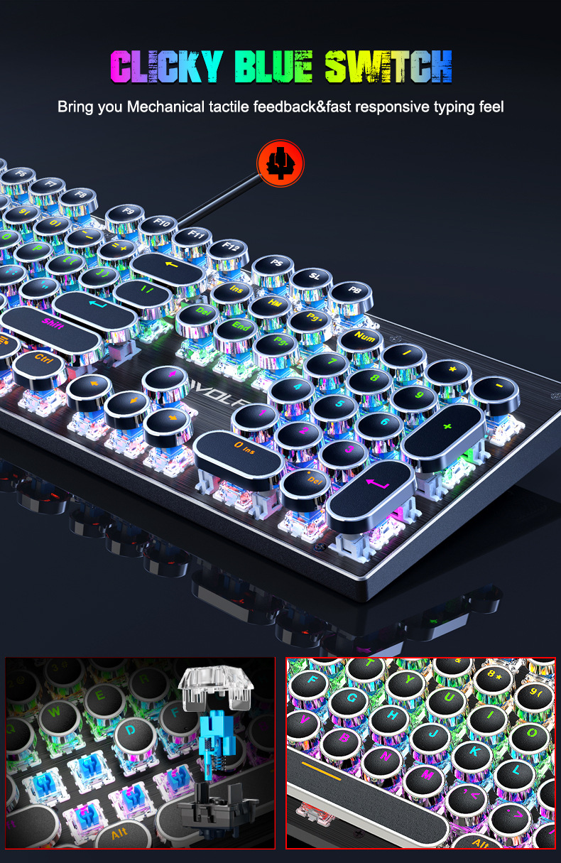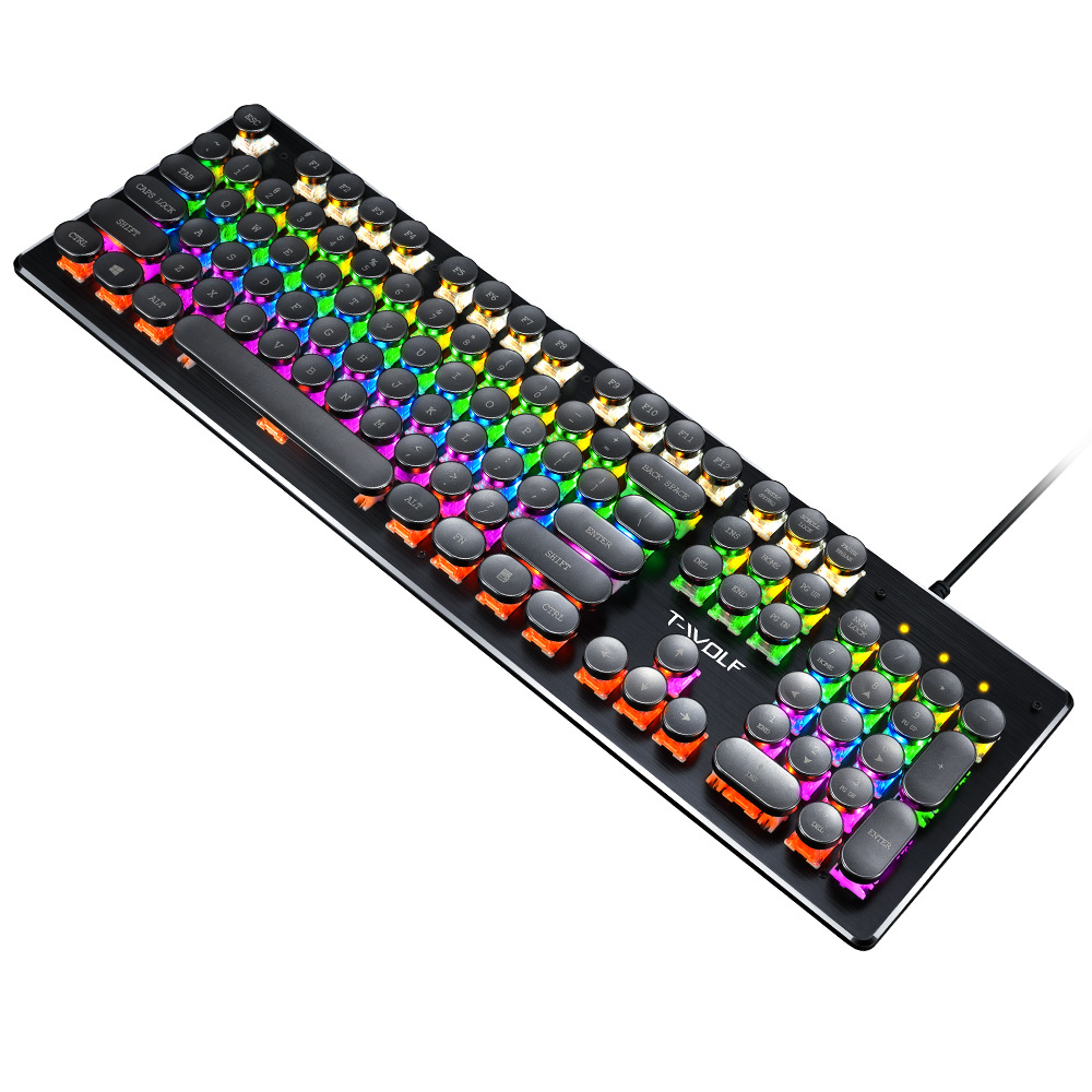 T-WOLF 천둥 울프 T75 기계 키보드 E-스포츠 게임 금속 패널 펑크 레트로 라운드 키보드 러시아어 한국어