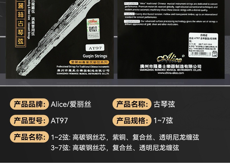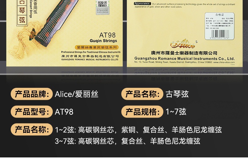 Alice Alice AT98 guqin 현 8 개 세트 전체 현 스틸 와이어 나일론 녹 방지 guqin 현스토어 가기