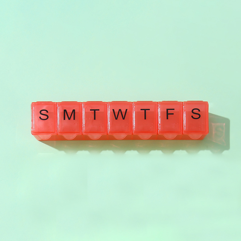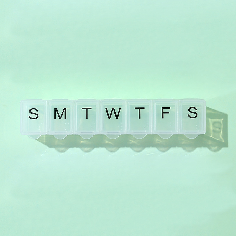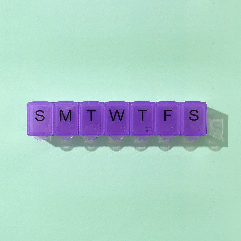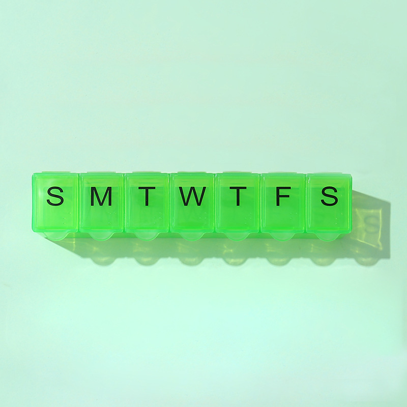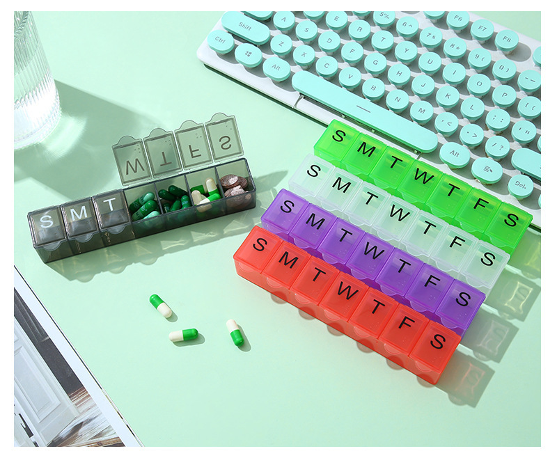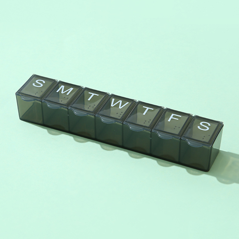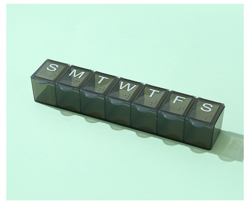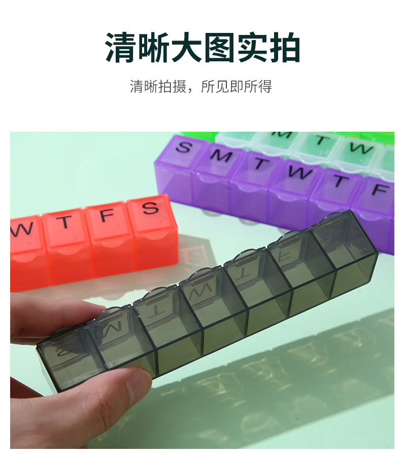 7 그리드 알약 상자 휴대용 별도의 저장 상자 일주일에 7 일 긴 점자 작은 알약 상자 인쇄 가능한 로고