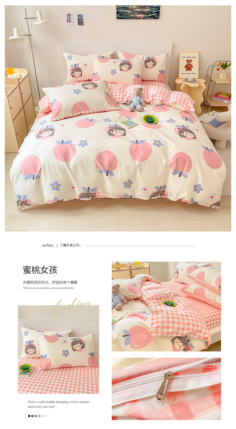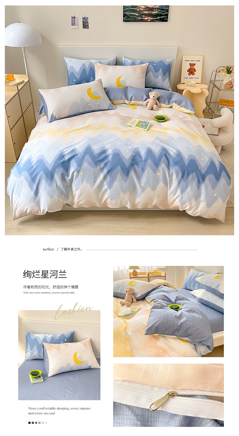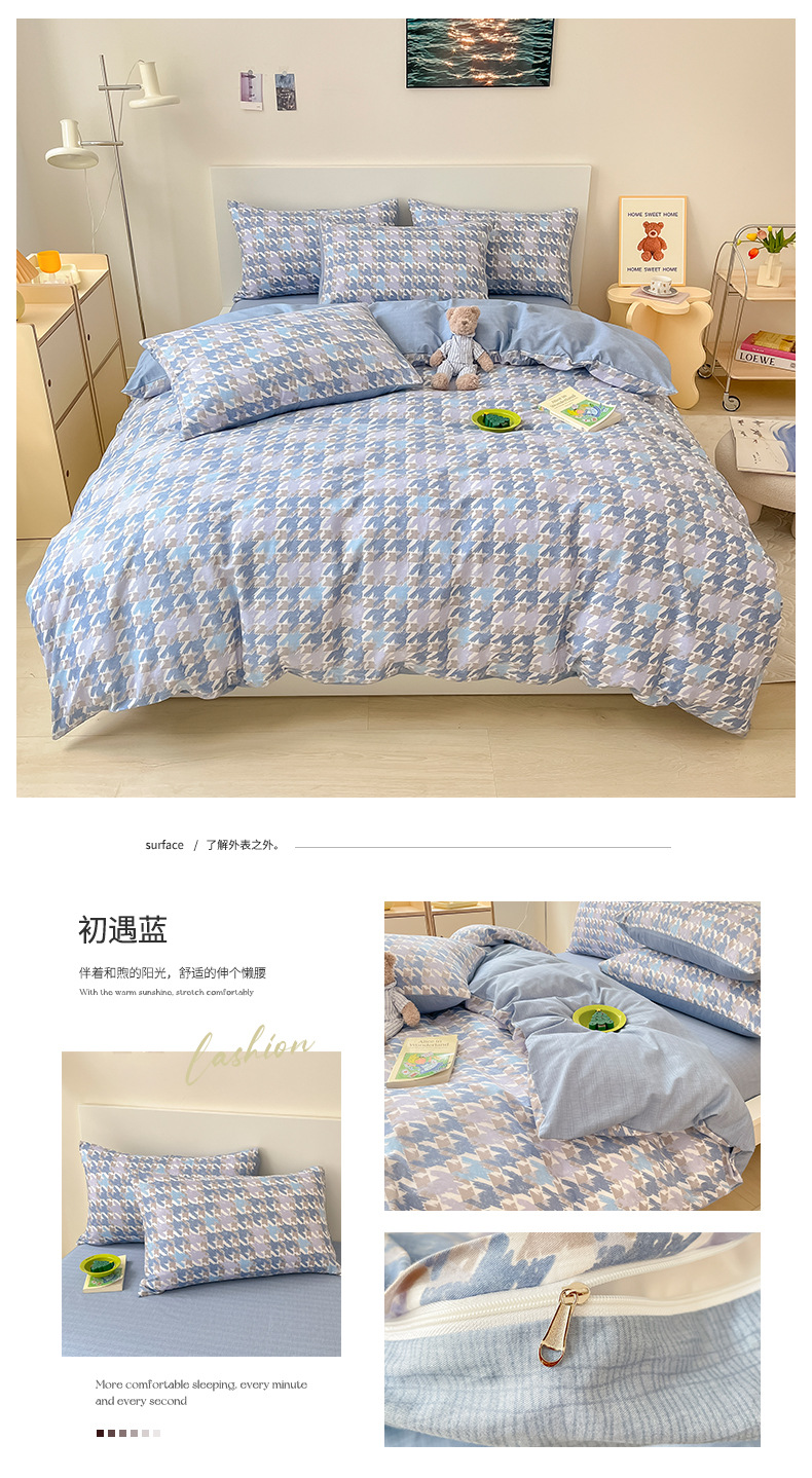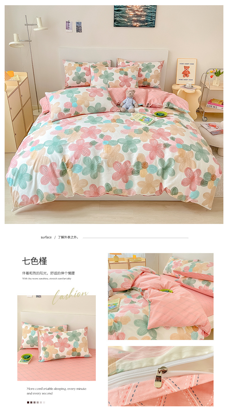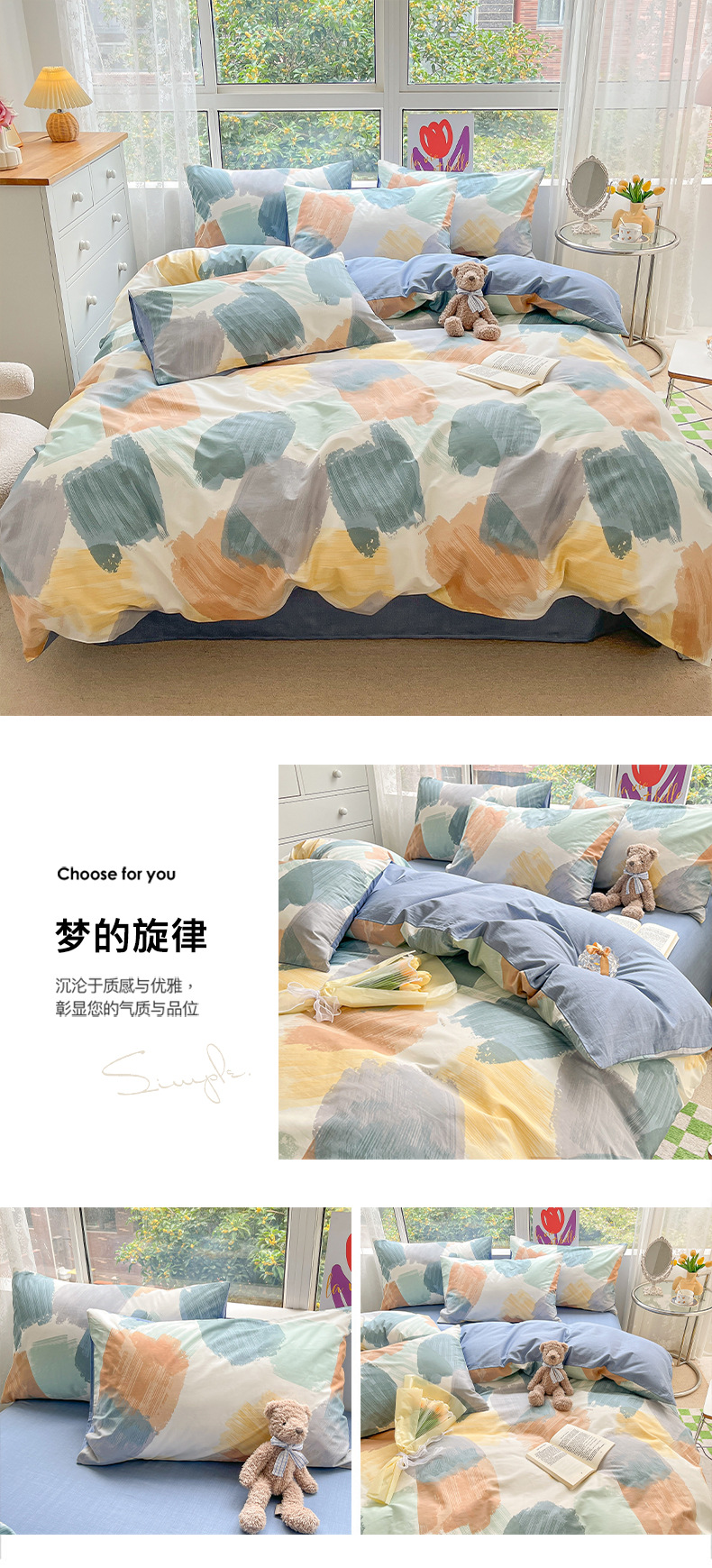 순면 4종 세트, 순면 침대 시트, 기숙사용 침대 시트 3종 세트, 침구 세트, 심플하고 신선한 디자인, 사계절 인기 상품, 라이브 방송 구매 대행스토어 가기
