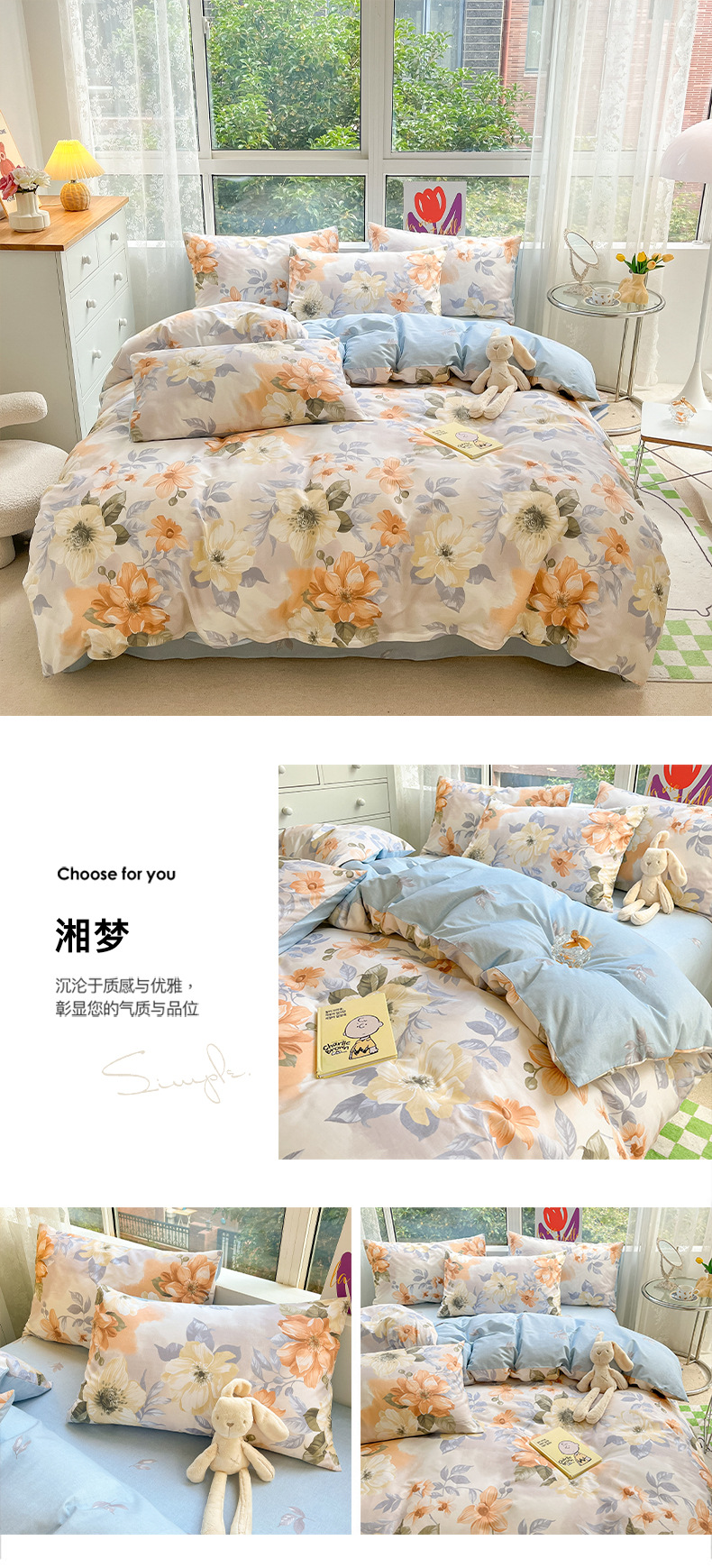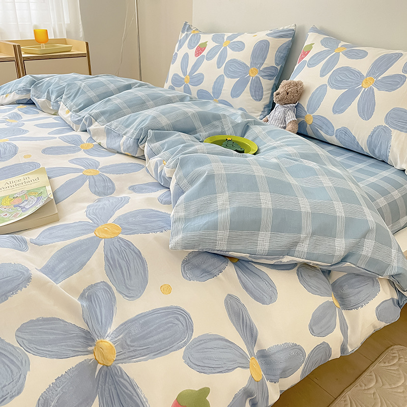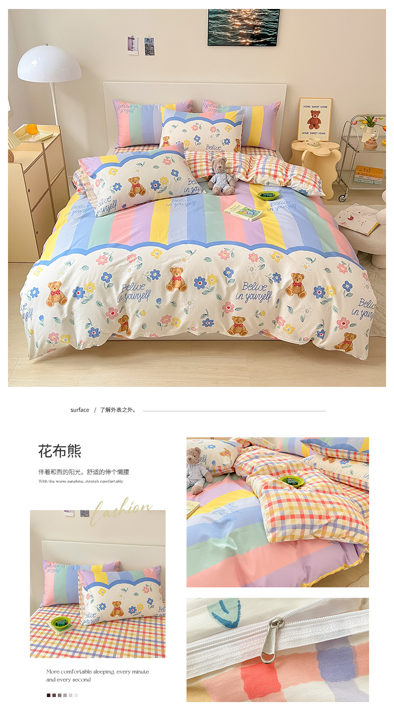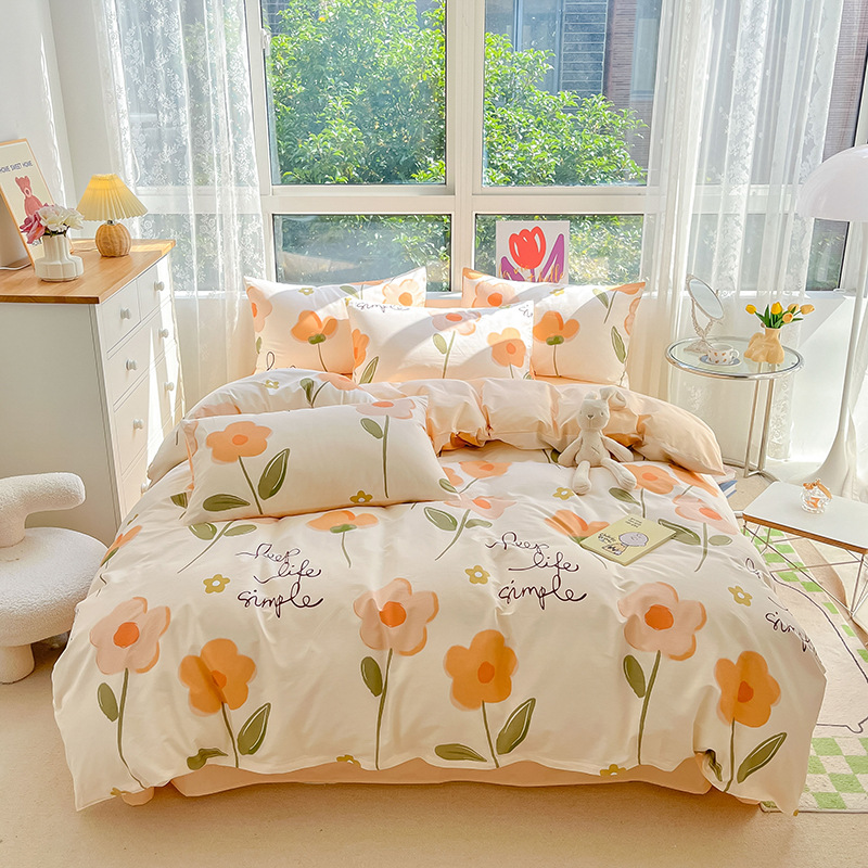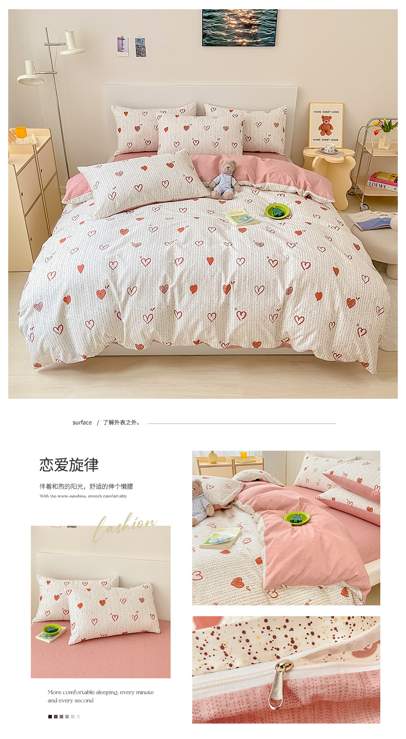 순면 4종 세트, 순면 침대 시트, 기숙사용 침대 시트 3종 세트, 침구 세트, 심플하고 신선한 디자인, 사계절 인기 상품, 라이브 방송 구매 대행스토어 가기