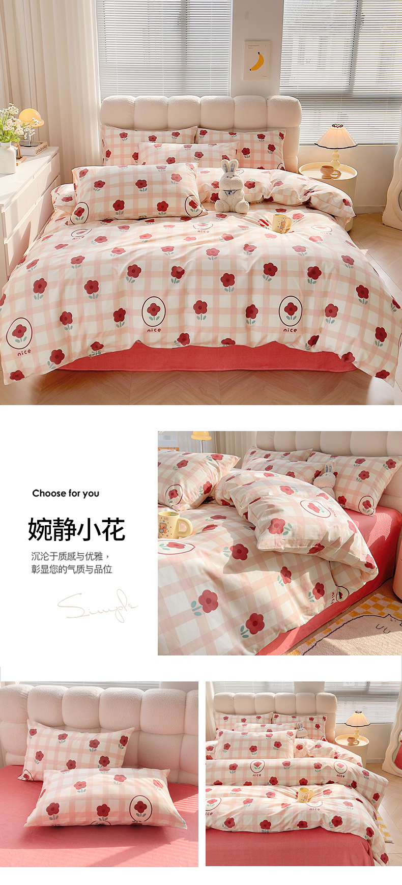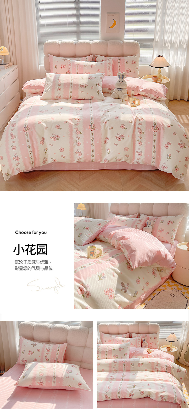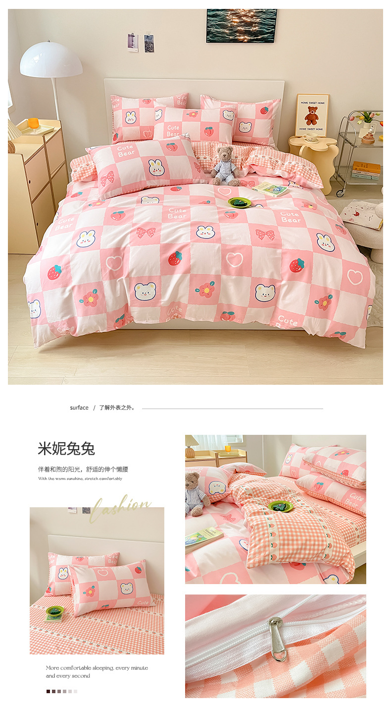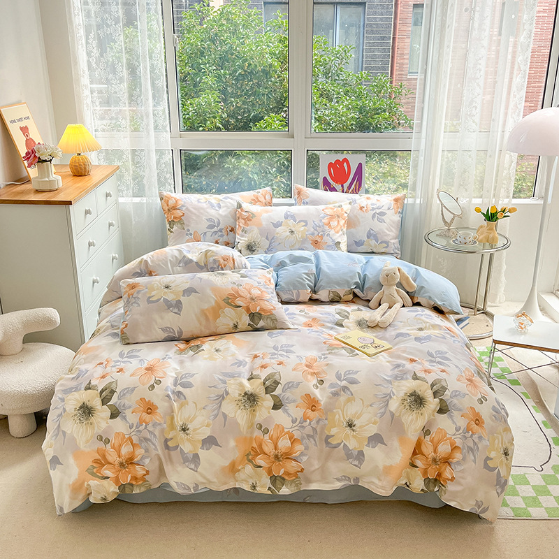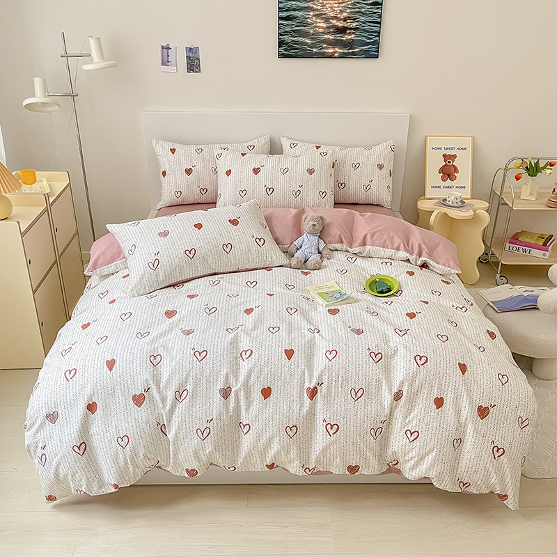 순면 4종 세트, 순면 침대 시트, 기숙사용 침대 시트 3종 세트, 침구 세트, 심플하고 신선한 디자인, 사계절 인기 상품, 라이브 방송 구매 대행스토어 가기