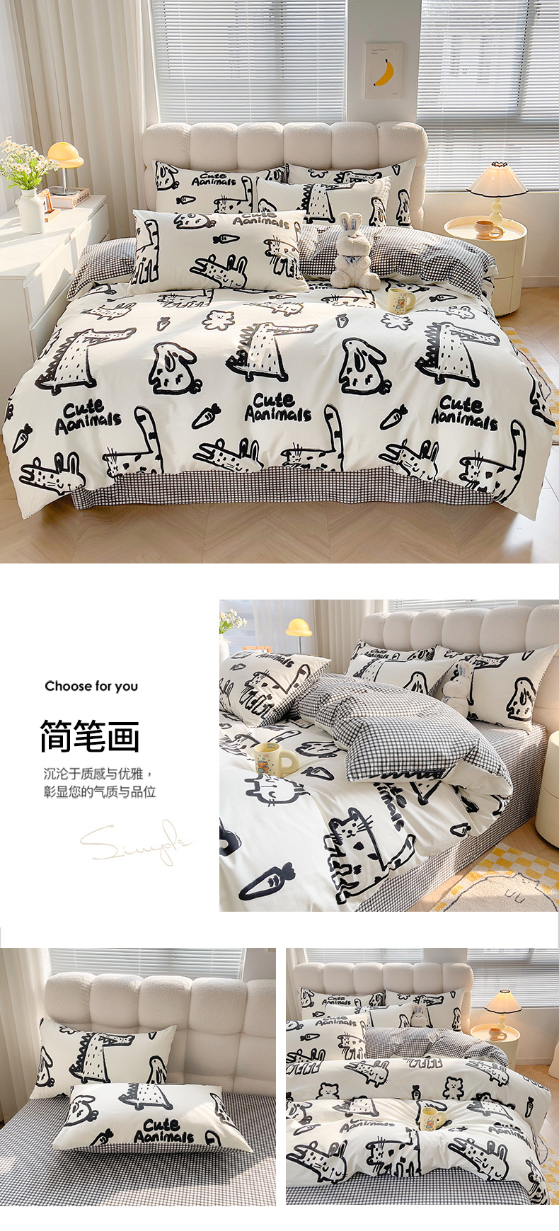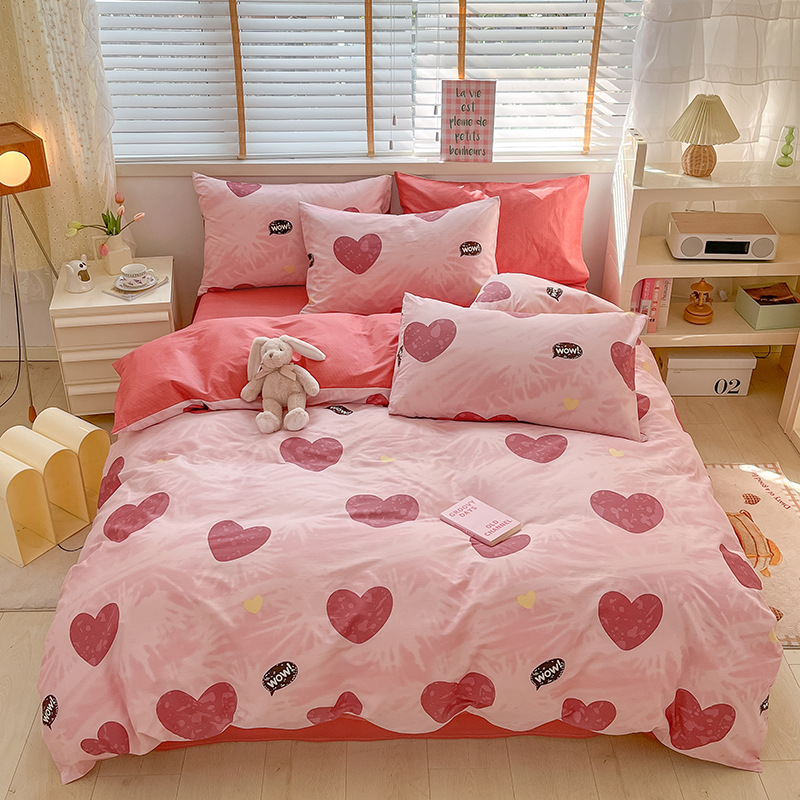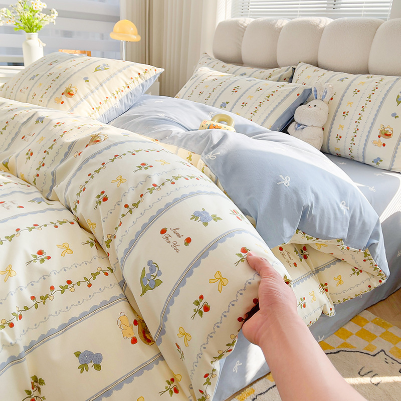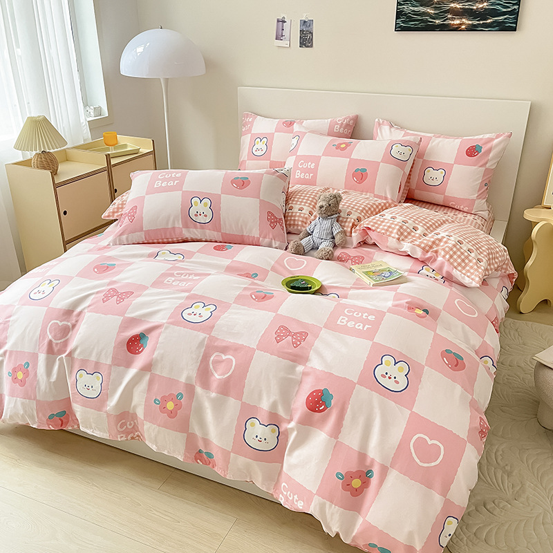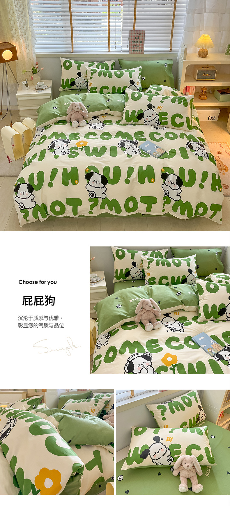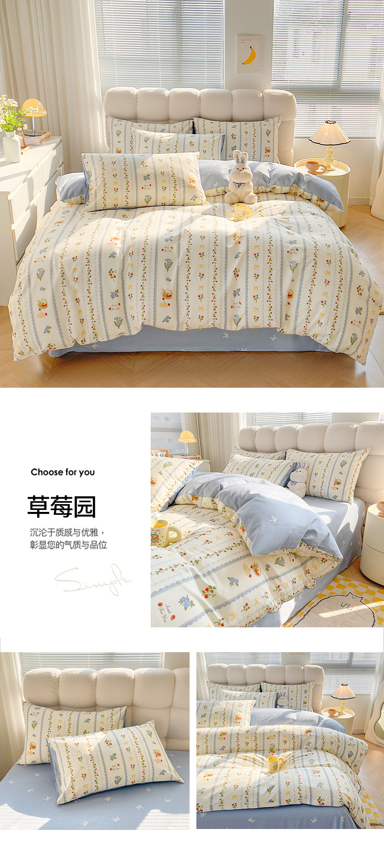 순면 4종 세트, 순면 침대 시트, 기숙사용 침대 시트 3종 세트, 침구 세트, 심플하고 신선한 디자인, 사계절 인기 상품, 라이브 방송 구매 대행스토어 가기