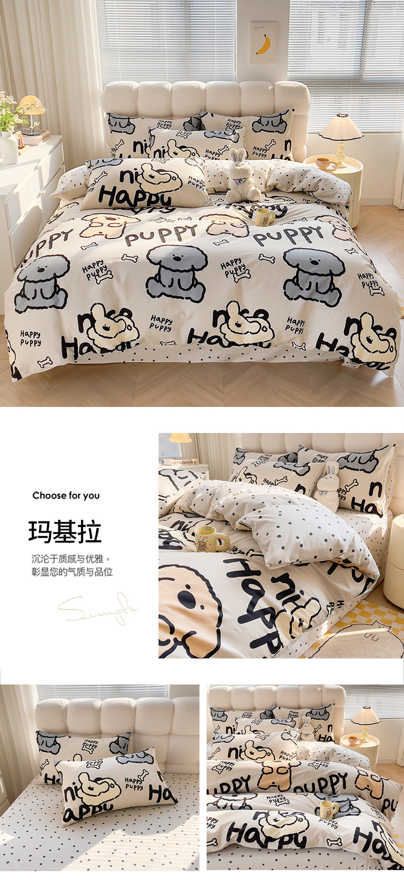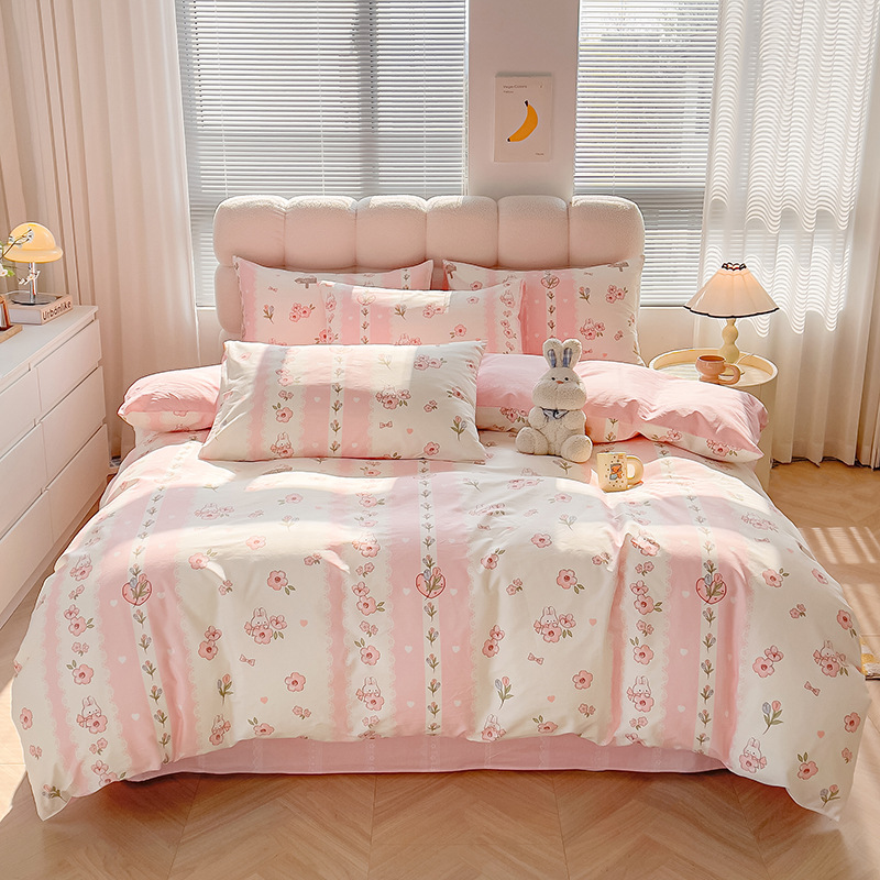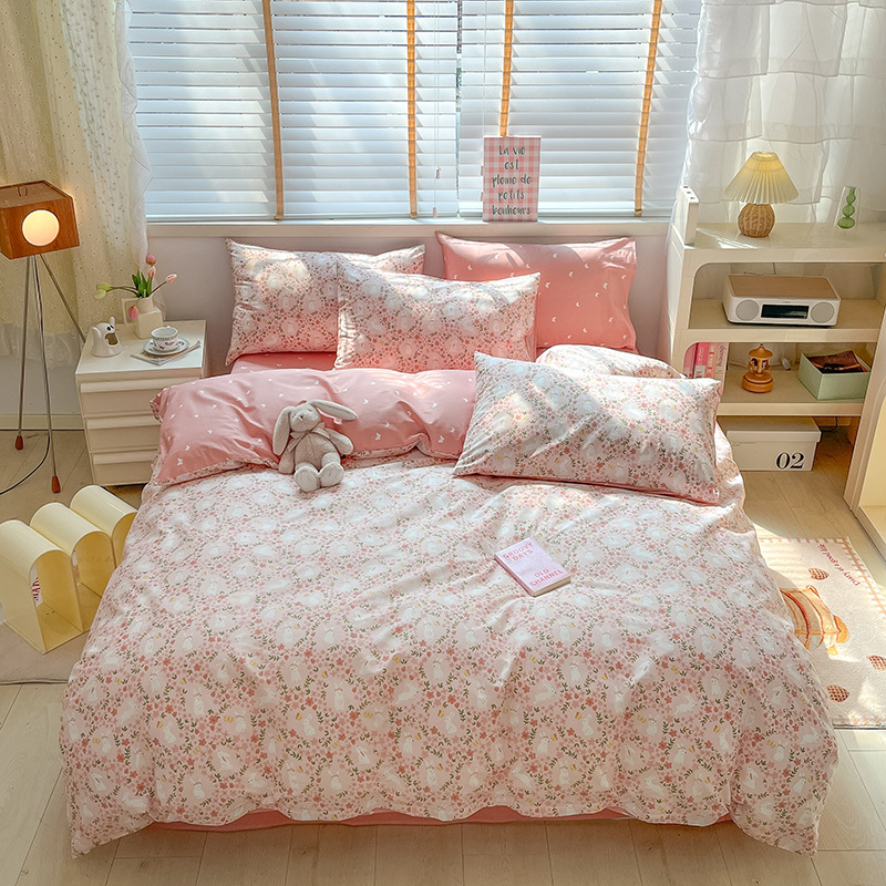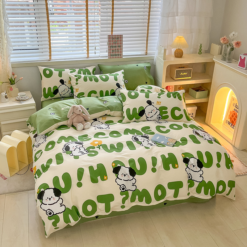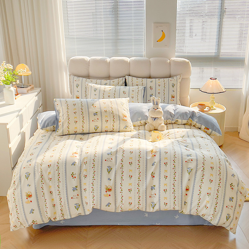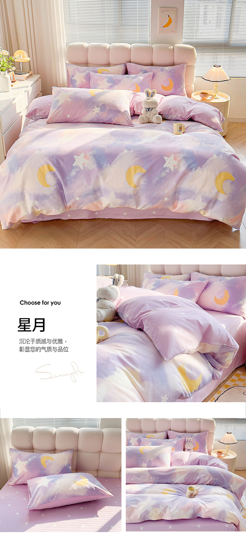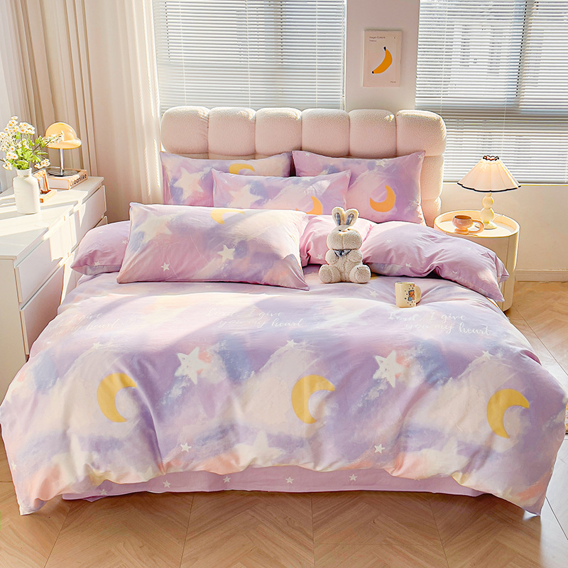 순면 4종 세트, 순면 침대 시트, 기숙사용 침대 시트 3종 세트, 침구 세트, 심플하고 신선한 디자인, 사계절 인기 상품, 라이브 방송 구매 대행스토어 가기