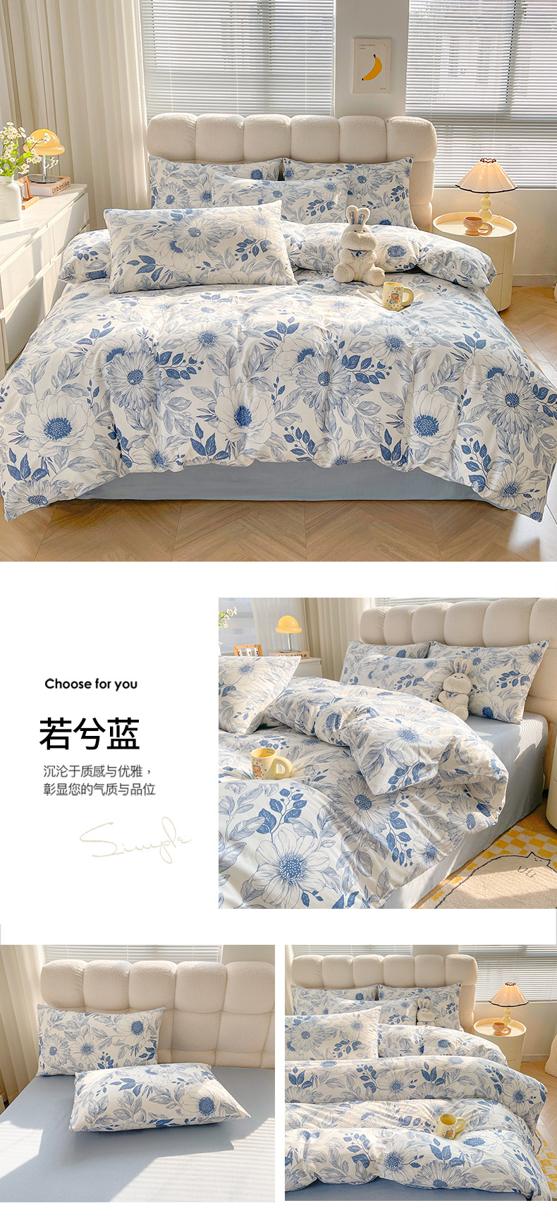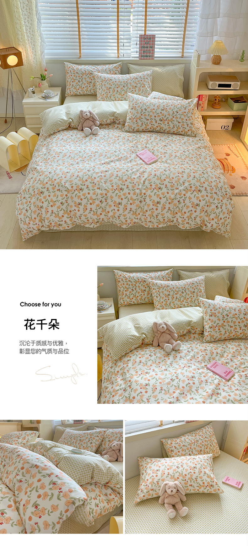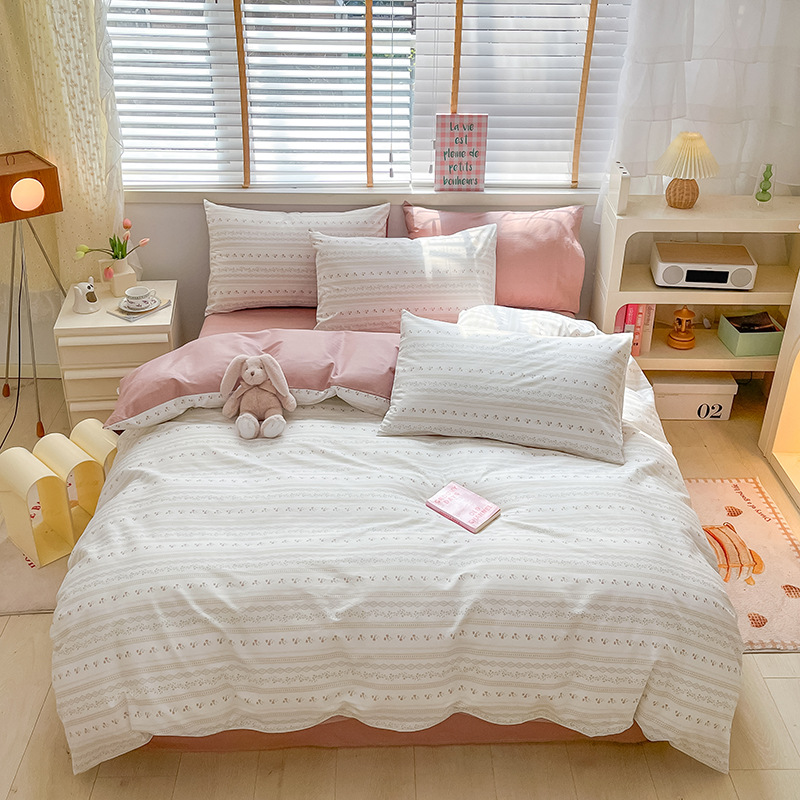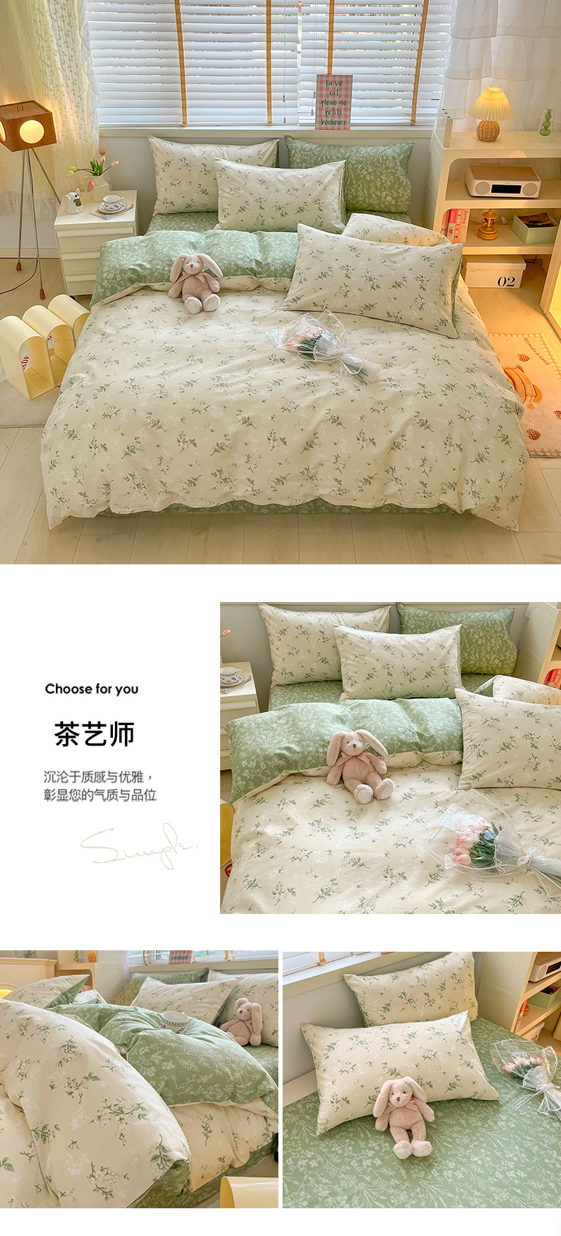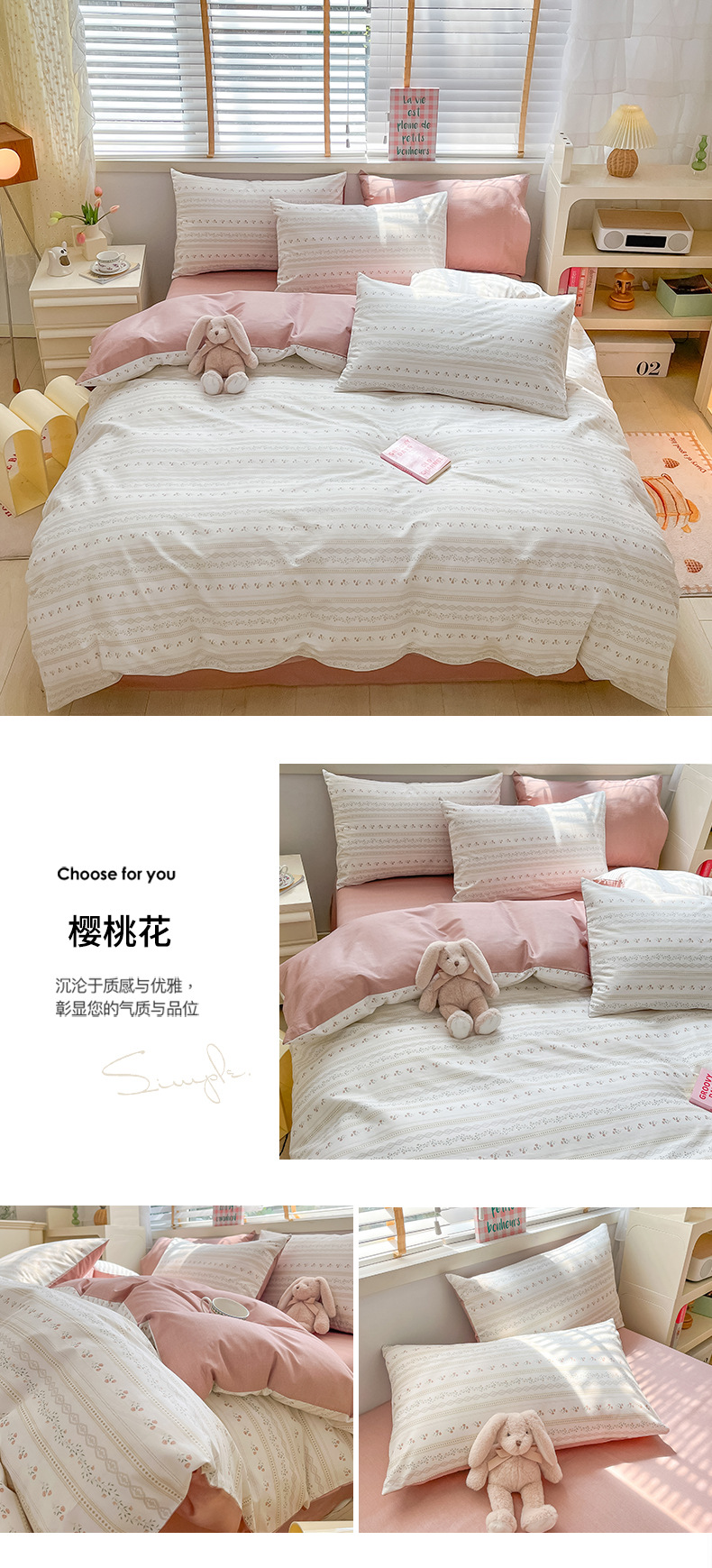 순면 4종 세트, 순면 침대 시트, 기숙사용 침대 시트 3종 세트, 침구 세트, 심플하고 신선한 디자인, 사계절 인기 상품, 라이브 방송 구매 대행