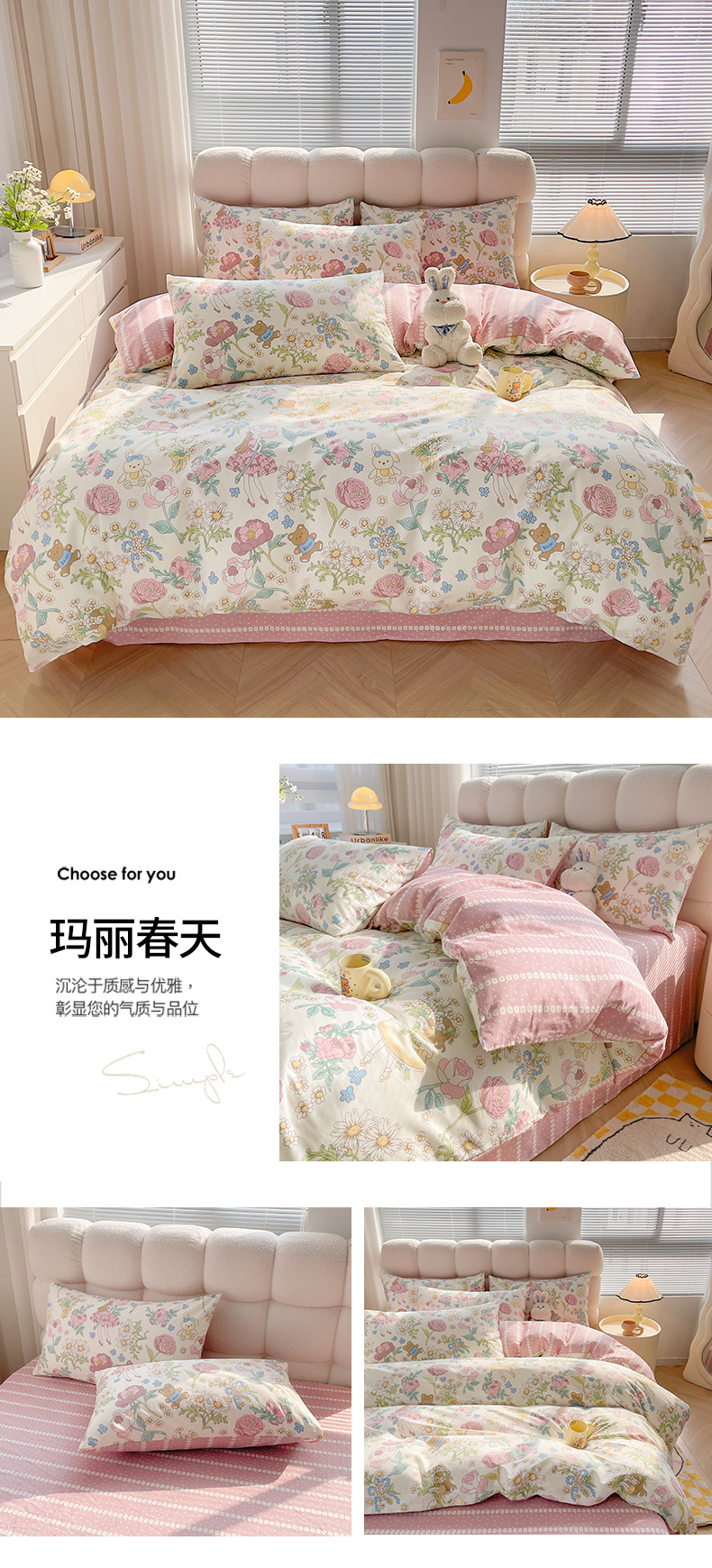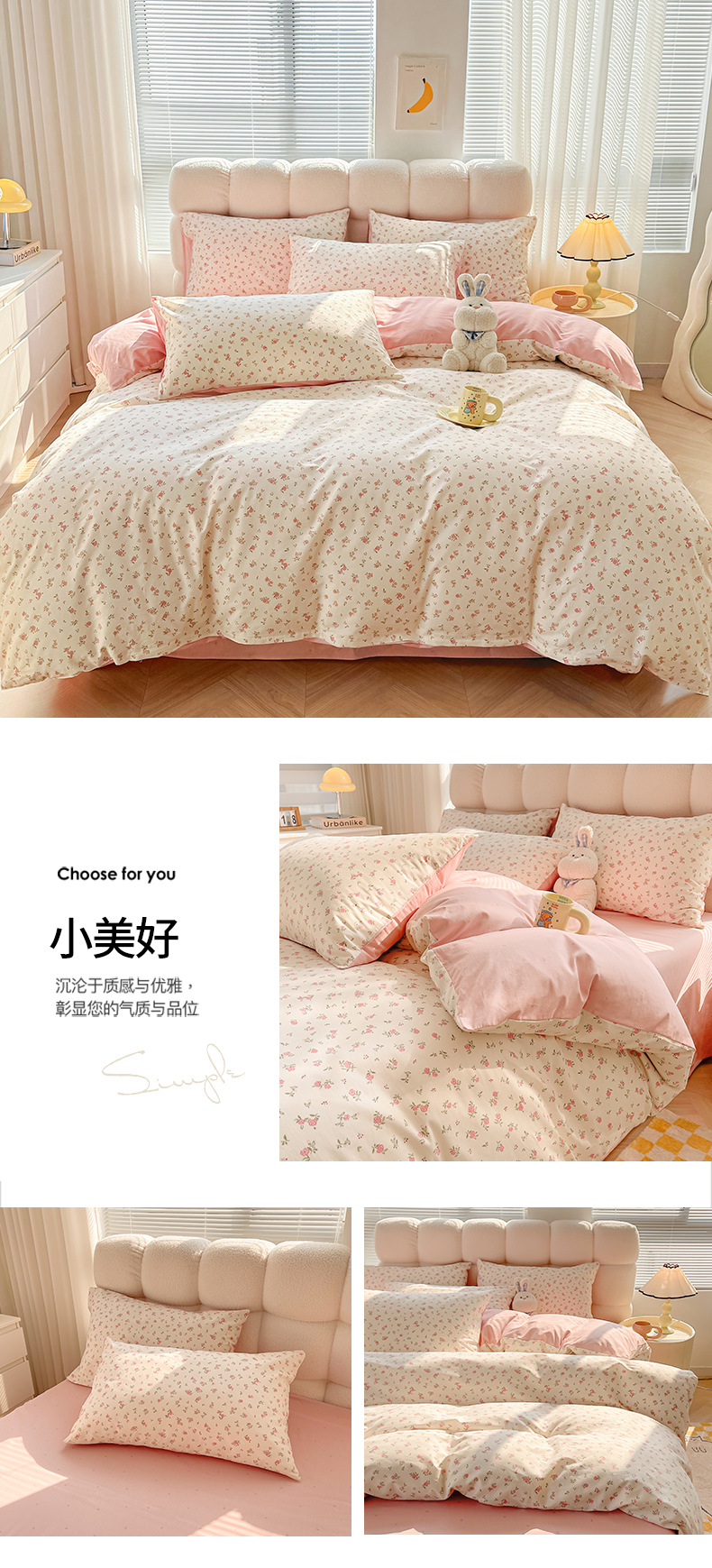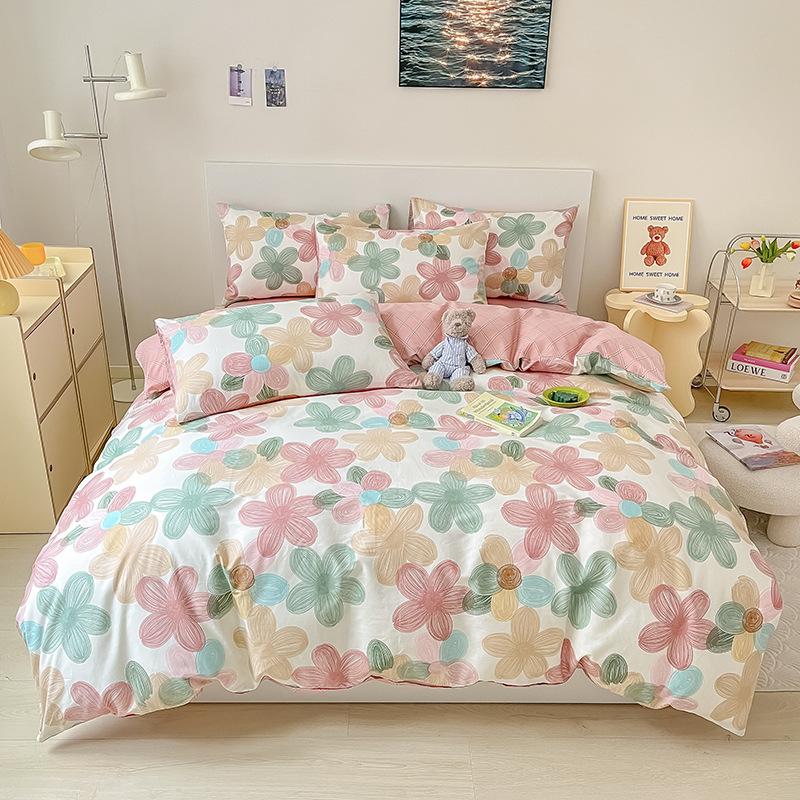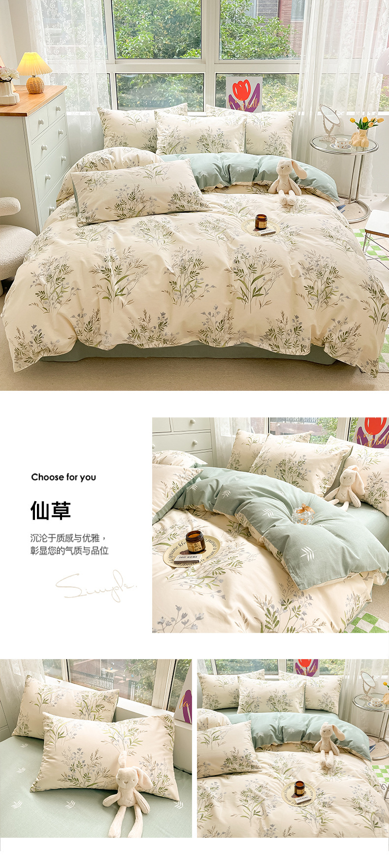 순면 4종 세트, 순면 침대 시트, 기숙사용 침대 시트 3종 세트, 침구 세트, 심플하고 신선한 디자인, 사계절 인기 상품, 라이브 방송 구매 대행