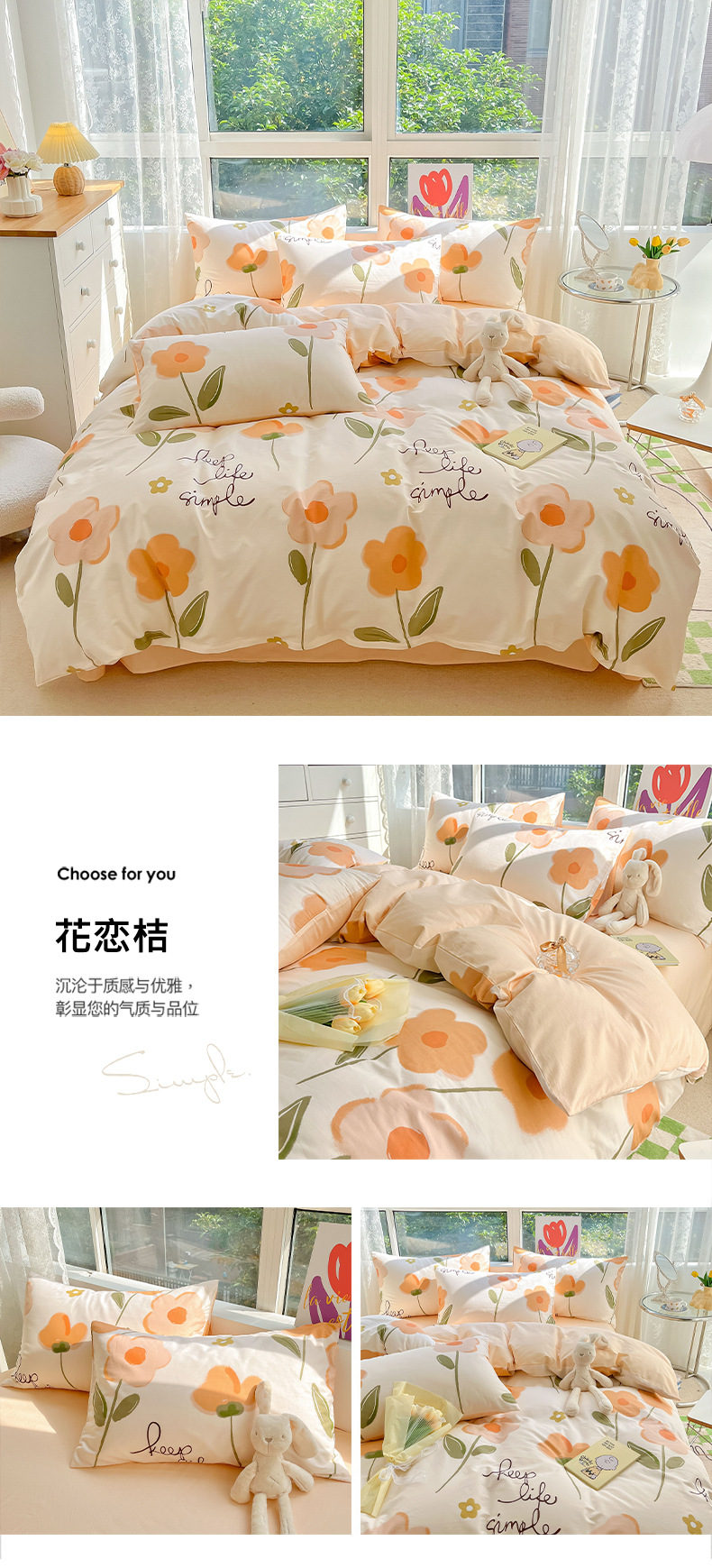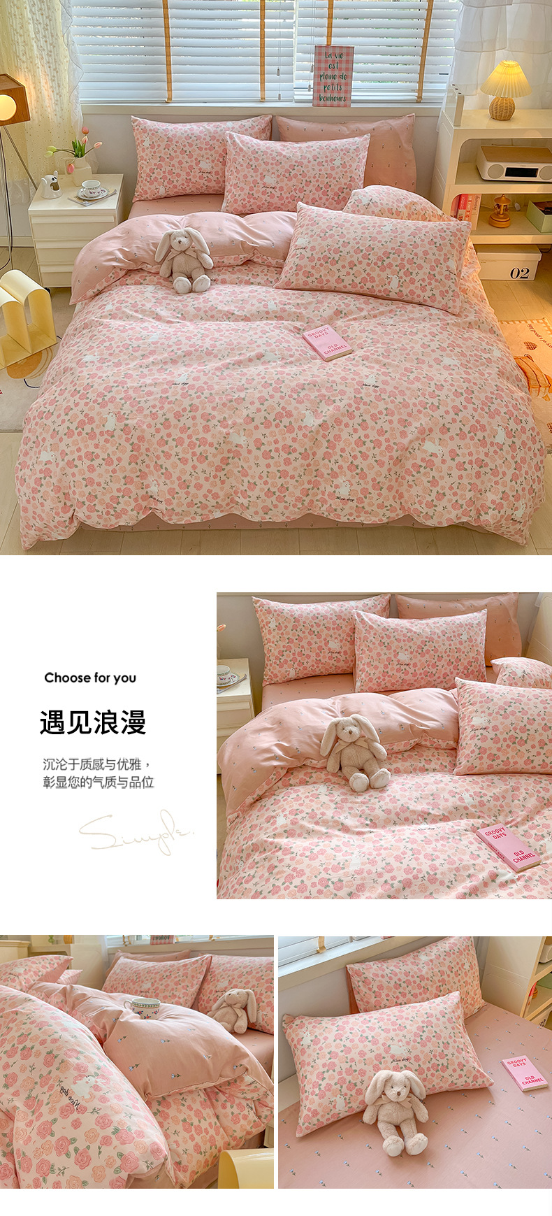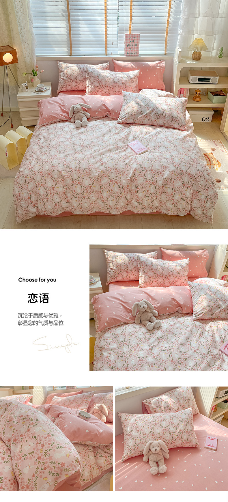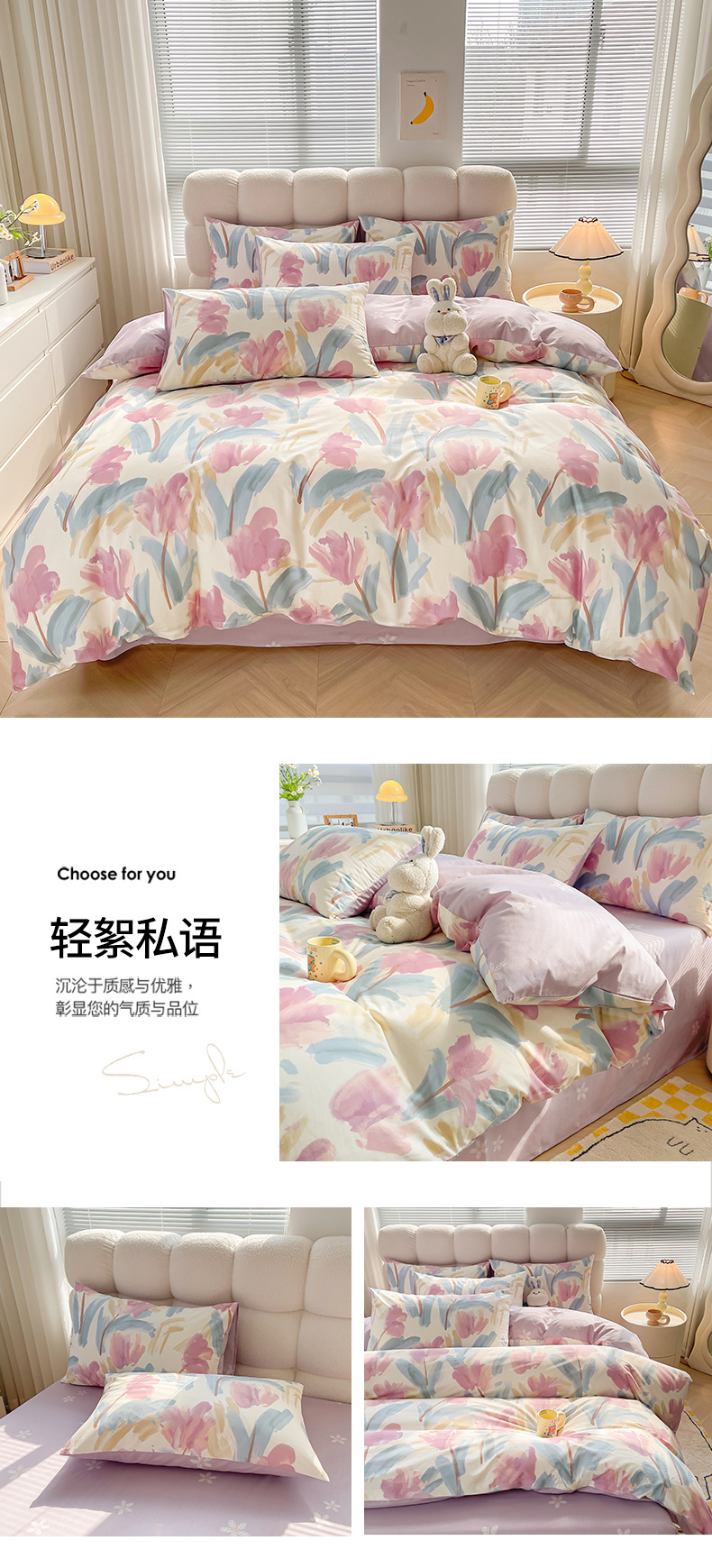 순면 4종 세트, 순면 침대 시트, 기숙사용 침대 시트 3종 세트, 침구 세트, 심플하고 신선한 디자인, 사계절 인기 상품, 라이브 방송 구매 대행