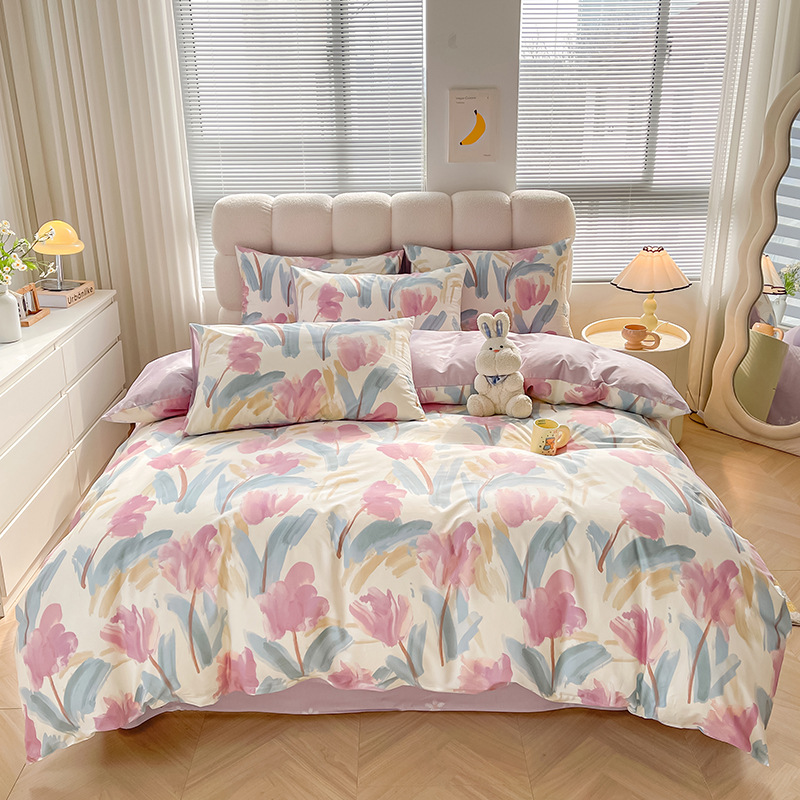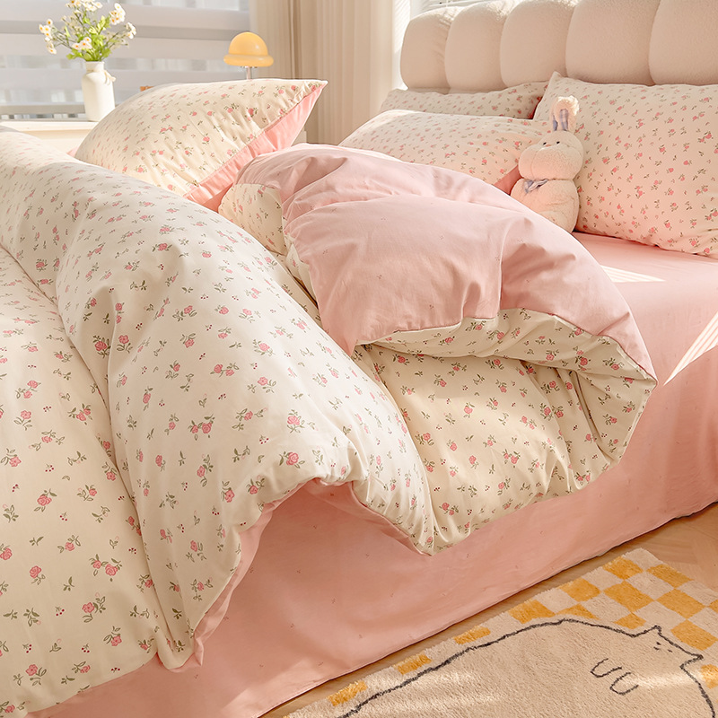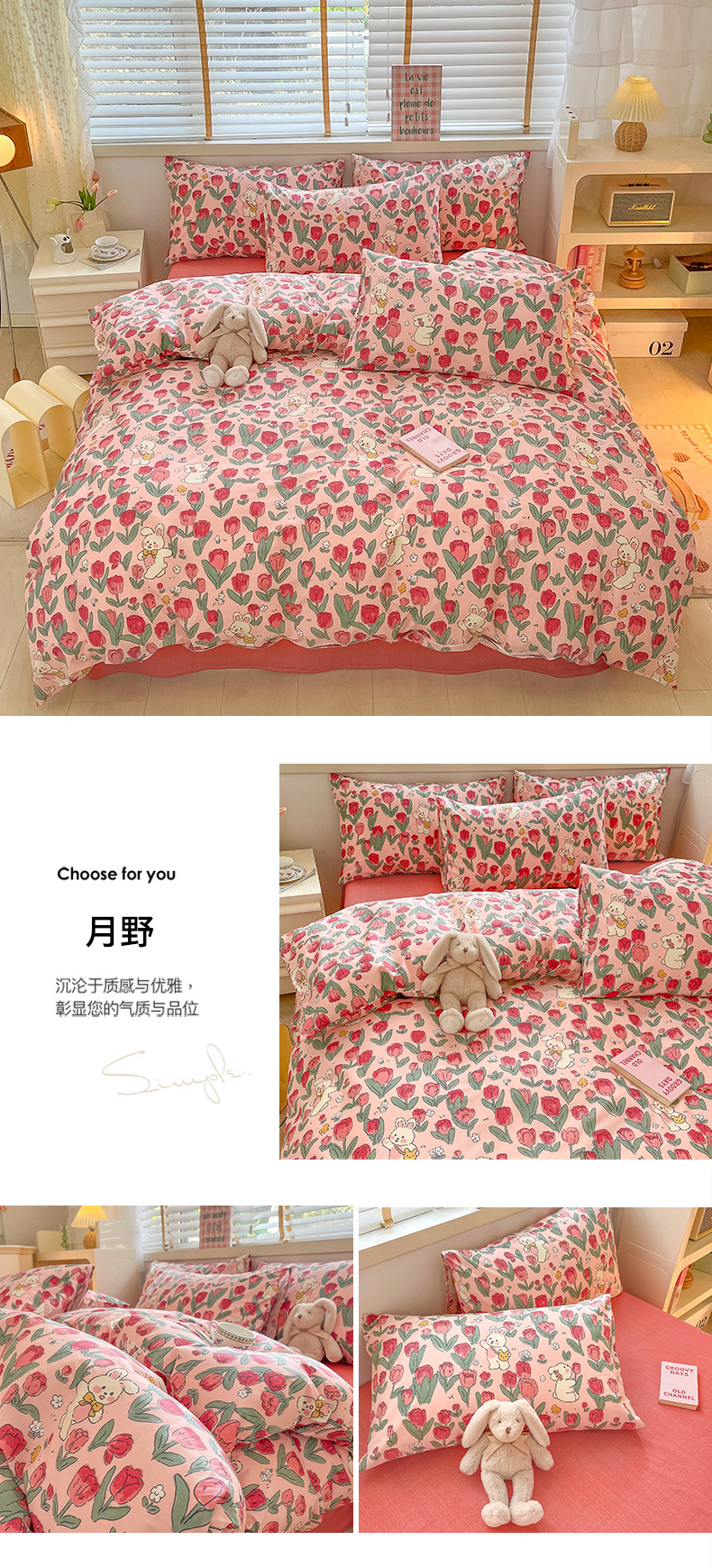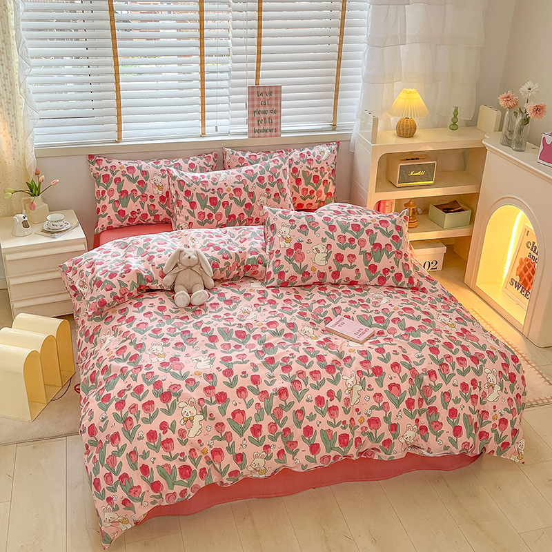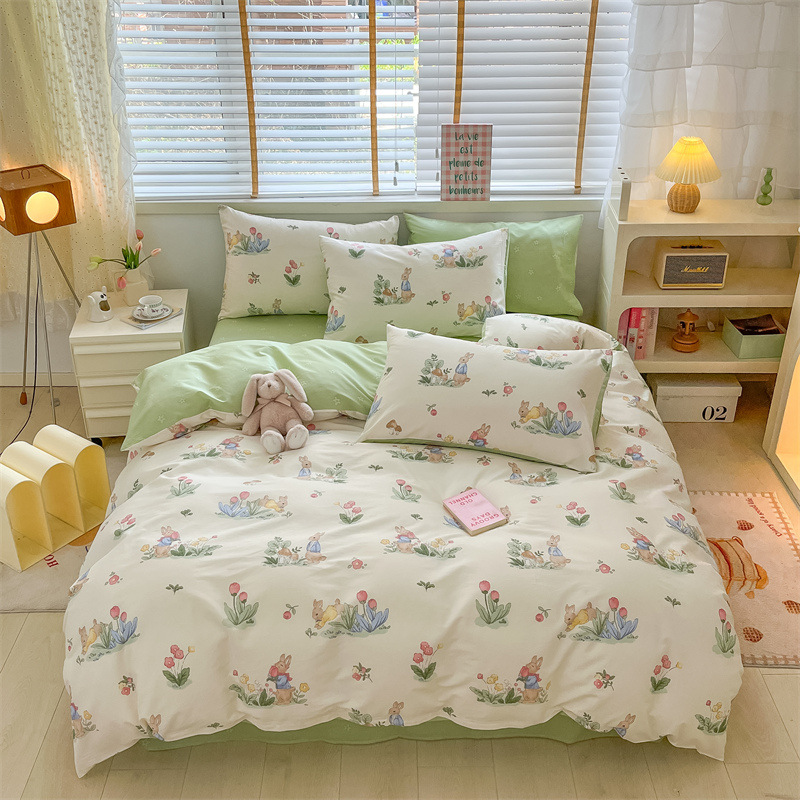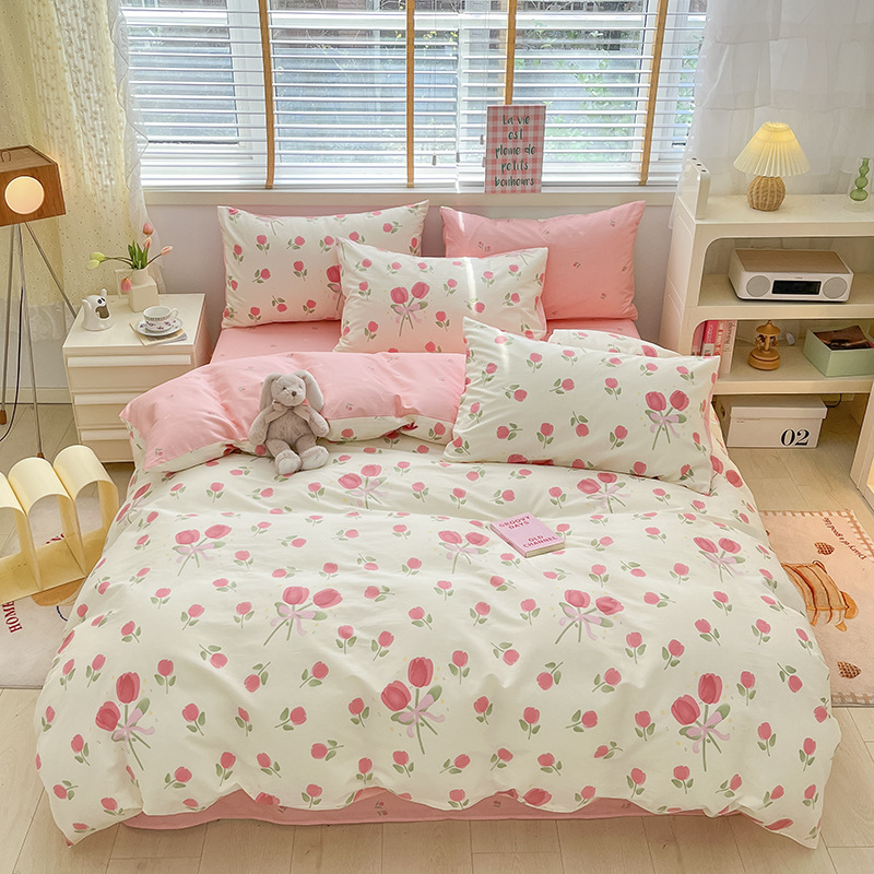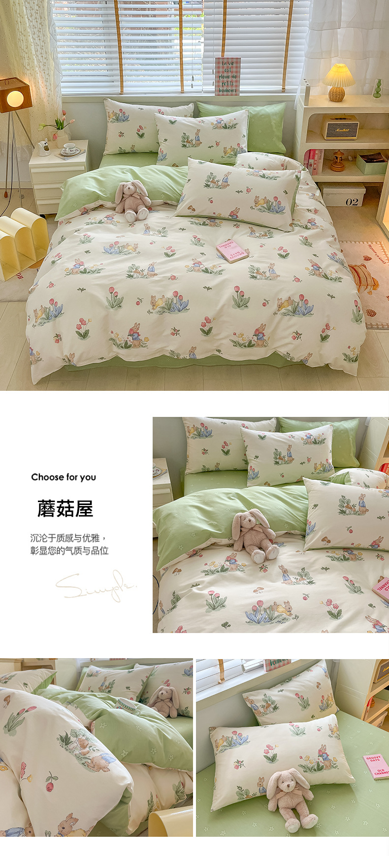 순면 4종 세트, 순면 침대 시트, 기숙사용 침대 시트 3종 세트, 침구 세트, 심플하고 신선한 디자인, 사계절 인기 상품, 라이브 방송 구매 대행