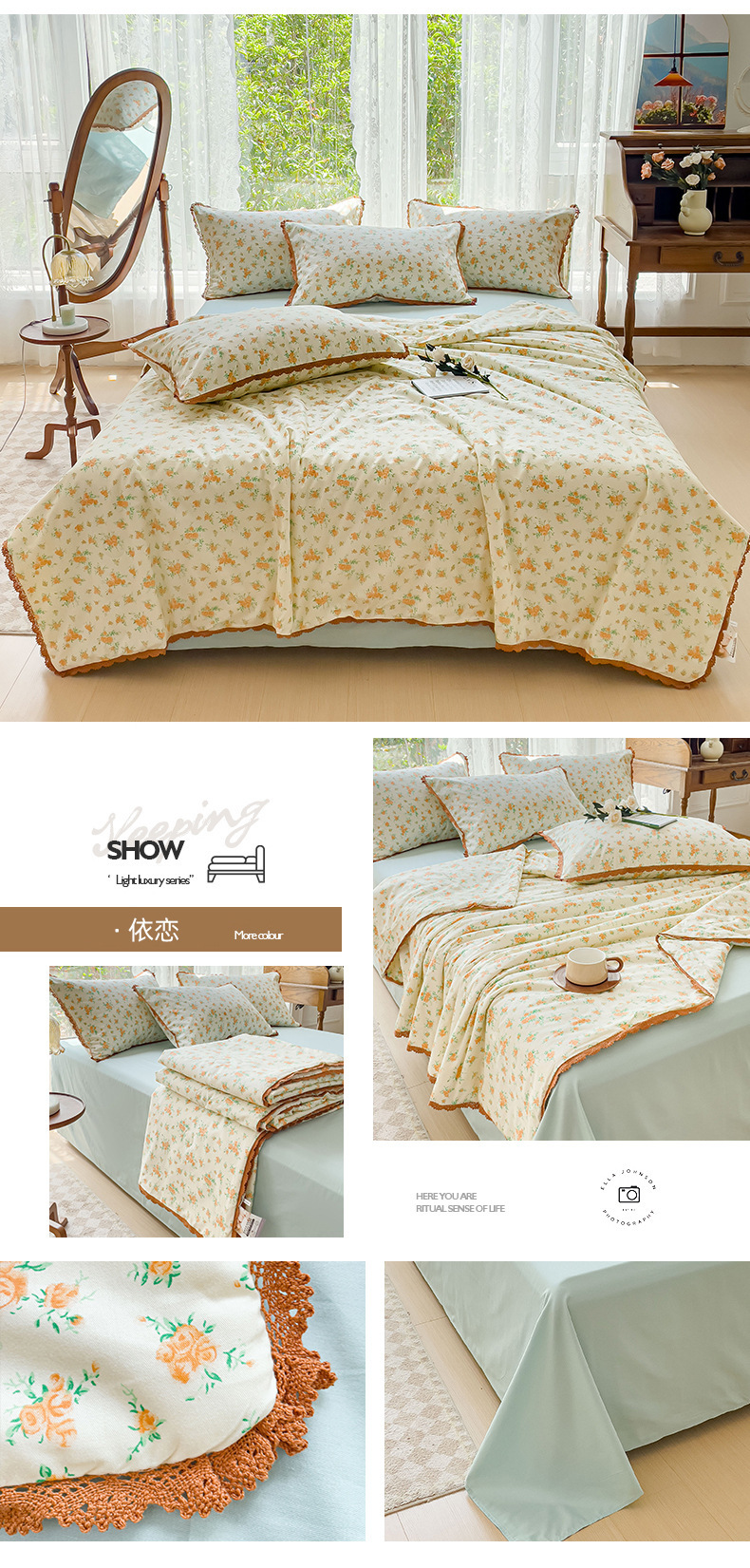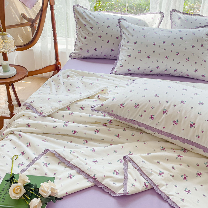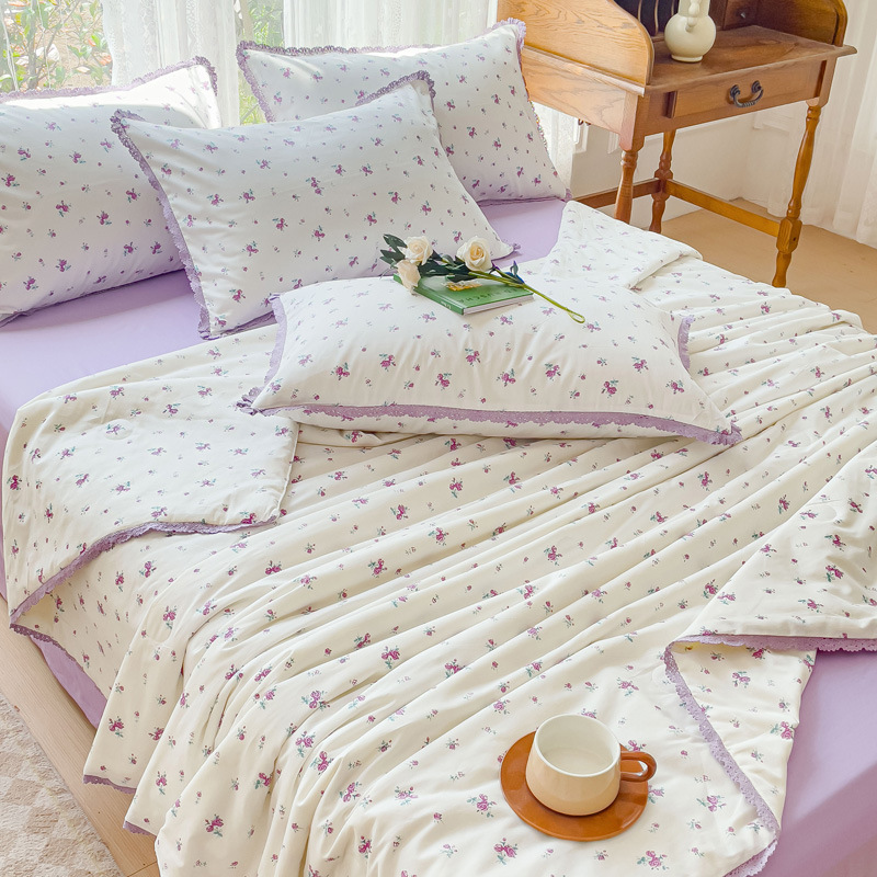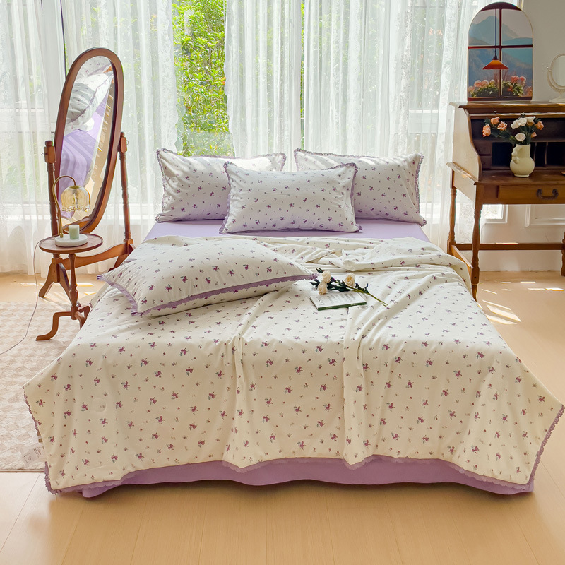 코튼 여름 시원한 이불 4 조각 한국 레이스 콩 섬유 에어컨 이불 도매 여름면 얇은 이불