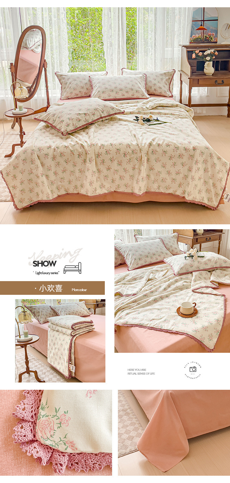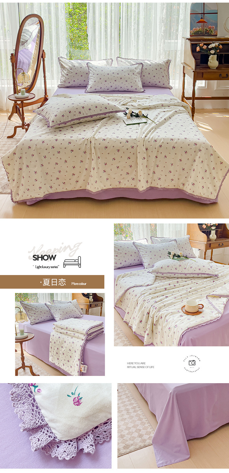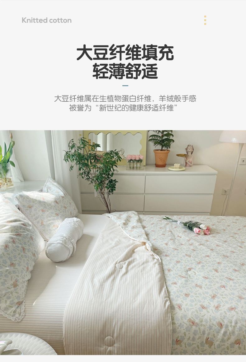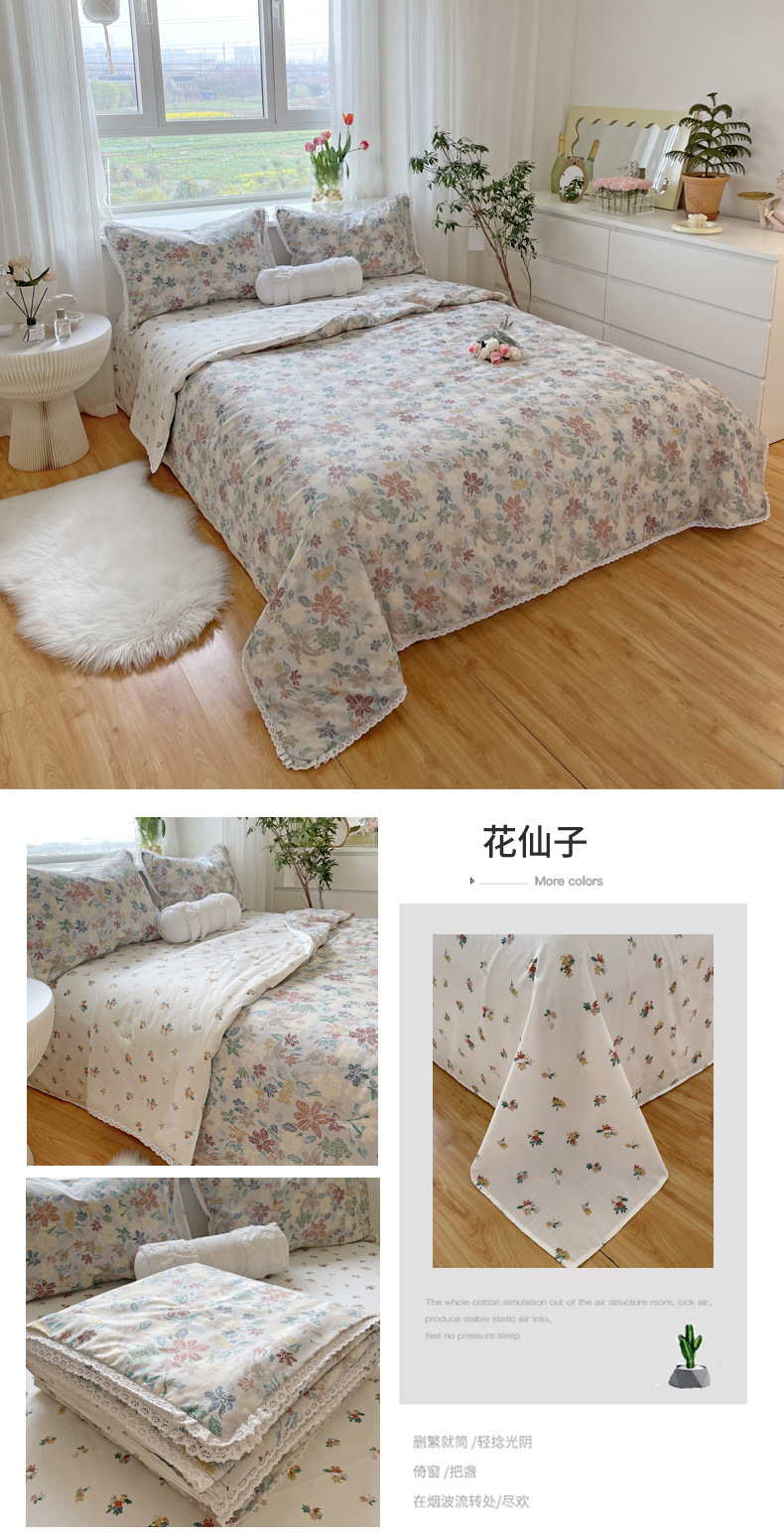 코튼 여름 시원한 이불 4 조각 한국 레이스 콩 섬유 에어컨 이불 도매 여름면 얇은 이불스토어 가기