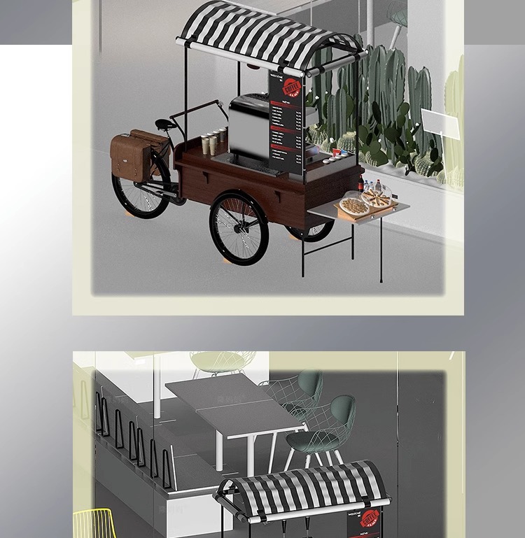 빈티지 판매 부서 식당차 디저트 케이크 웨딩 아이언 세발 자전거 호텔 경치 좋은 지역 커피 와인 디스플레이 식당 차스토어 가기