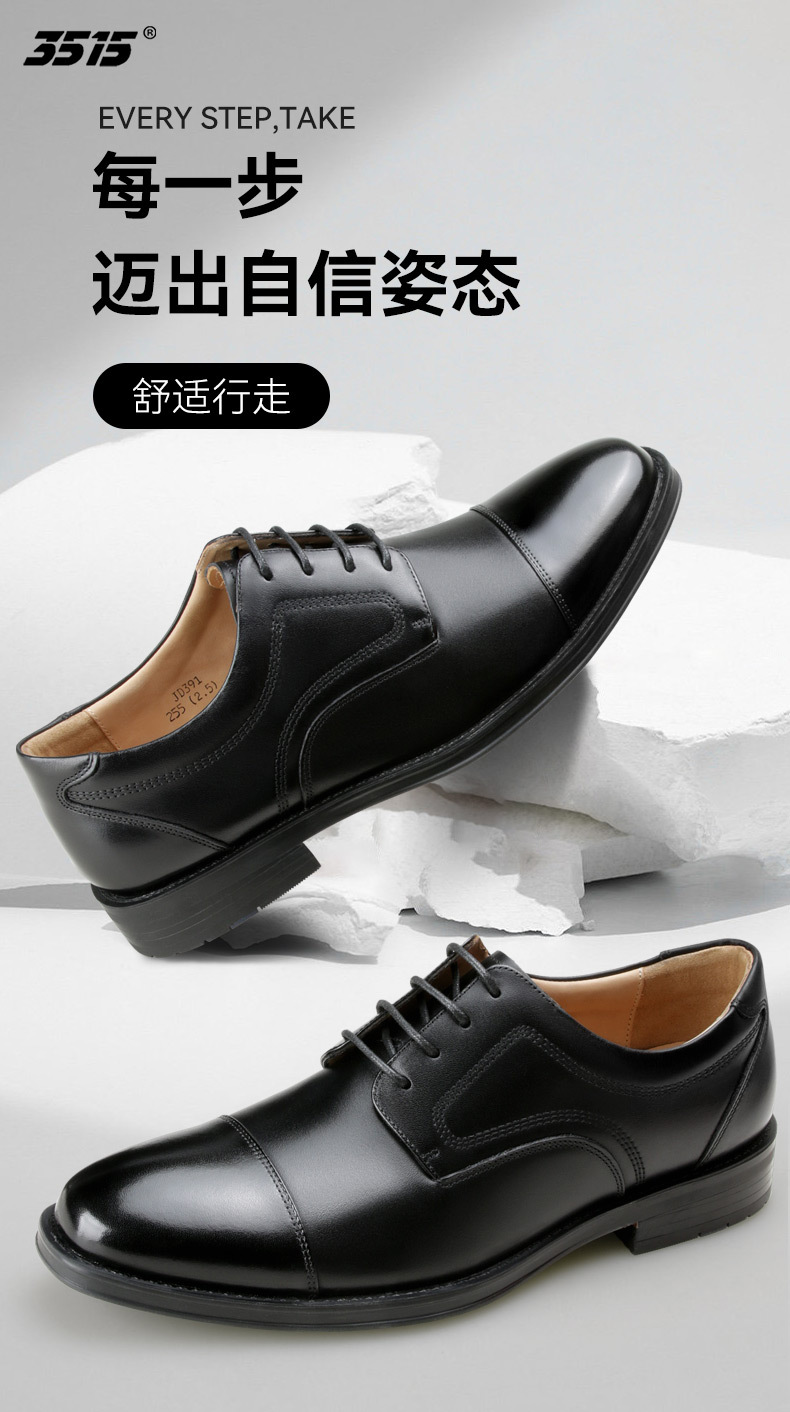Jihua 3515 강한 남성 3 조인트 캐주얼 가죽 신발 봄과 가을 비즈니스 공식 가죽 신발 남성용 블랙 신랑 가죽 신발스토어 가기