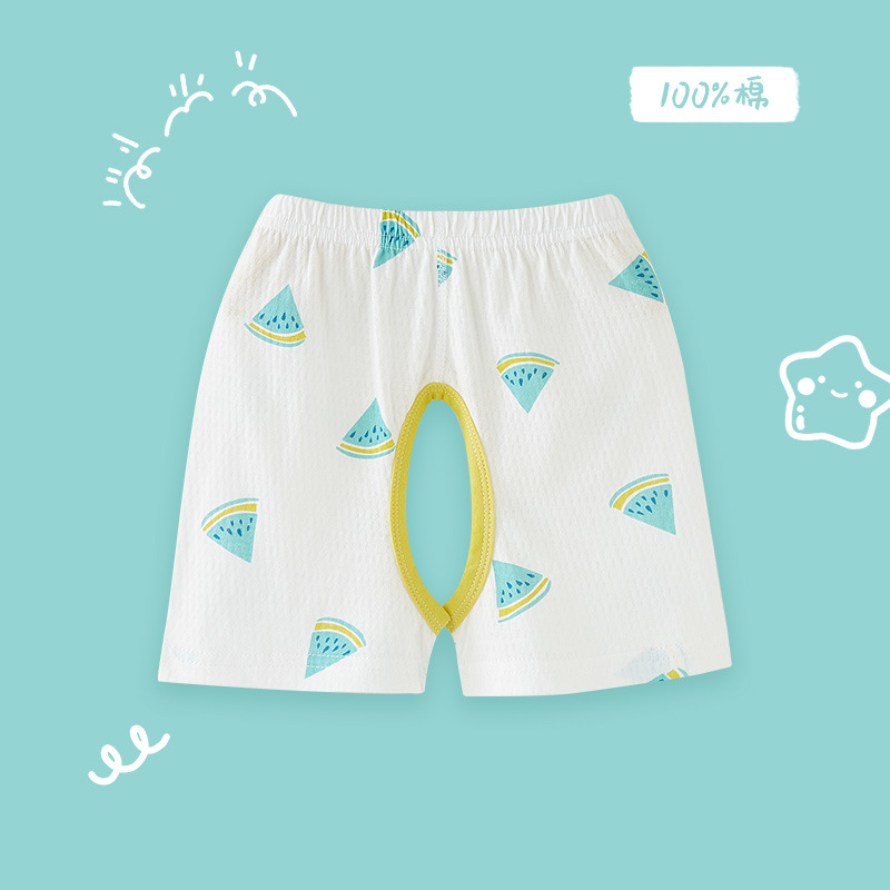 오픈 반바지 아기 소년의 오픈 가랑이 바지 여름 얇은 아기 소녀 반바지 순수한면 아우터 착용 다섯 번째 바지 어린이 캐주얼