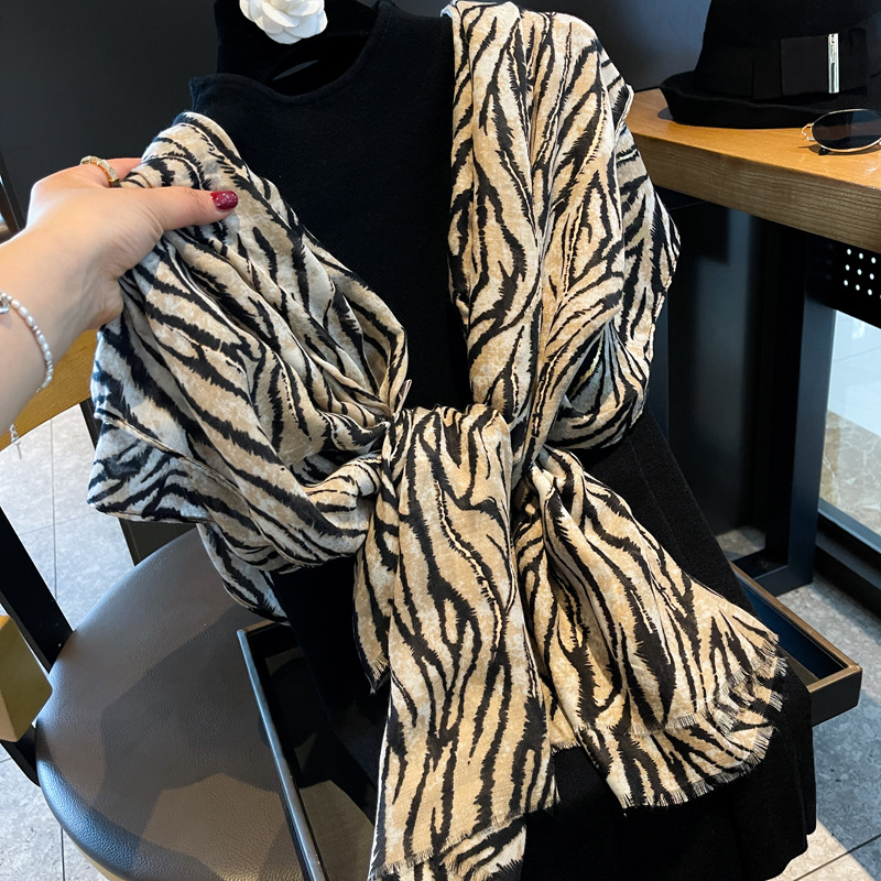 여성용 얇은면과 린넨 스카프 봄과 여름 한국 스타일 레오파드 무늬 다재다능한 긴 에어컨 어깨 목도리 여름 태양 보호 비치 타월