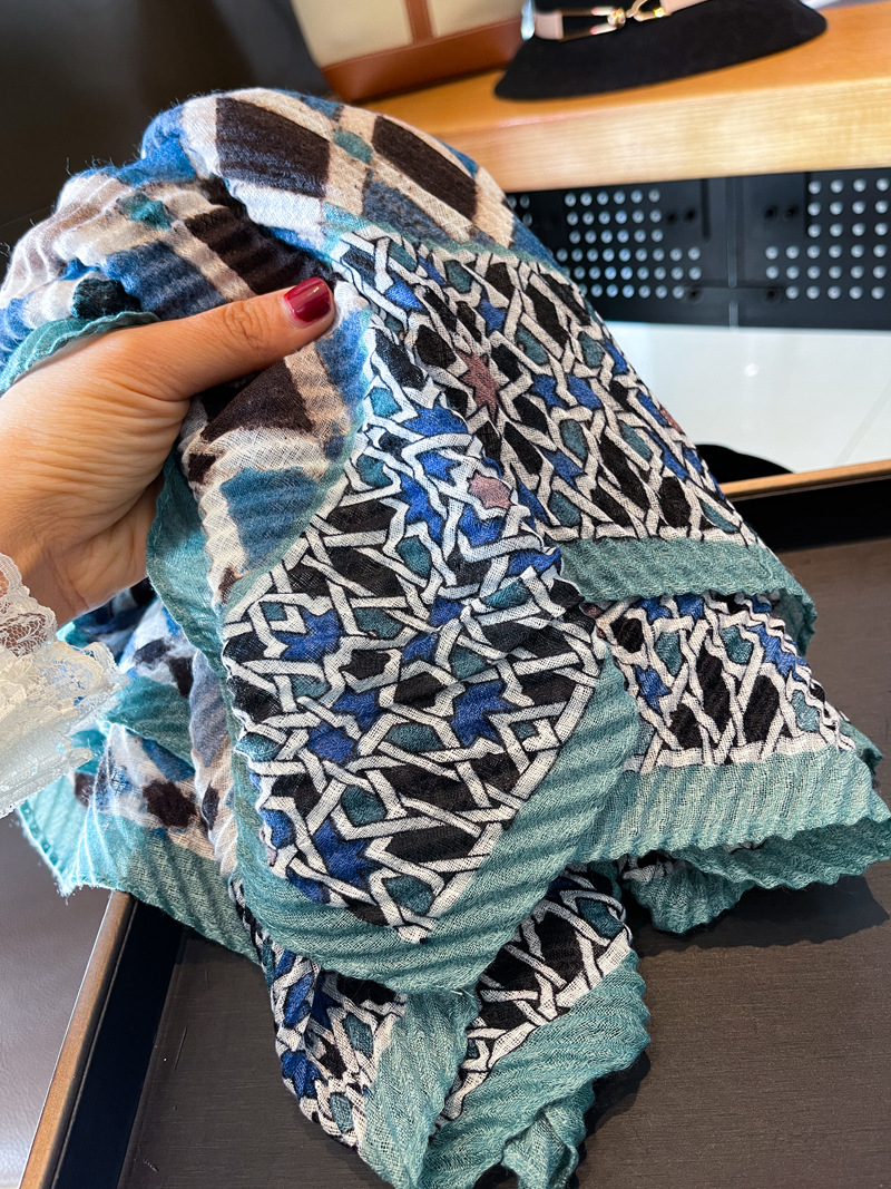 丝巾女春夏季韩版百搭方块弹力棉防晒披肩纱巾沙滩巾棉麻围巾防晒