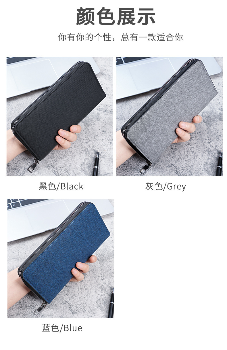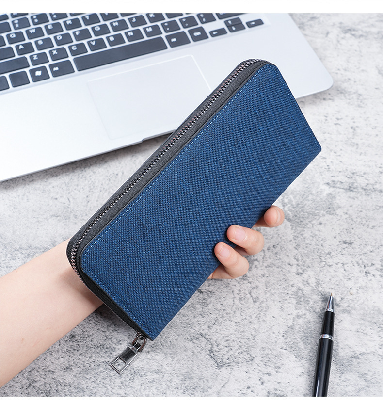 새로운 남자의 긴 지퍼 지갑 대용량 멀티 카드 비즈니스 캔버스 핸드 지갑